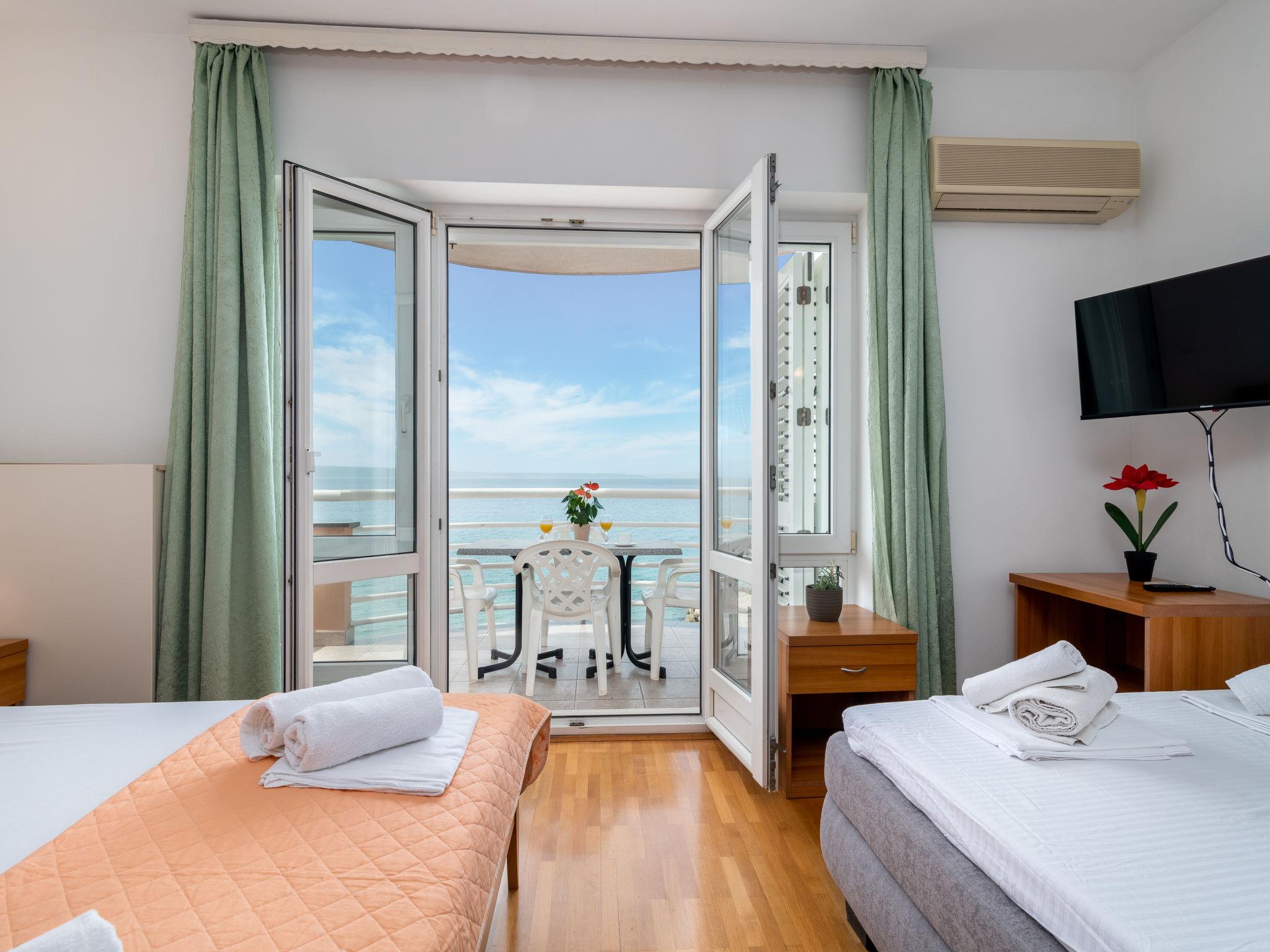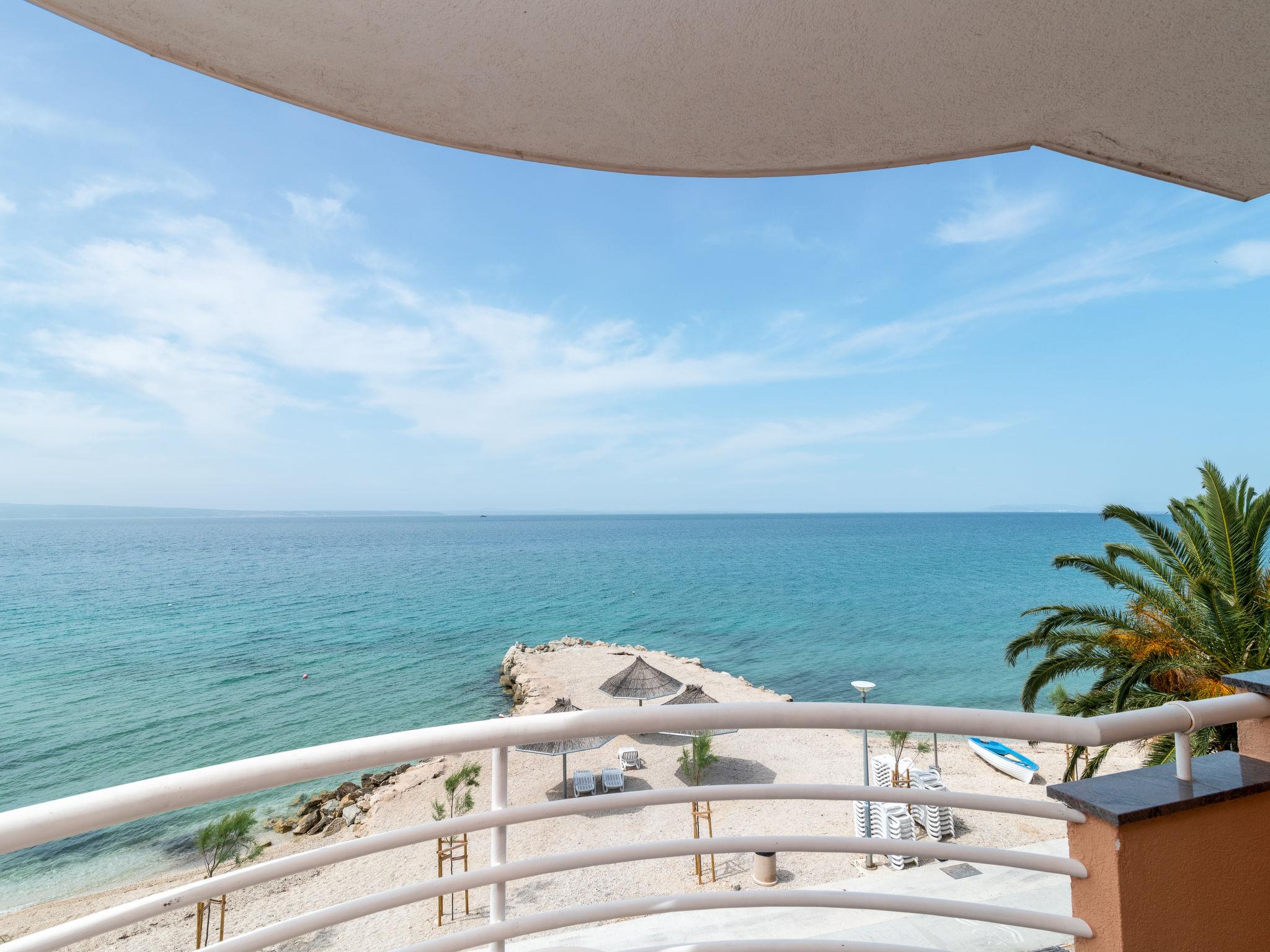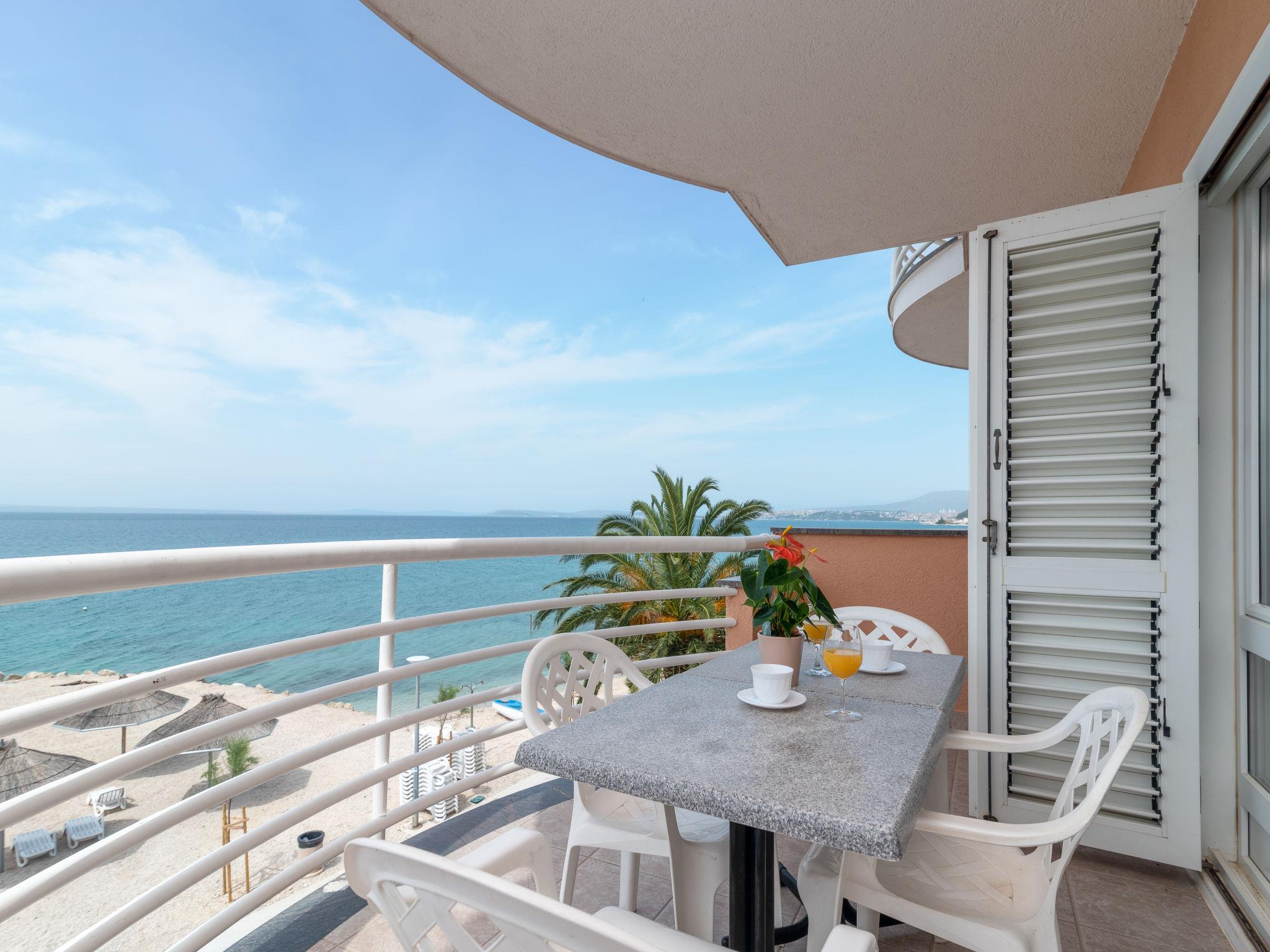 Apartment house. 500 m from the centre of Podstrana, 10 km from the centre of Split, in a sunny position, traffic calmed area, 5 m from the sea, 5 m from the beach, direct access to the beach. For shared use: property 300 m2. In the house: internet access, washing machine (for shared use). Parking at 400 m. Shop 100 m, restaurant 5 m, bus stop 240 m, pebble beach 5 m. Marina 3 km, tennis 3 km, riding stable 4 km. Please note: Loading and unloading of baggage is possible at the holiday house.