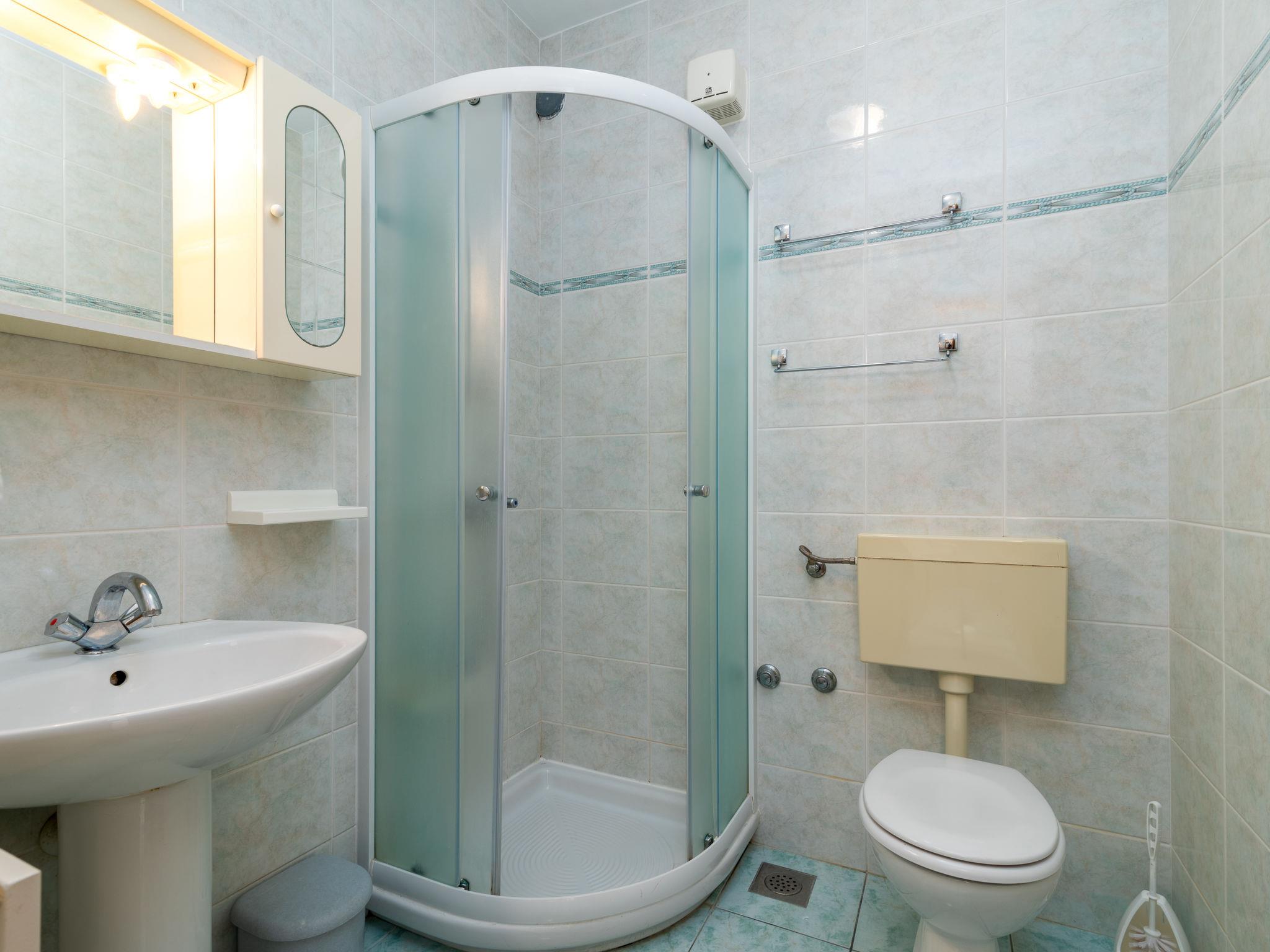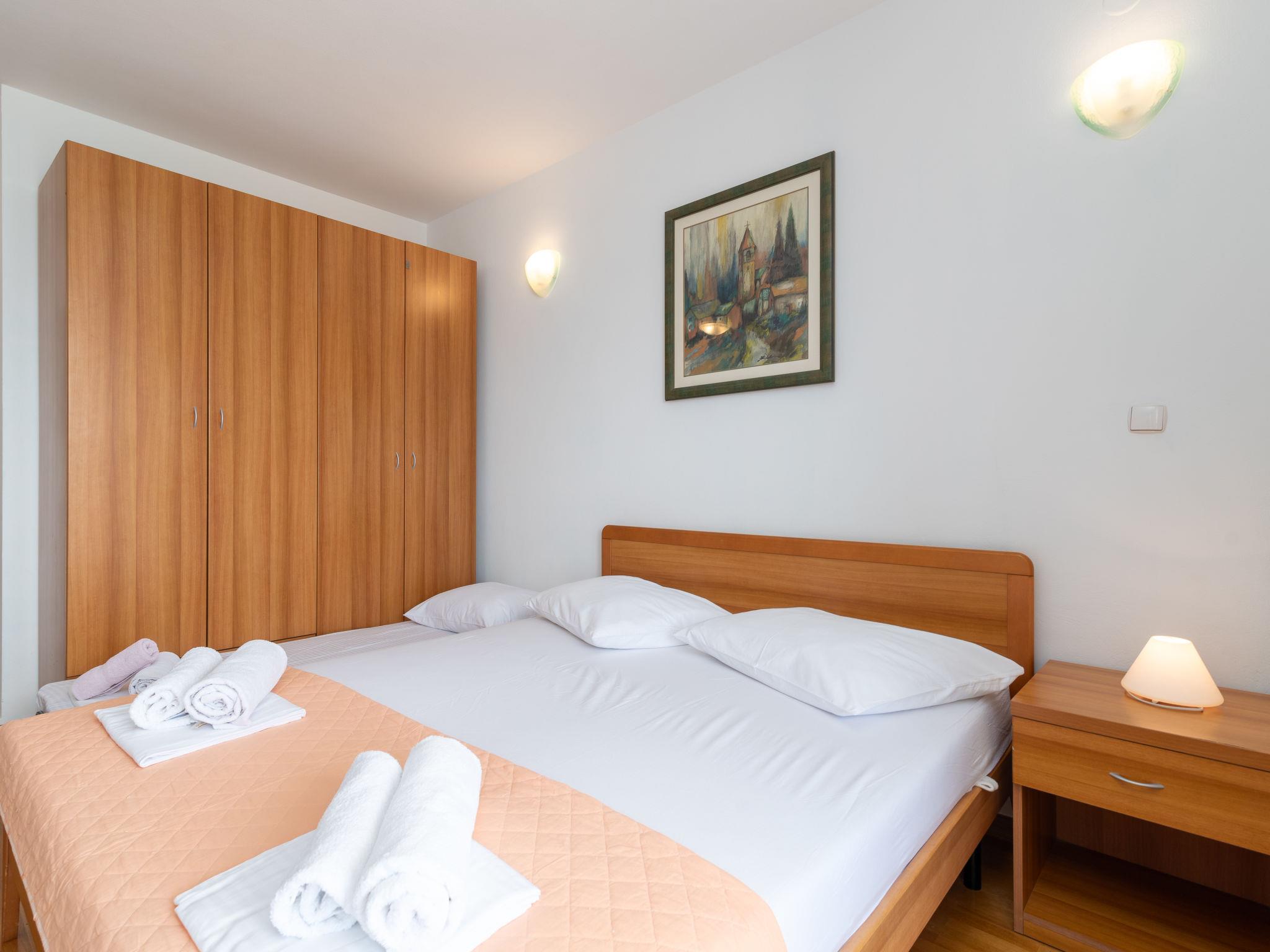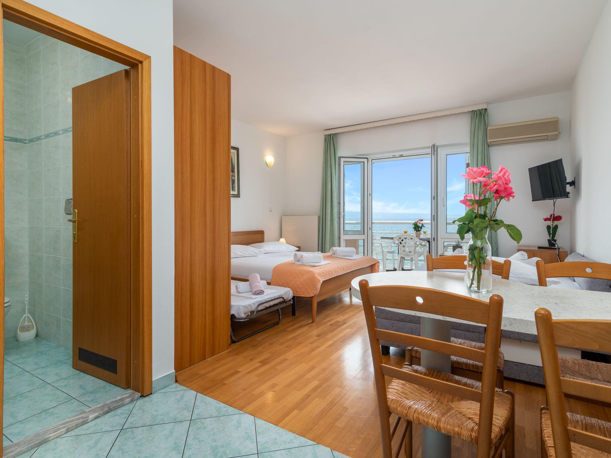 "Jerkan 17", 1-room studio 25 m2 on 2nd floor, south facing position. Living/sleeping room with 1 double sofabed (160 cm, length 200 cm), 1 french bed (180 cm, length 200 cm), satellite TV (flat screen), air conditioning. Exit to the balcony. Open kitchen (2 hot plates, kettle, freezer). Shower/WC. Balcony 7 m2. Balcony furniture. Marvellous panoramic view of the sea. Facilities: hair dryer. Internet (WiFi, free).