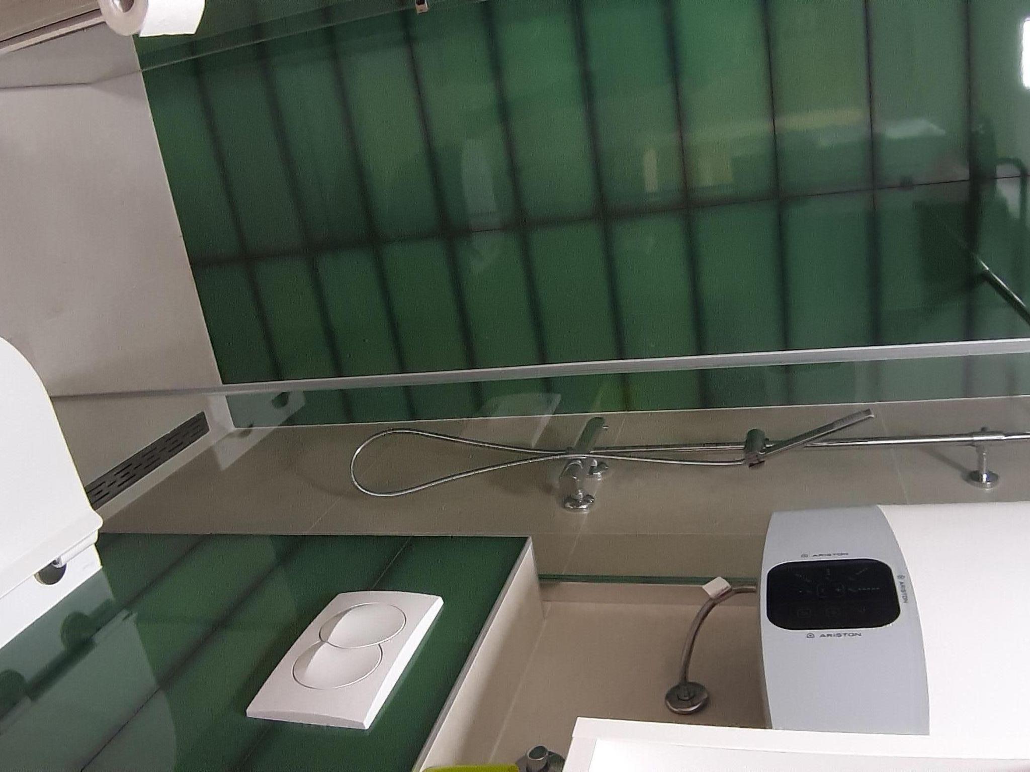 Inside, the studio boasts a practical setup to cater to your daily needs. The designated cooking area comes complete with hotplates, an oven, and essential appliances such as a coffee machine and an electric kettle, making meal preparation a breeze. Adjacent to the kitchen, a dining area featuring a table with two chairs provides a cozy spot for enjoying meals or planning the day ahead. Entertainment needs are covered with a wall-mounted flatscreen TV, perfect for lazy evenings in.