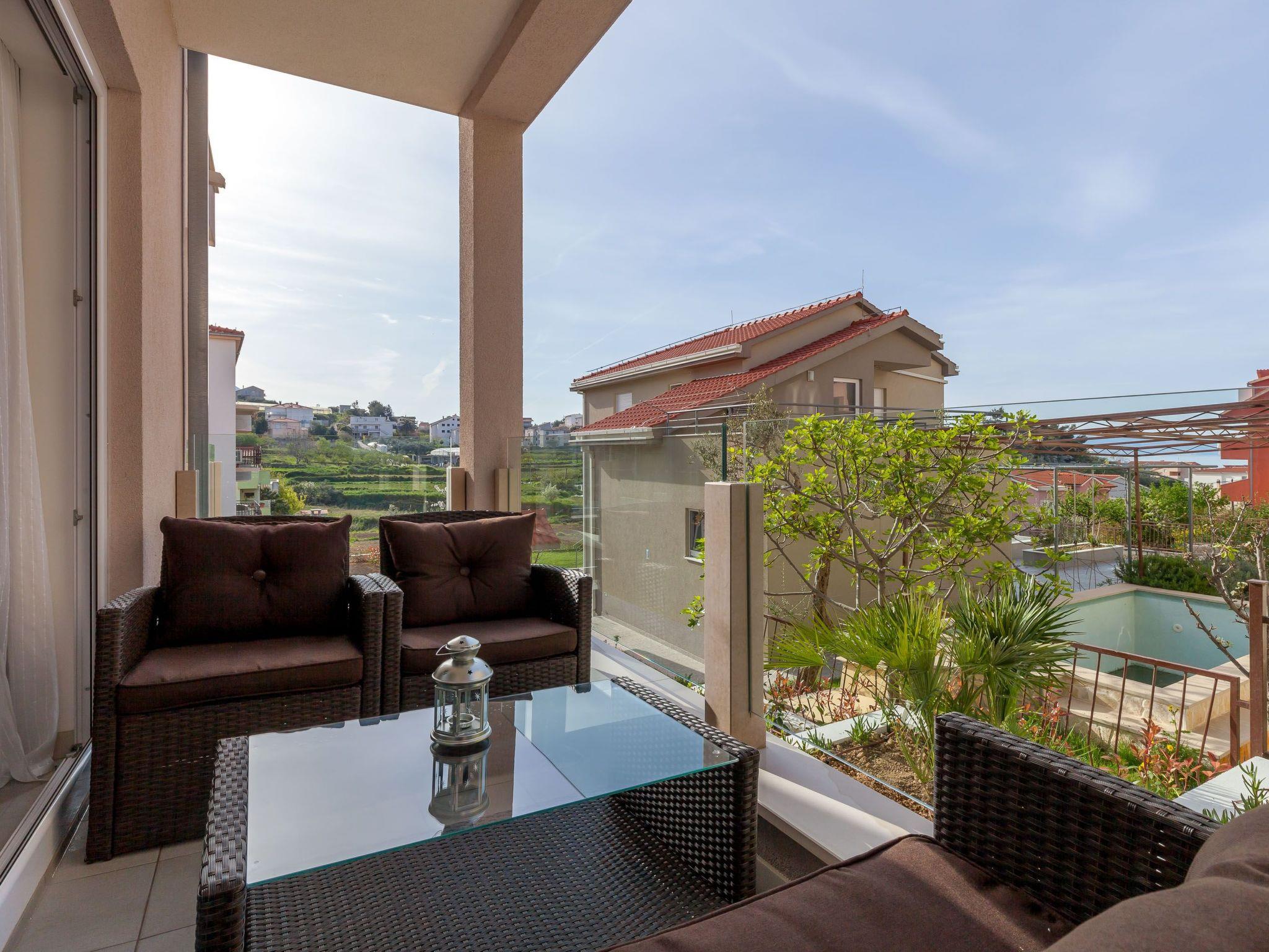 The apartment has a private balcony with a table and seats for 6 persons. There you can enjoy in beautiful view, you can watch mountain next to apartment as terrace has open view through safety glass while having meal or drink.