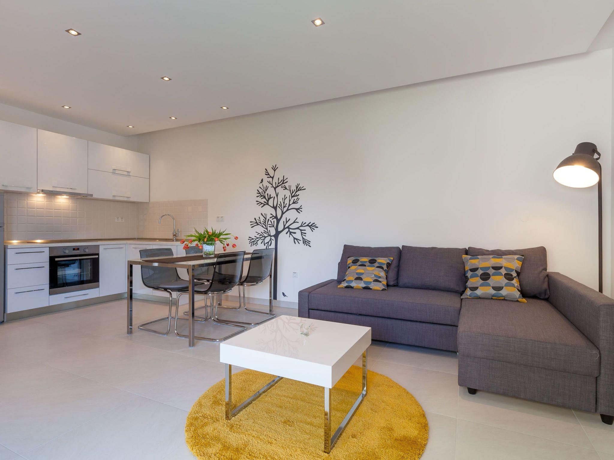 The apartment consists of one big double bedroom, a fully equipped kitchen, living room with sofa bed, bathroom and a terrace.