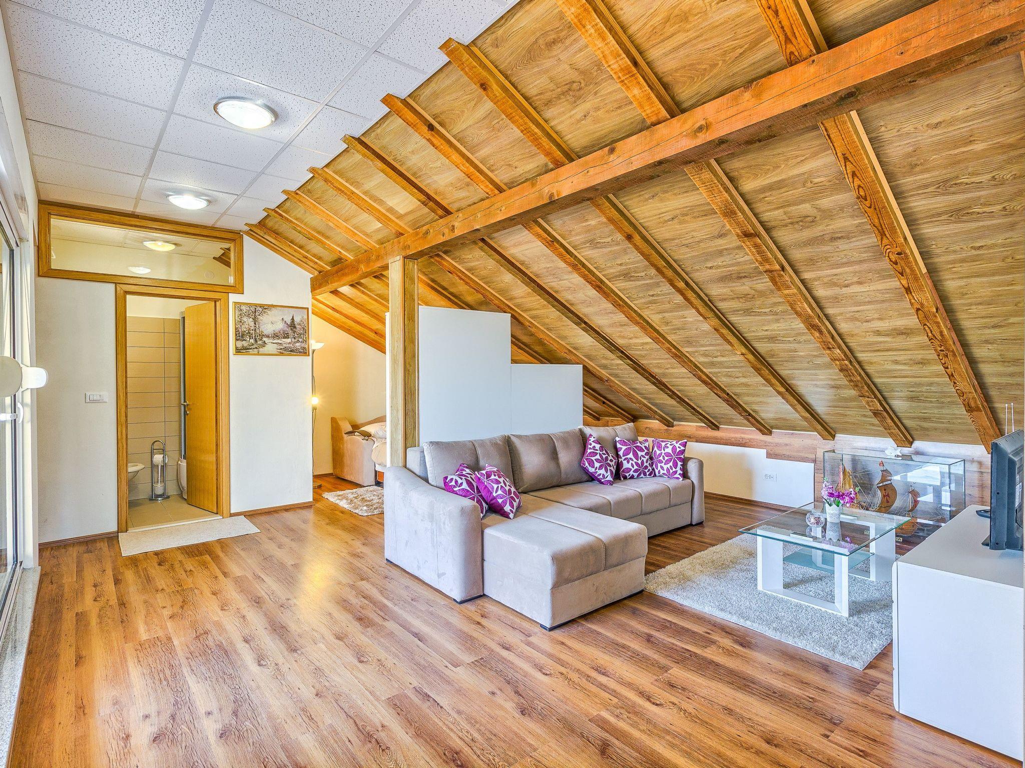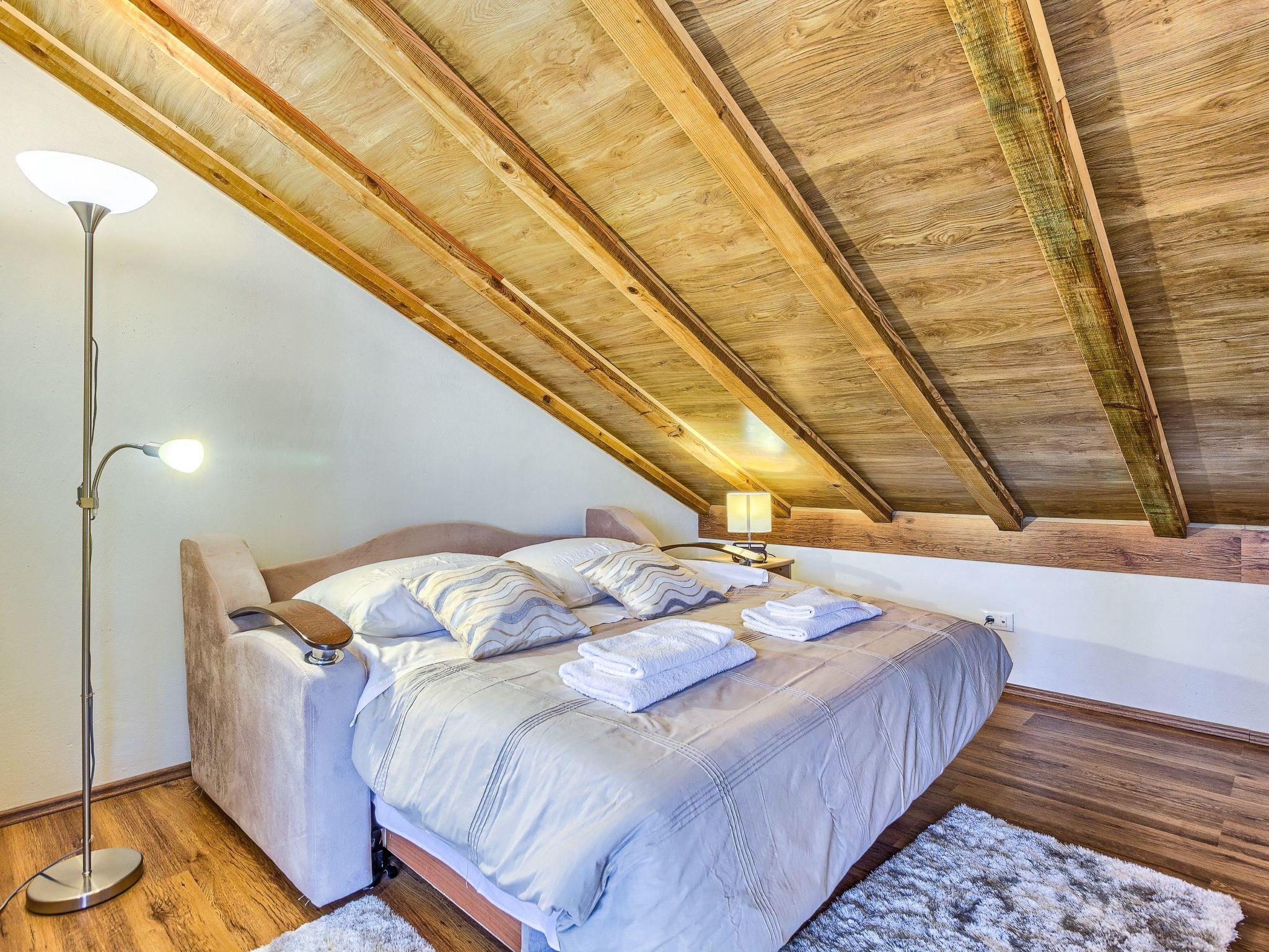 Top floor has 80m² and 2 bedrooms of which first has a double bed measuring 160 x 200cm, and second has a single bed measuring 90 x 200cm. Also, there is one bathroom and additional toilet on this floor.