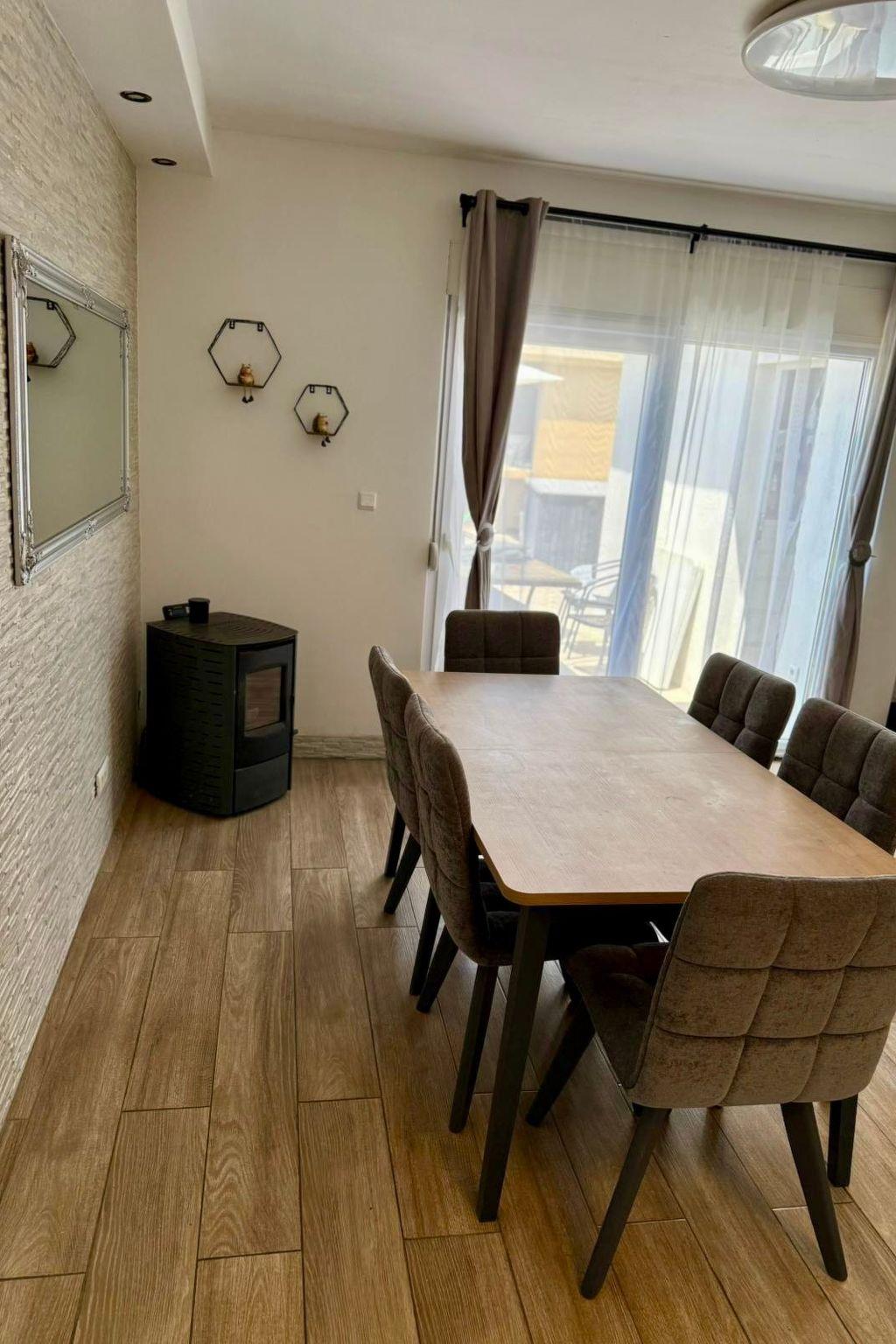 The holiday house is semi-detached building, 90 m2 living space, with seperate entrance, complete privacy, contains big and beautiful fully equipped kitchen and living room, washing mashine and dishwasher, ideal for long term stays, three bedrooms with double beds, comfortably fits for six people, there is a sofa bed in the living room for two people, one bathroom and one half bath.