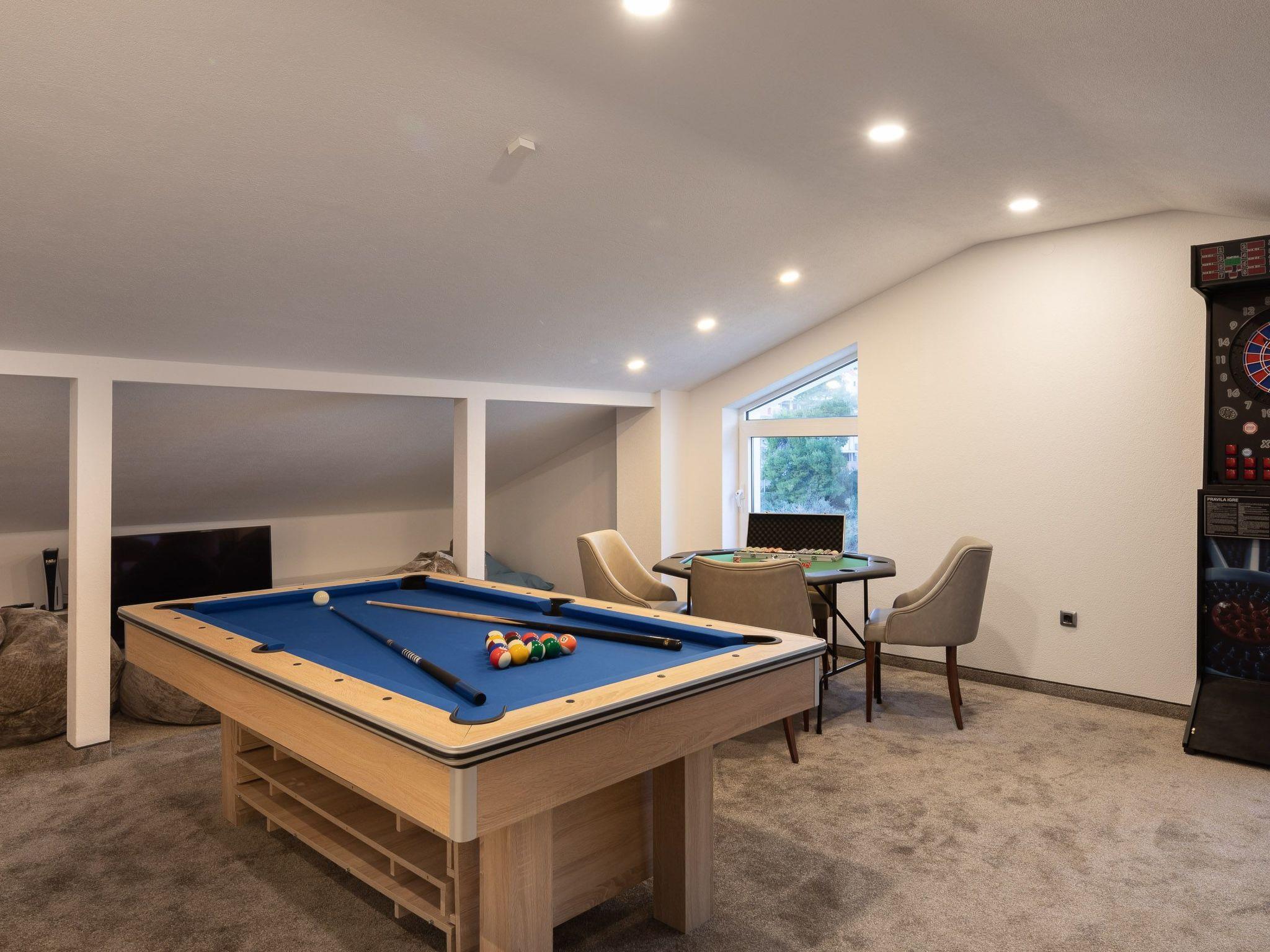 The Attic of the villa is specially adjusted for one spacious cinema room and playroom with pool table and darts.