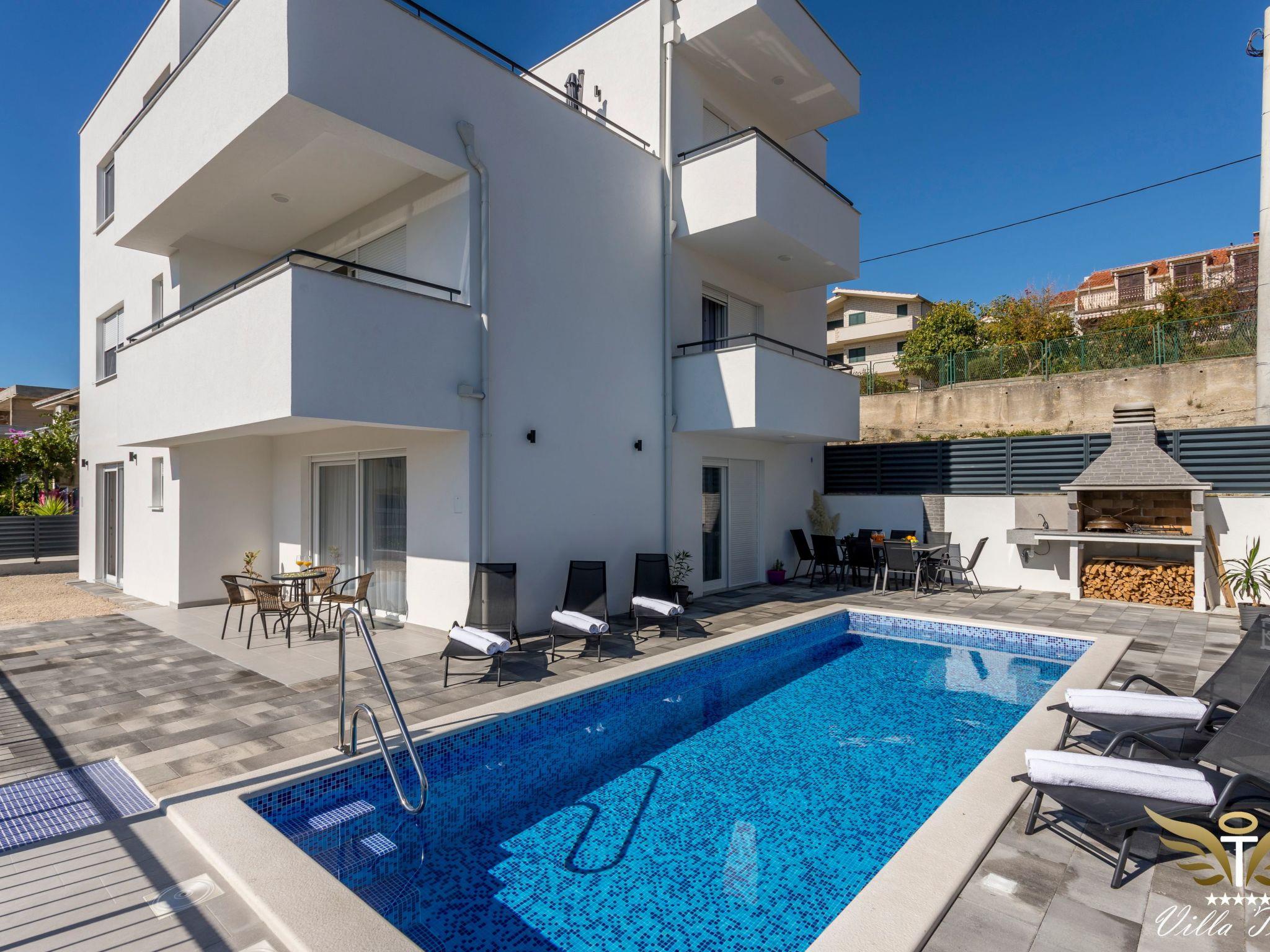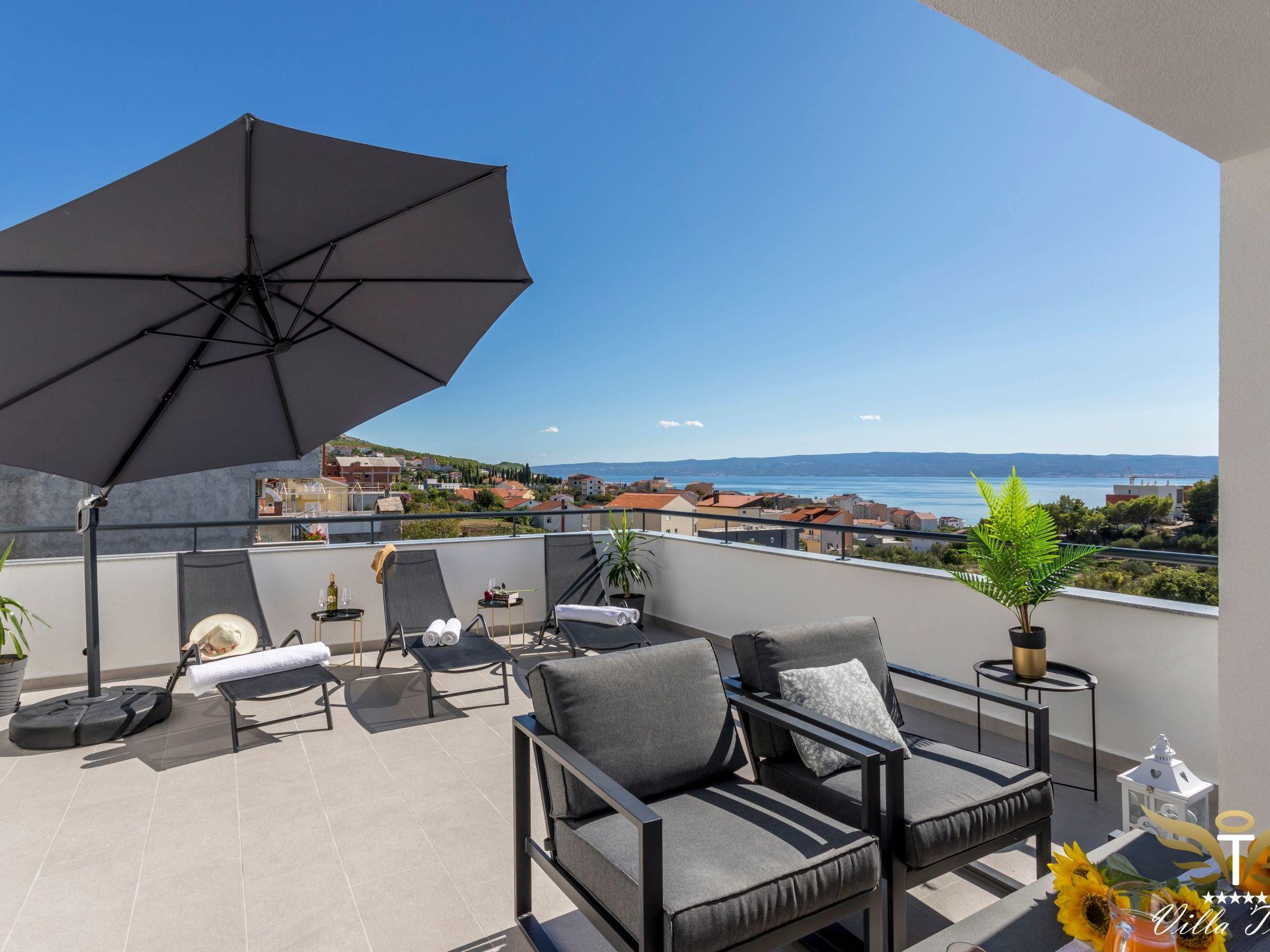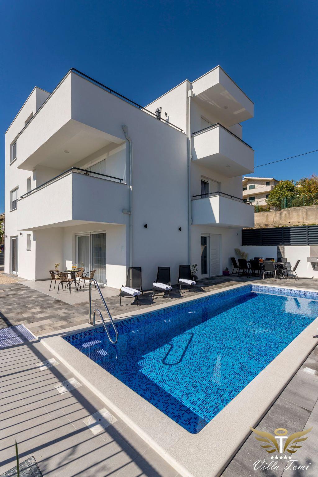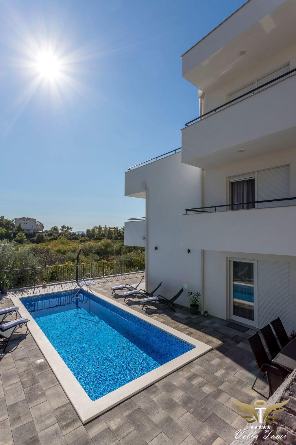 The location in which this charming villa is situated guarantees a peaceful and relaxing holiday. Villa Tomi is only 9 km away from the 1700 year old town of Split, has the view of the beach, the sea, the island and panoramic views of the mountains. It is primarily intended for families and all those people who have come to rest and relax.