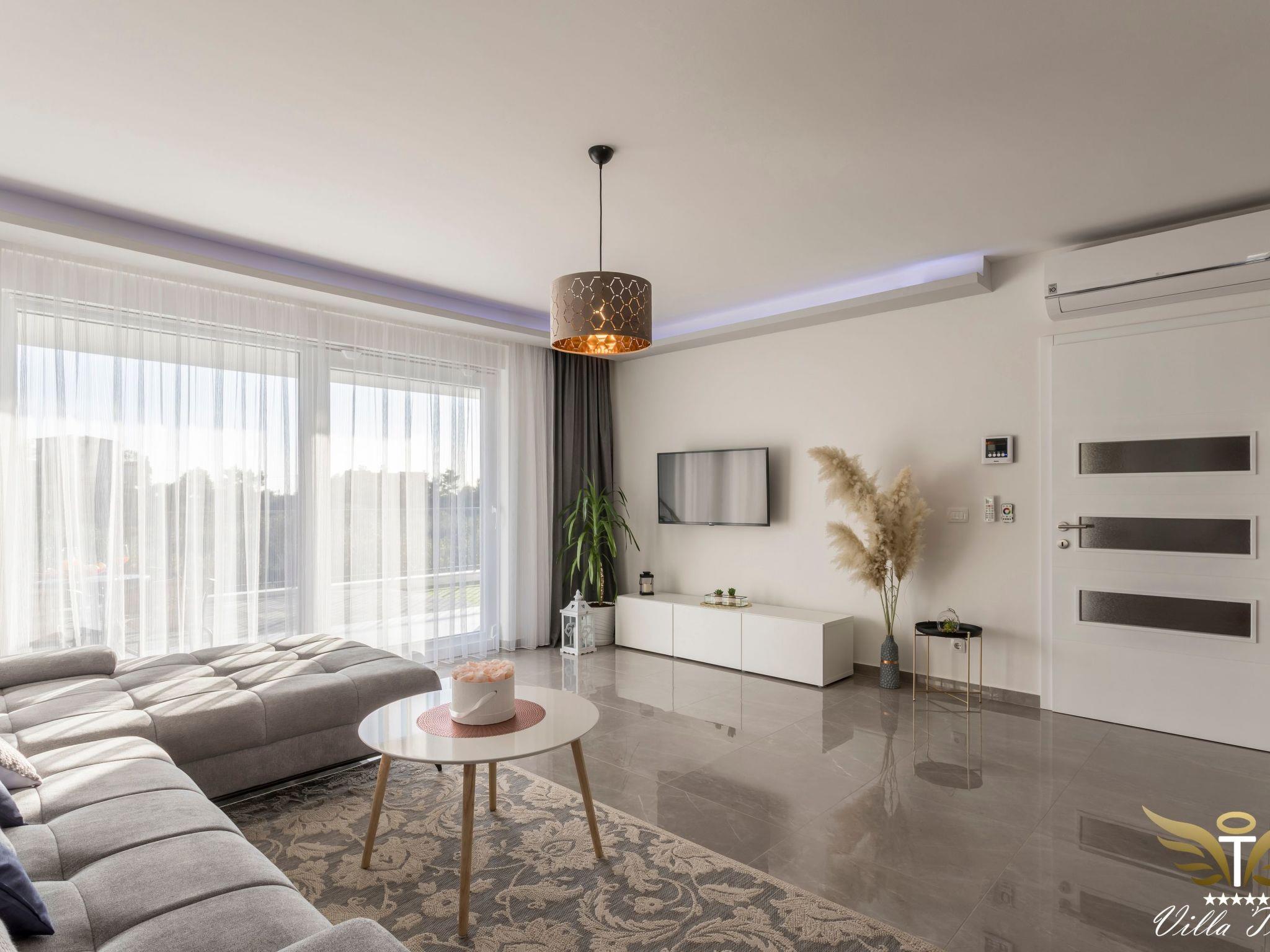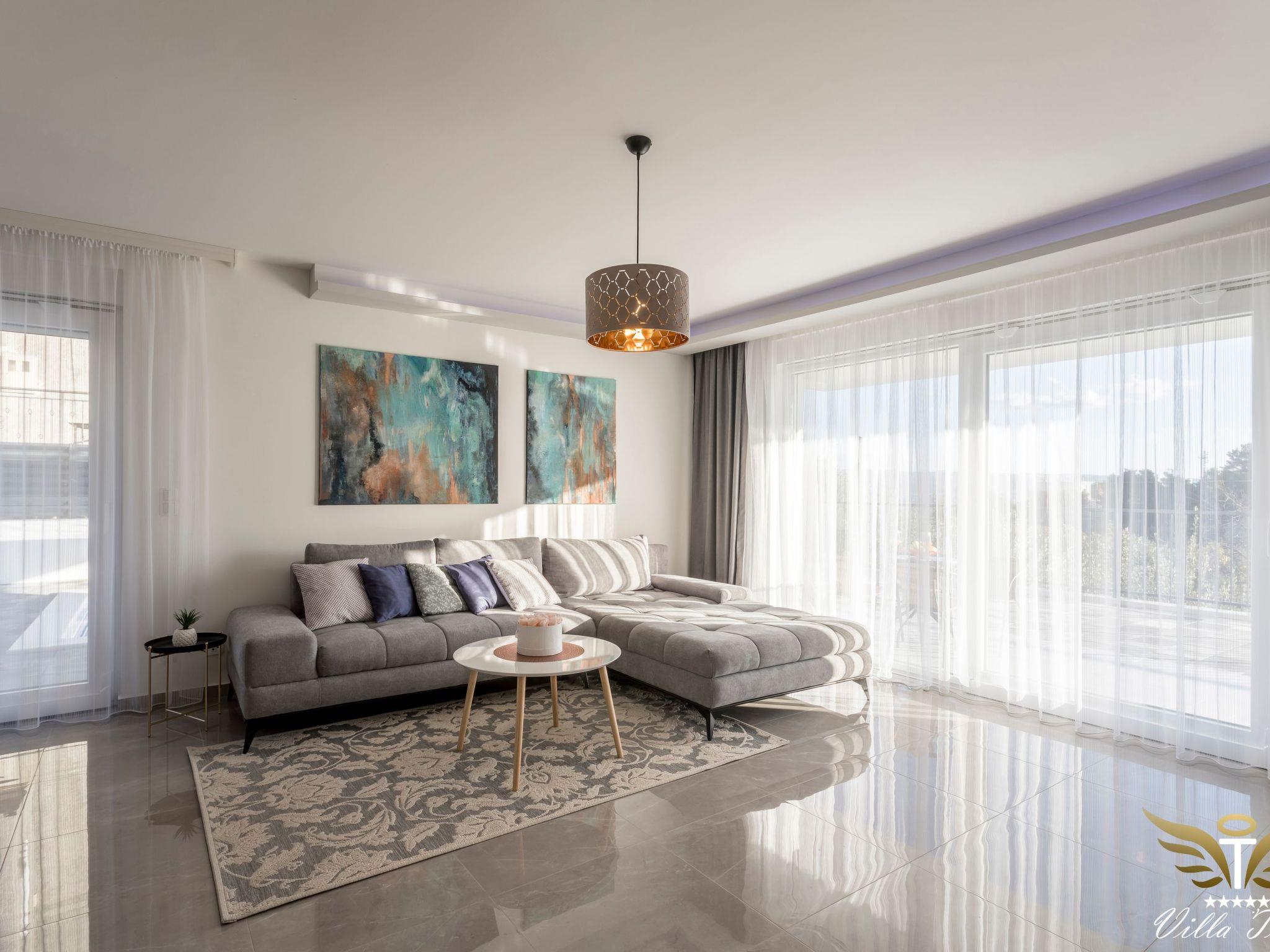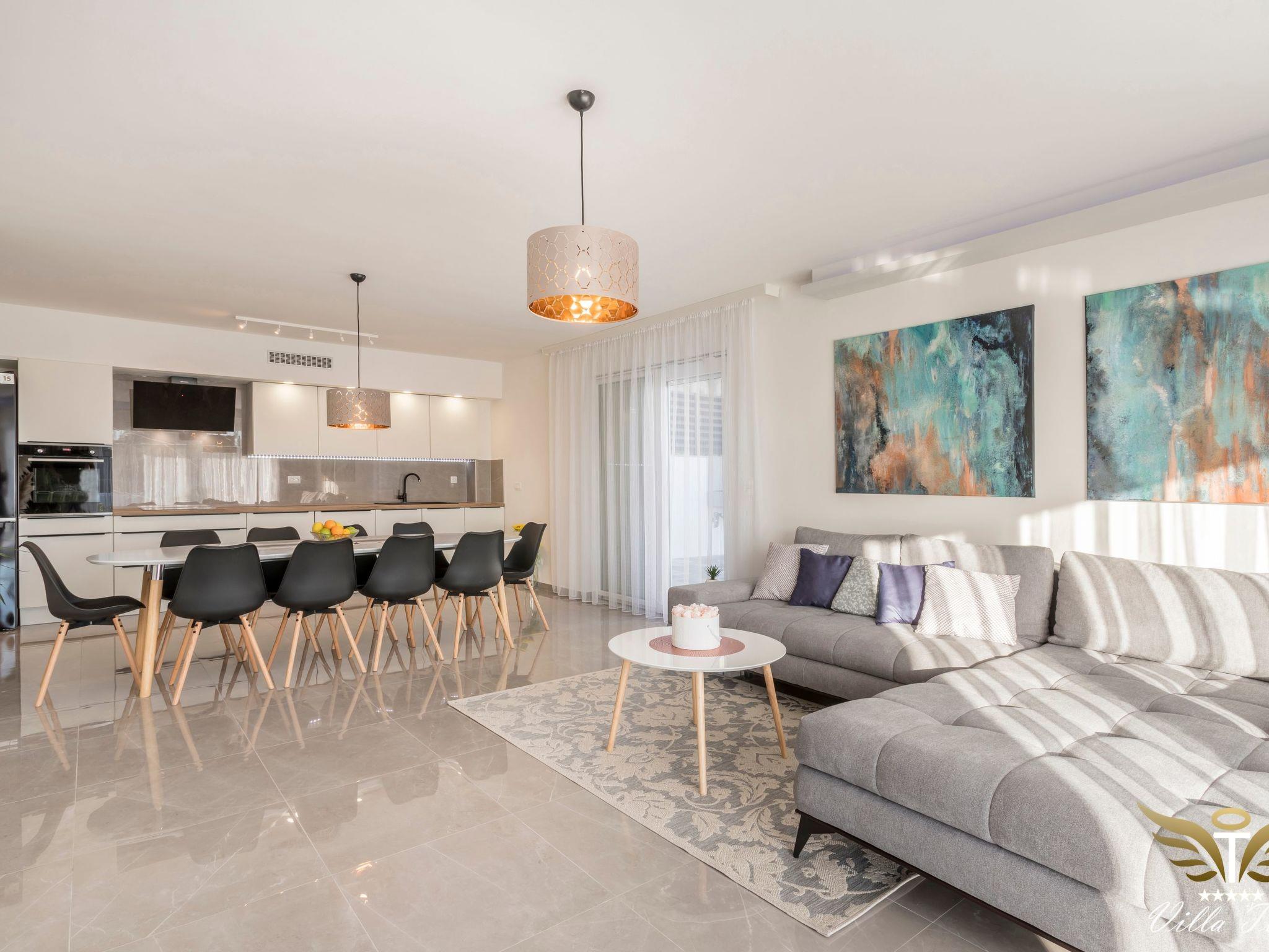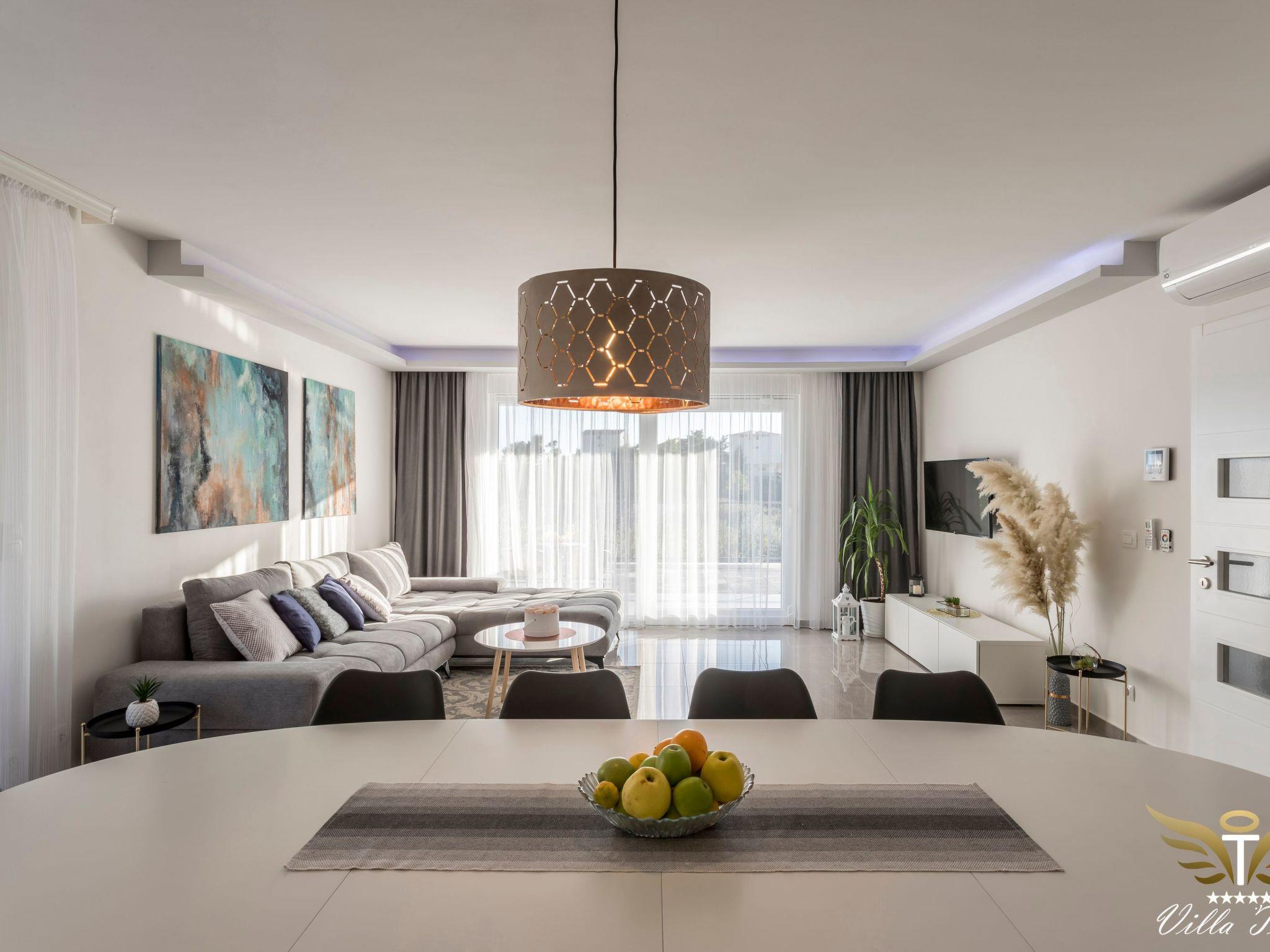The location in which this charming villa is situated guarantees a peaceful and relaxing holiday. Villa Tomi is only 9 km away from the 1700 year old town of Split, has the view of the beach, the sea, the island and panoramic views of the mountains. It is primarily intended for families and all those people who have come to rest and relax.
