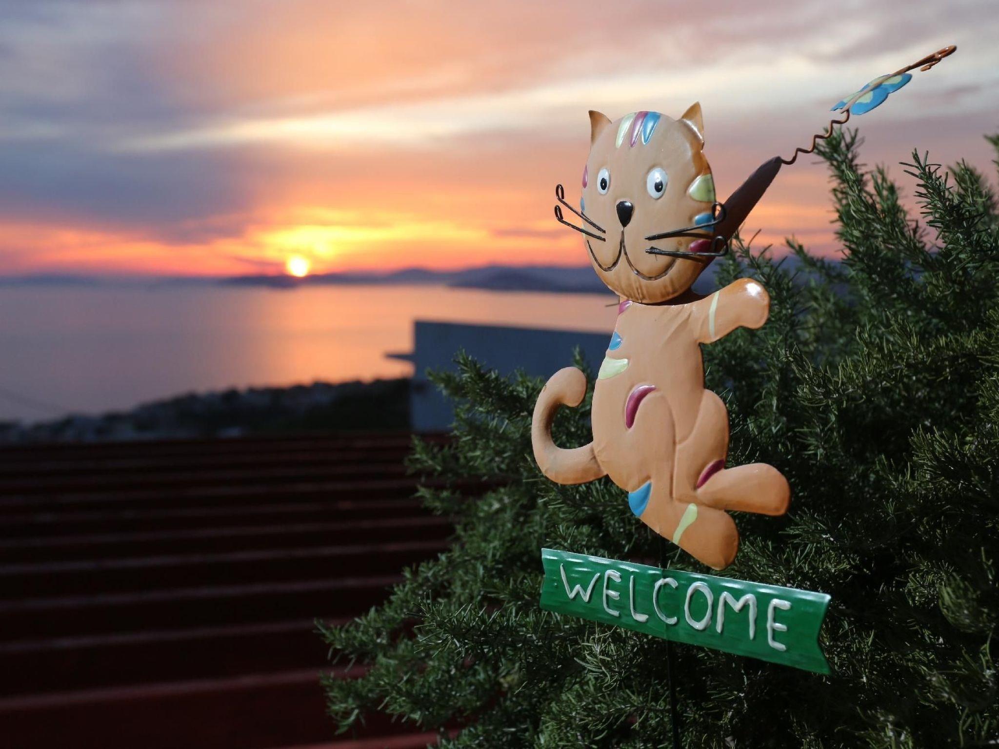 You can enjoy a wonderful view over the area and the sea from the terrace with garden furniture. Behind the house there is a garden with plants and flowers, as well as a barbecue for house guests. Parking spaces are also available.