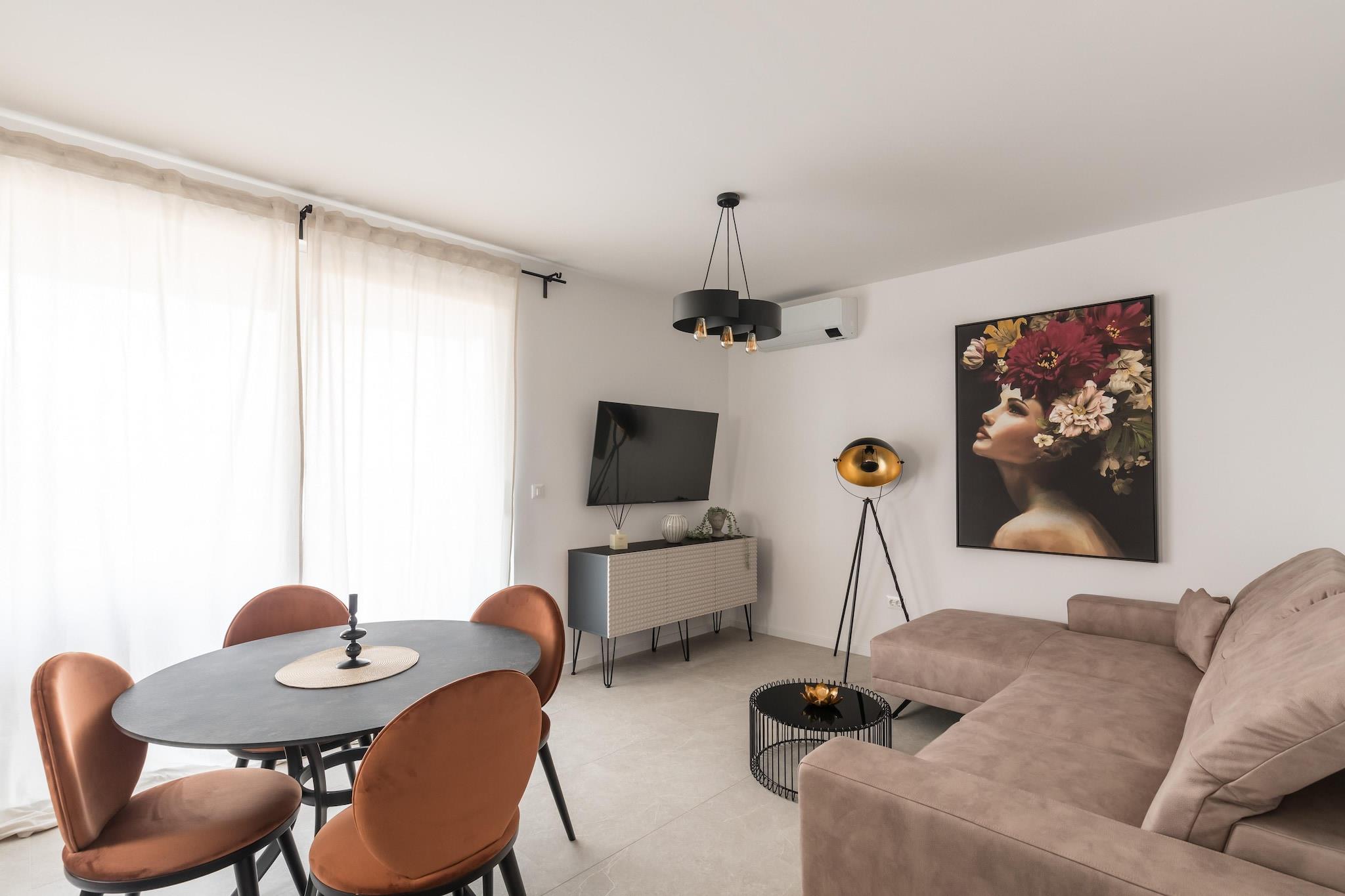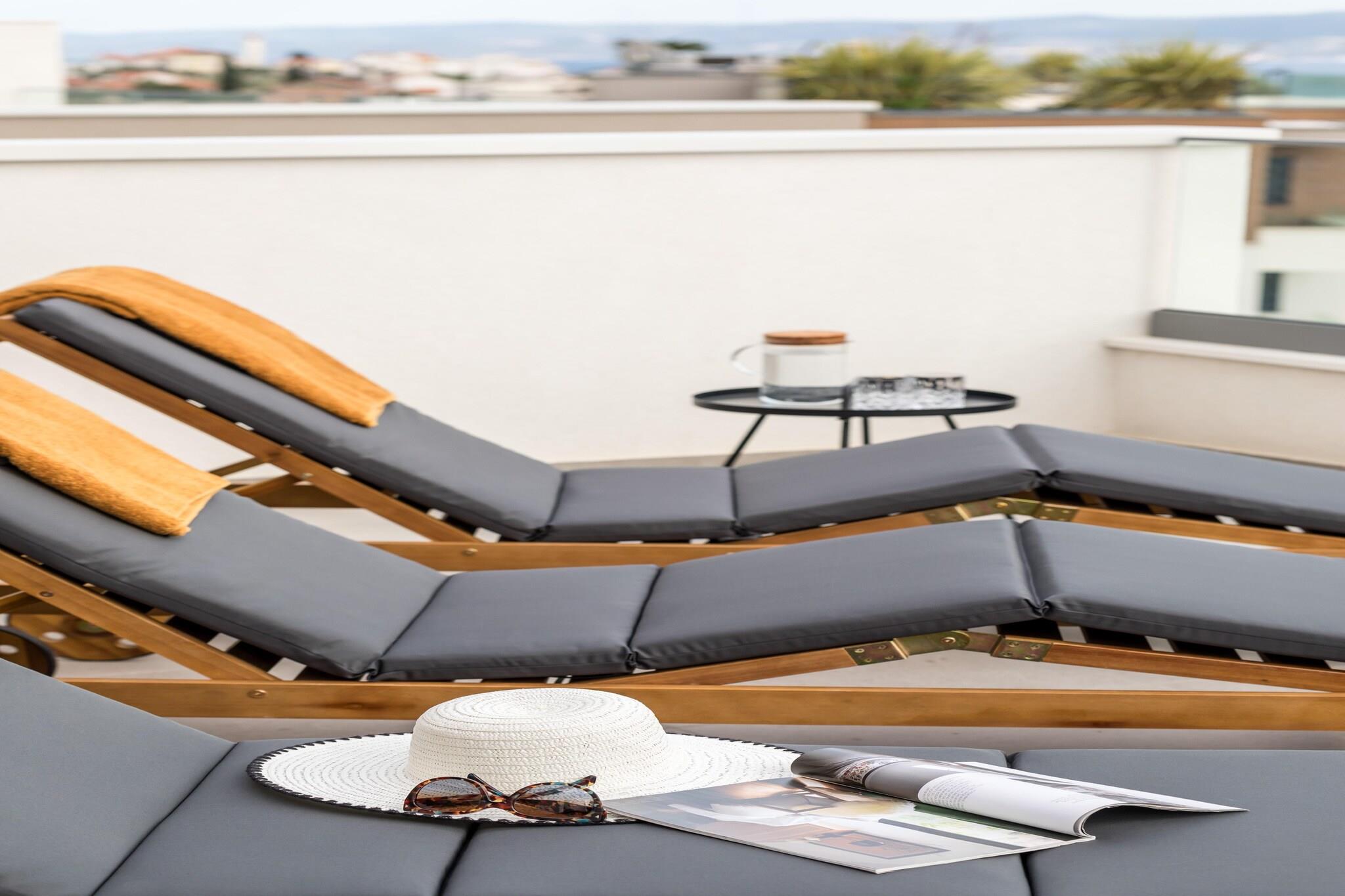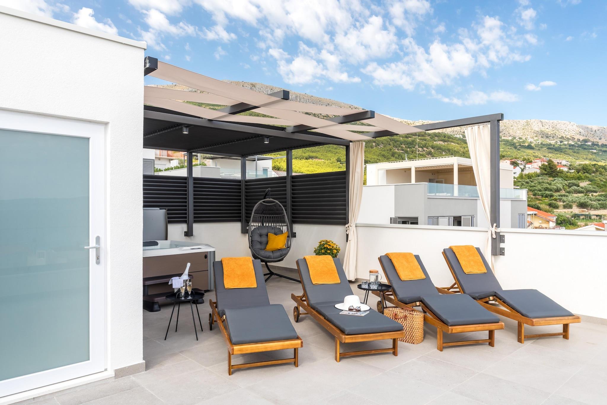 På 1. etage: (Stue(Fjernsyn(fladskærm), sofahjørne), Køkken(spisebord, elkedel, komfur, kaffemaskine, ovn, mikrobølgeovn, opvaskemaskine , køle-fryseskab), soveværelse(dobbeltseng), soveværelse(dobbeltseng), badeværelse(bruser, håndvask, toilet), Bubble bath(privat), terrasse(privat, indhegnet)) vaskemaskine, klimaanlæg, havemøbler, solstole, parkering, loungemøbler