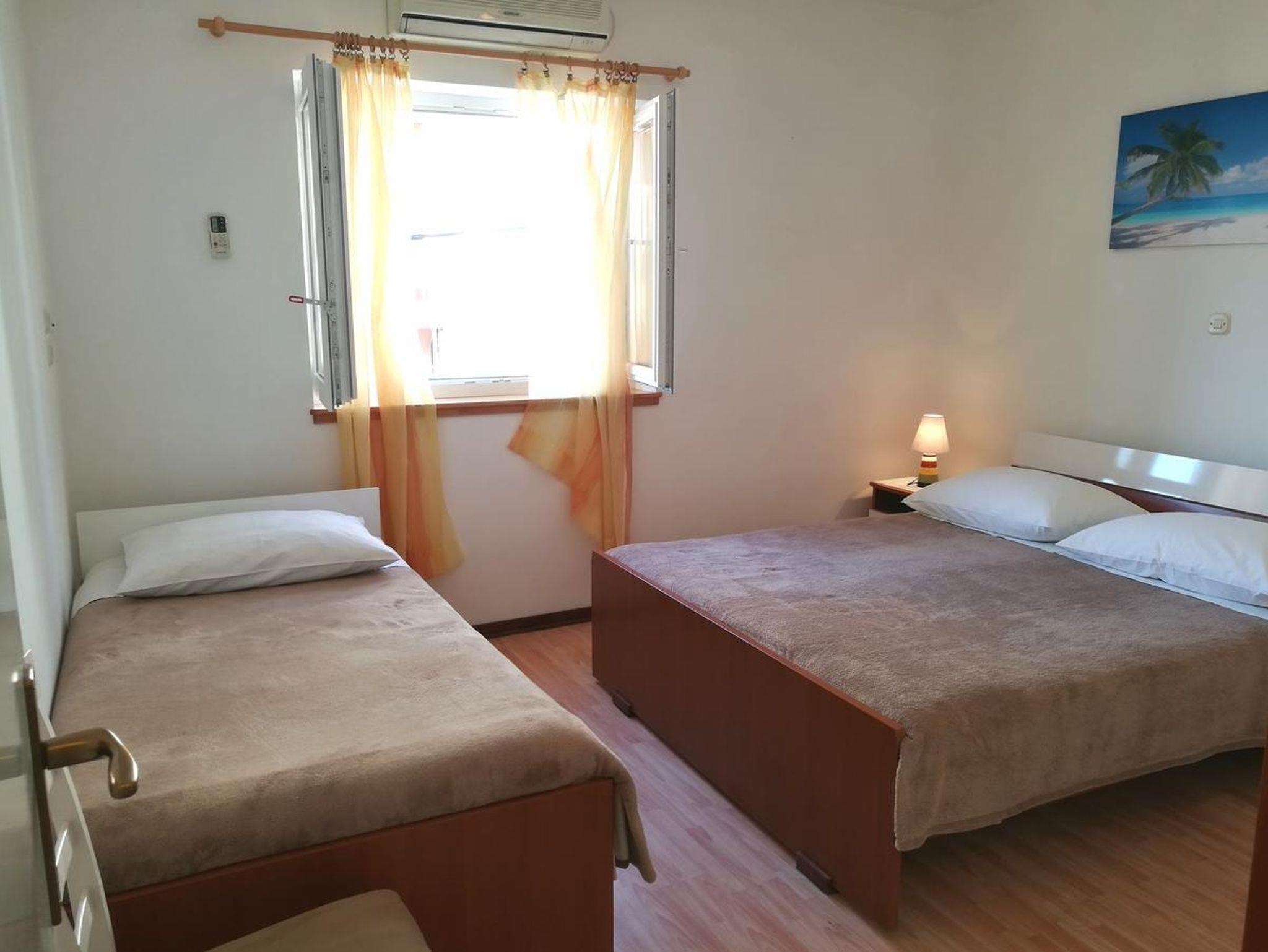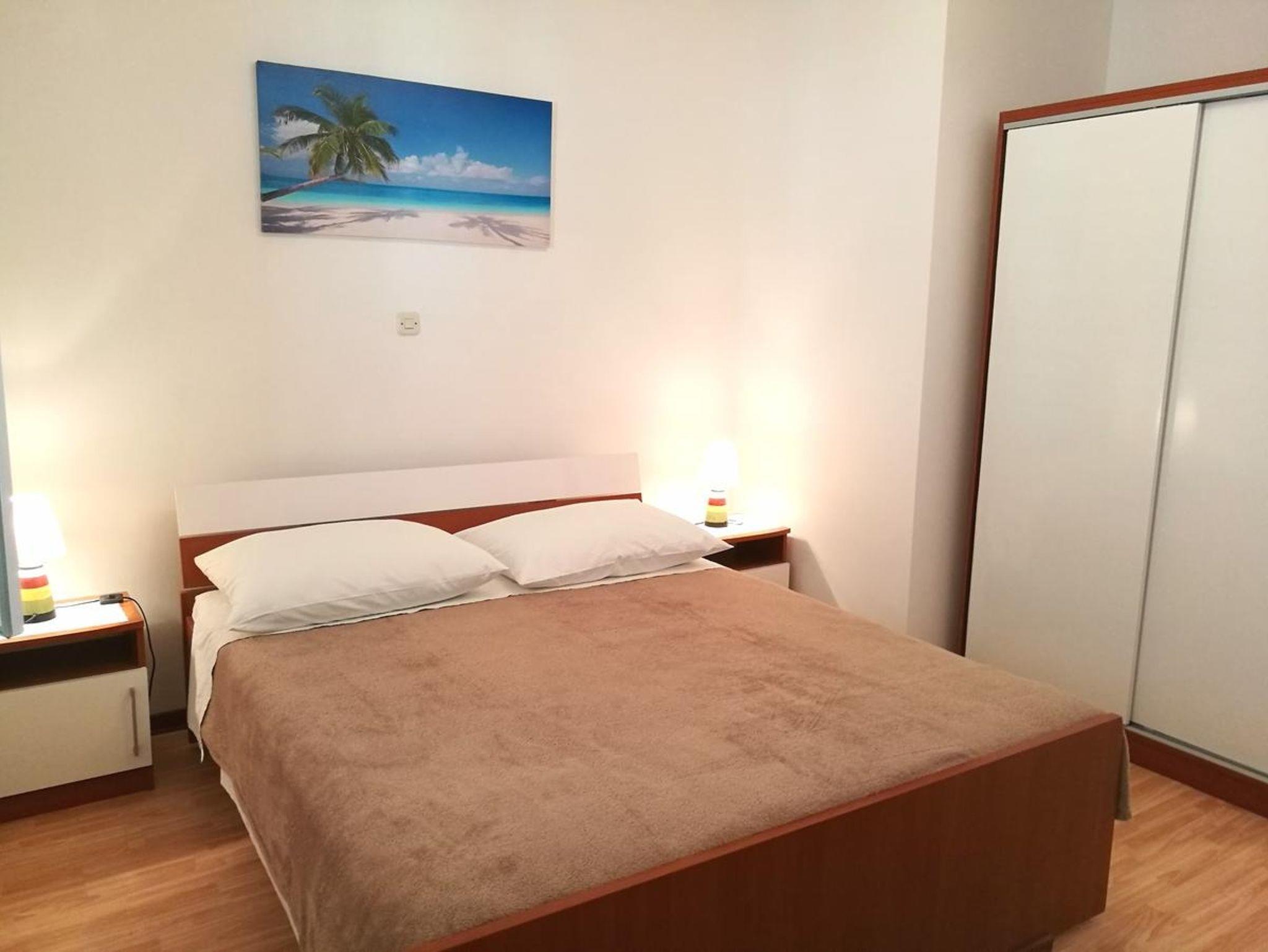 Ferienwohnung bietet Platz für 3 Gäste. Die Betten sind in Schlafzimmern, die es 1 gibt, innerhalb einer Gesamtfläche von 36m2, angeordnet. Die Gäste haben eine eigene Terrasse zur Verfügung, auf der sie in warmen Sommernächten genießen können. Das Apartment bietet Meerblick. Es ist erlaubt, Speisen auf dem Gemeinschafts-Grill vorzubereiten. IM PREIS INBEGRIFFEN: Kurtaxe, Endreinigung, Klimatisierung, Parkplatz, Internet, Kinderbett, Bügelbrett, Föhn. VERBINDLICHE ZUSÄTZLICHE KOSTEN: Aufzahlung für Kurzaufenthalte (prozentualer Zuschlag pro Nächtigungsanzahl: 30% - 1, 20% - 2, 10% - 3). UNVERBINDLICHE ZUSÄTZLICHE KOSTEN: Frühstück (5,00 €, 50% Nachlass für Kinder zwischen 4 und 12 Jahren, Kinder bis 4 Jahre sind frei.). Die Verfügbarkeit zusätzlicher Dienstleistungen in Ihrem reservierten Termin und die Preise derselben (falls nicht aufgeführt) müssen im Voraus überprüft werden. Zusätzliche Dienstleistungen die in der Zahlungsaufforderung nicht aufgeführt sind werden direkt beim Vermieter bezahlt, angenommen der Gast nutzt auch diese.