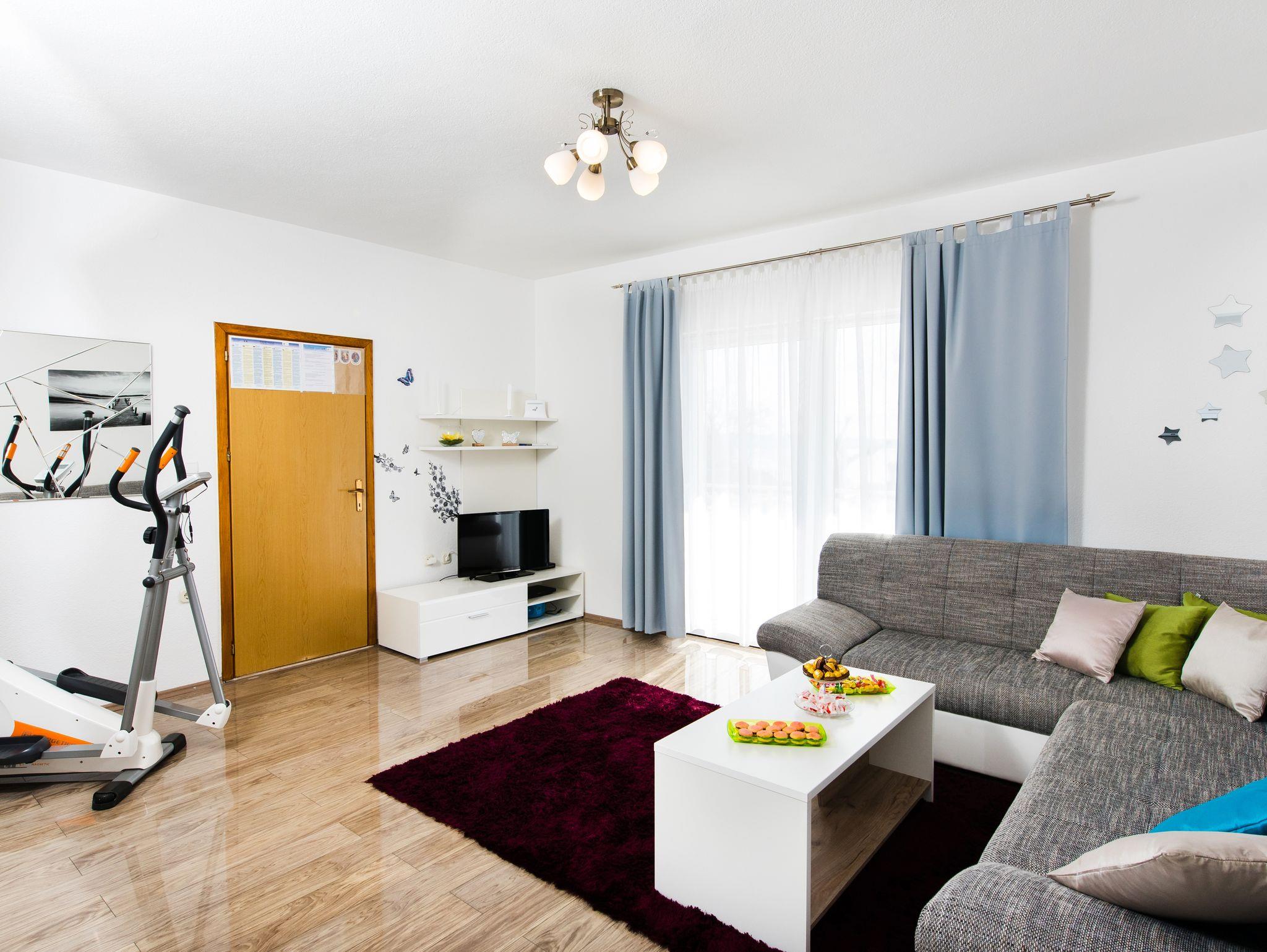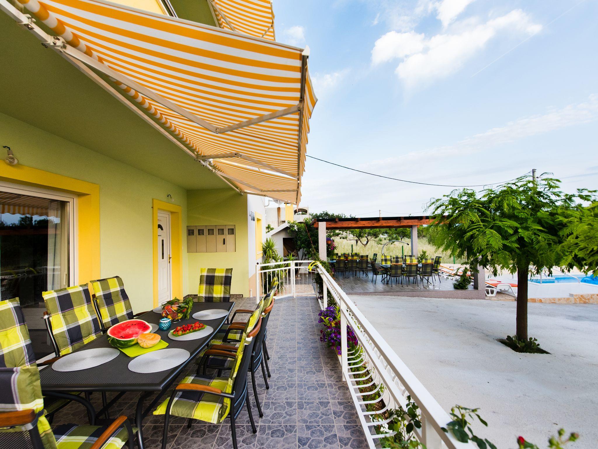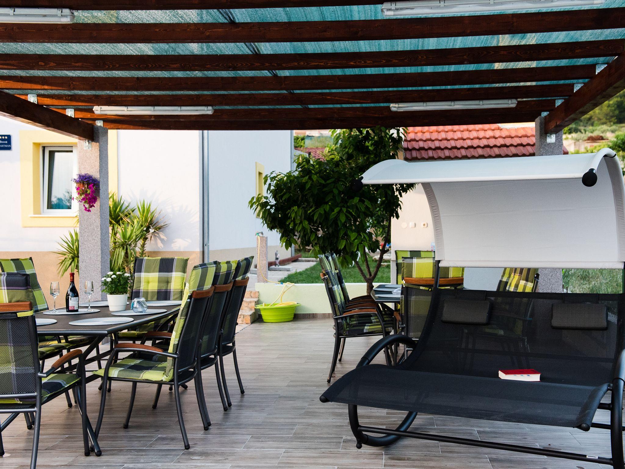Ferienwohnung bietet Platz für 8 Gäste. Die Betten sind in Schlafzimmern, die es 3 gibt, und in Wohnzimmer, innerhalb einer Gesamtfläche von 79m2, angeordnet. Die Gäste haben eine eigene Terrasse zur Verfügung, auf der sie in warmen Sommernächten genießen können. Das Apartment bietet Meerblick. Es ist erlaubt, Speisen auf dem Gemeinschafts-Grill vorzubereiten. Während ihres Aufenthalts können Gäste das gemeinsam zur Nutzung stehende Schwimmbad benutzen. In der Unterkunftseinheit besteht die Möglichkeit des Mitbringens von Haustieren, und die Dienstleistung ist im Preis der Unterkunft enthalten. IM PREIS INBEGRIFFEN: Kurtaxe, Endreinigung, Klimatisierung, Pool, Parkplatz, Internet, Haustiere, Bügeleisen, Bügelbrett, Föhn, tragbarer Grill, Sonnenschirm. VERBINDLICHE ZUSÄTZLICHE KOSTEN: Aufzahlung für Kurzaufenthalte (prozentualer Zuschlag pro Nächtigungsanzahl: 30% - 1, 20% - 2, 10% - 3). UNVERBINDLICHE ZUSÄTZLICHE KOSTEN: Fahrrad (10,00 € täglich (pro Stück)). Die Verfügbarkeit zusätzlicher Dienstleistungen in Ihrem reservierten Termin und die Preise derselben (falls nicht aufgeführt) müssen im Voraus überprüft werden. Zusätzliche Dienstleistungen die in der Zahlungsaufforderung nicht aufgeführt sind werden direkt beim Vermieter bezahlt, angenommen der Gast nutzt auch diese. Ermäßigung auf den Grundpreis: Gratistag 14=13 (bei einem Aufenthalt von 14 Tagen oder mehr erhalten Sie einen Gratistag für den Aufenthalt bis 31.12.26).