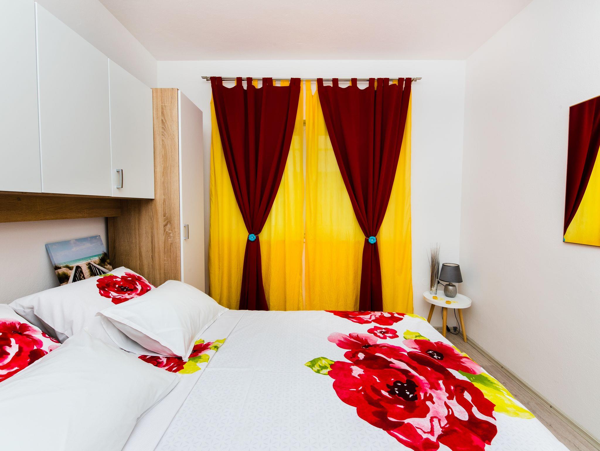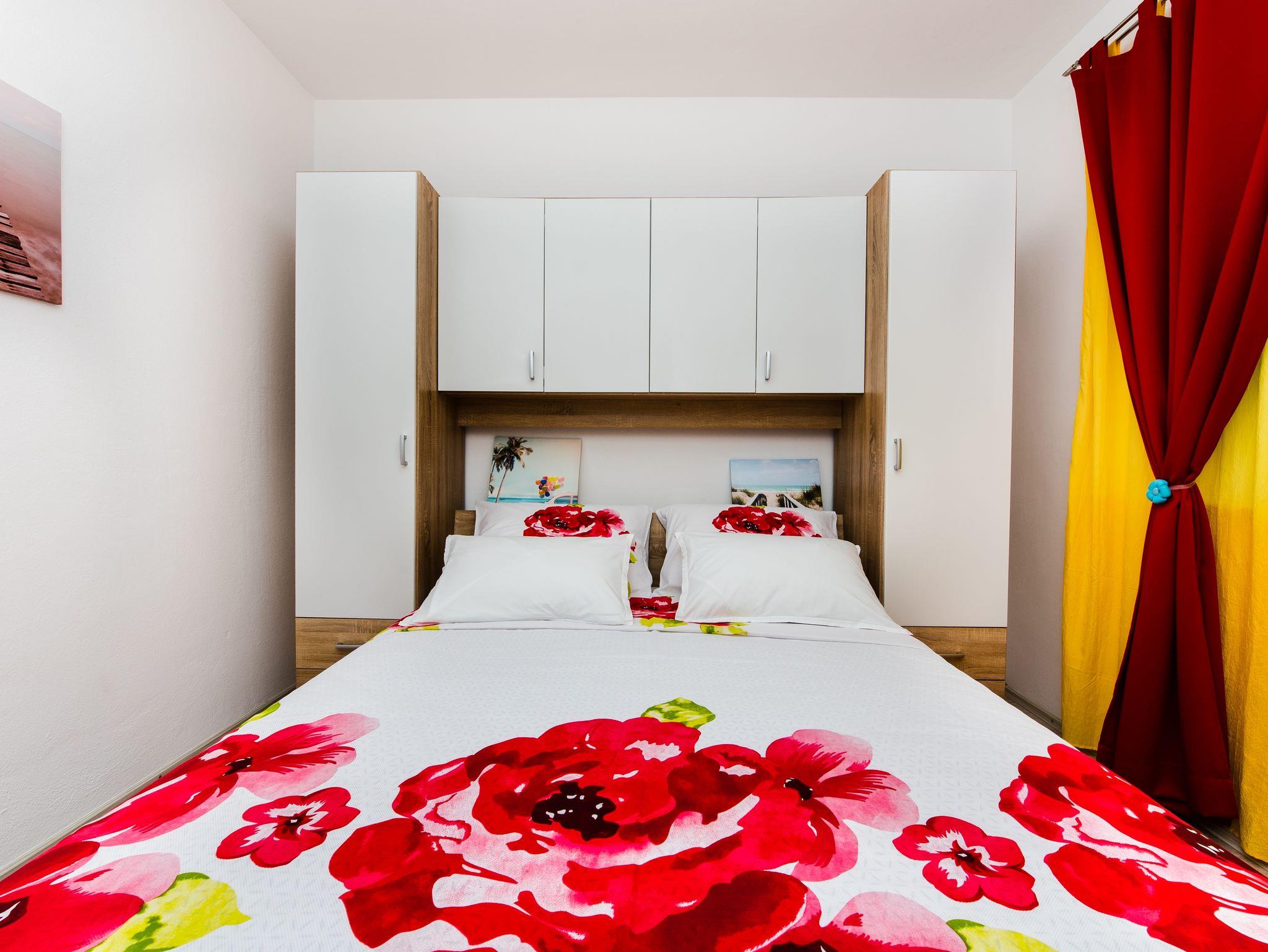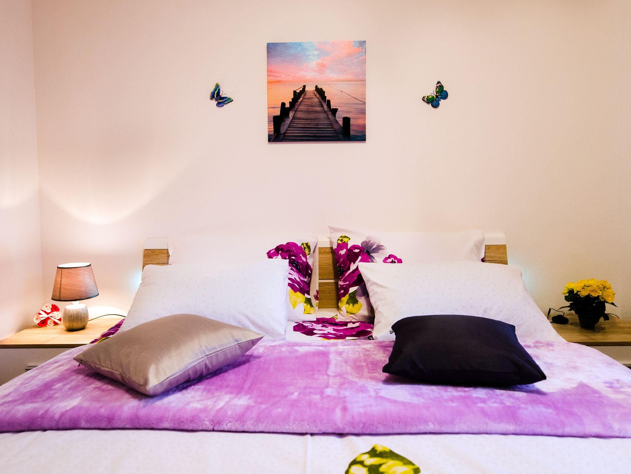 Ferienwohnung bietet Platz für 8 Gäste. Die Betten sind in Schlafzimmern, die es 3 gibt, und in Wohnzimmer, innerhalb einer Gesamtfläche von 79m2, angeordnet. Die Gäste haben eine eigene Terrasse zur Verfügung, auf der sie in warmen Sommernächten genießen können. Das Apartment bietet Meerblick. Es ist erlaubt, Speisen auf dem Gemeinschafts-Grill vorzubereiten. Während ihres Aufenthalts können Gäste das gemeinsam zur Nutzung stehende Schwimmbad benutzen. In der Unterkunftseinheit besteht die Möglichkeit des Mitbringens von Haustieren, und die Dienstleistung ist im Preis der Unterkunft enthalten. IM PREIS INBEGRIFFEN: Kurtaxe, Endreinigung, Klimatisierung, Pool, Parkplatz, Internet, Haustiere, Bügeleisen, Bügelbrett, Föhn, tragbarer Grill, Sonnenschirm. VERBINDLICHE ZUSÄTZLICHE KOSTEN: Aufzahlung für Kurzaufenthalte (prozentualer Zuschlag pro Nächtigungsanzahl: 30% - 1, 20% - 2, 10% - 3). UNVERBINDLICHE ZUSÄTZLICHE KOSTEN: Fahrrad (10,00 € täglich (pro Stück)). Die Verfügbarkeit zusätzlicher Dienstleistungen in Ihrem reservierten Termin und die Preise derselben (falls nicht aufgeführt) müssen im Voraus überprüft werden. Zusätzliche Dienstleistungen die in der Zahlungsaufforderung nicht aufgeführt sind werden direkt beim Vermieter bezahlt, angenommen der Gast nutzt auch diese. Ermäßigung auf den Grundpreis: Gratistag 14=13 (bei einem Aufenthalt von 14 Tagen oder mehr erhalten Sie einen Gratistag für den Aufenthalt bis 31.12.26).