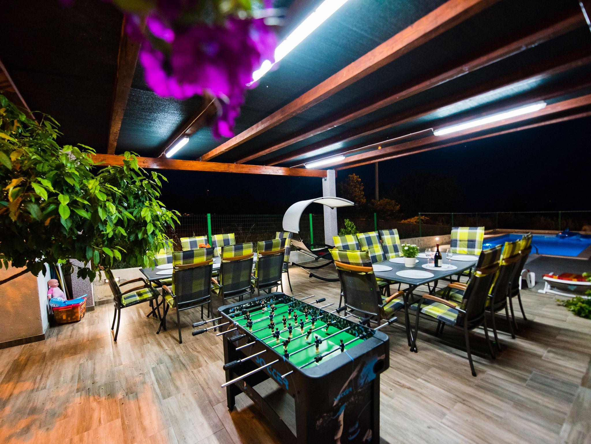 Umgebung des Objekts (Ordentlich), Hof (300m2, Kinderbereich, Sitzbereich), Parkplatz (Anzahl der Parkplätze: 6, Entfernung vom Objekt: im Hof), Pool: gemeinsam, Dimensionen: 7m x 4m x 1.5m, Wassertyp: Süßwasser, Grill: gemeinsam, WiFi Internet, Fahrrad (Anzahl: 1), Föhn, Bügeleisen, Bügelbrett, Tragbarer Grill, Sonnenschirm