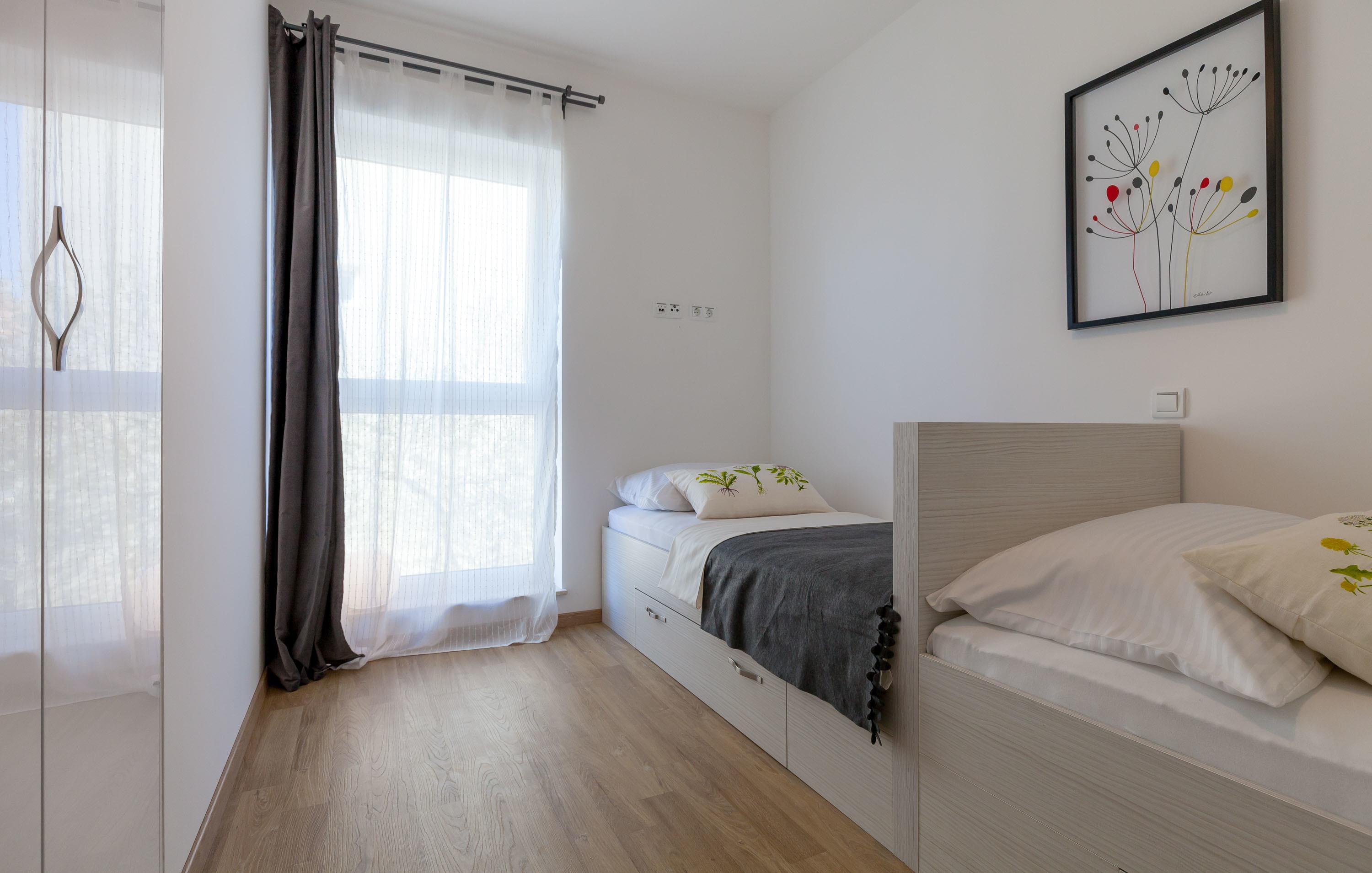 Das Appartement ist brandneu und befindet sich in einem privaten kleinen Gebäude in Podstrana und verfügt über einen privaten Parkplatz, nur 10-15 Minuten vom Zentrum von Split entfernt. Es gibt schöne Strände in der Nähe, 5 Gehminuten von der Wohnung entfernt (400 Meter).