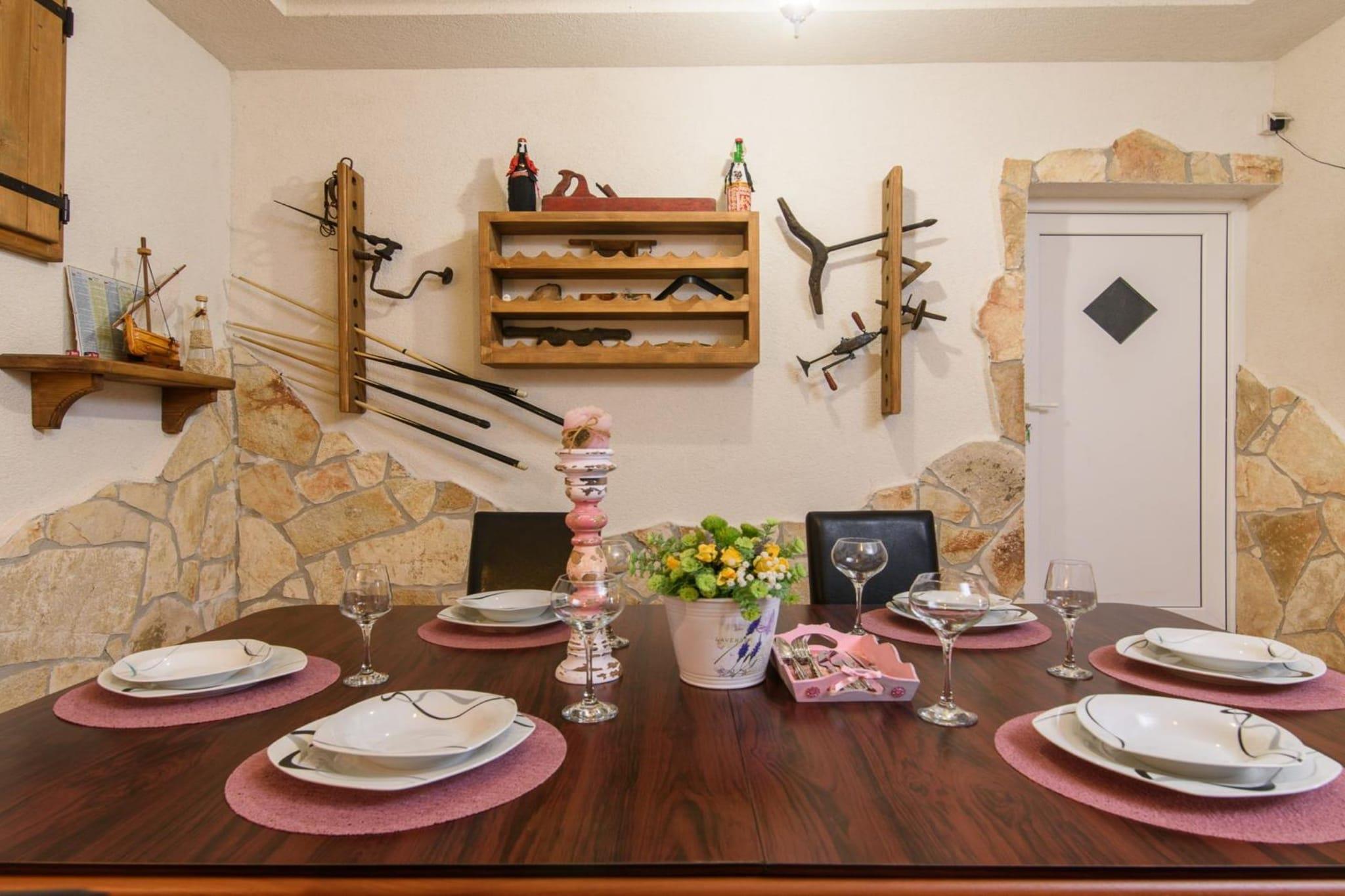 Vila Ive winter spa Podumci is a luxurious retreat located in Podumci, Šibenik-Knin County, Croatia. The villa is approximately 28 kilometers from Barone Fortress and 29 kilometers from Šibenik Town Hall, with Split Airport located 25 kilometers away. Note: Private parking is available, and reservation is required. Wi-Fi is available throughout the property. Pets are allowed with notice. Baby cot is available on request. This two-bedroom can accommodate up to five guests. It features a TV and is combined with a sofa and kitchen. The private bathroom is equipped with a shower. Thanks to its excellent location, everything you'll need for your vacation is just a short walk from the property. Grocery stores, cafes, restaurants—everything is within a 4.00 km radius. The beach is 18 km away from the property. The airport is 25 km away from the property.
