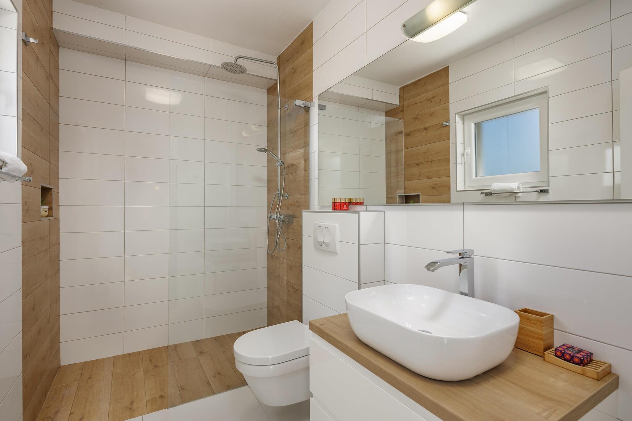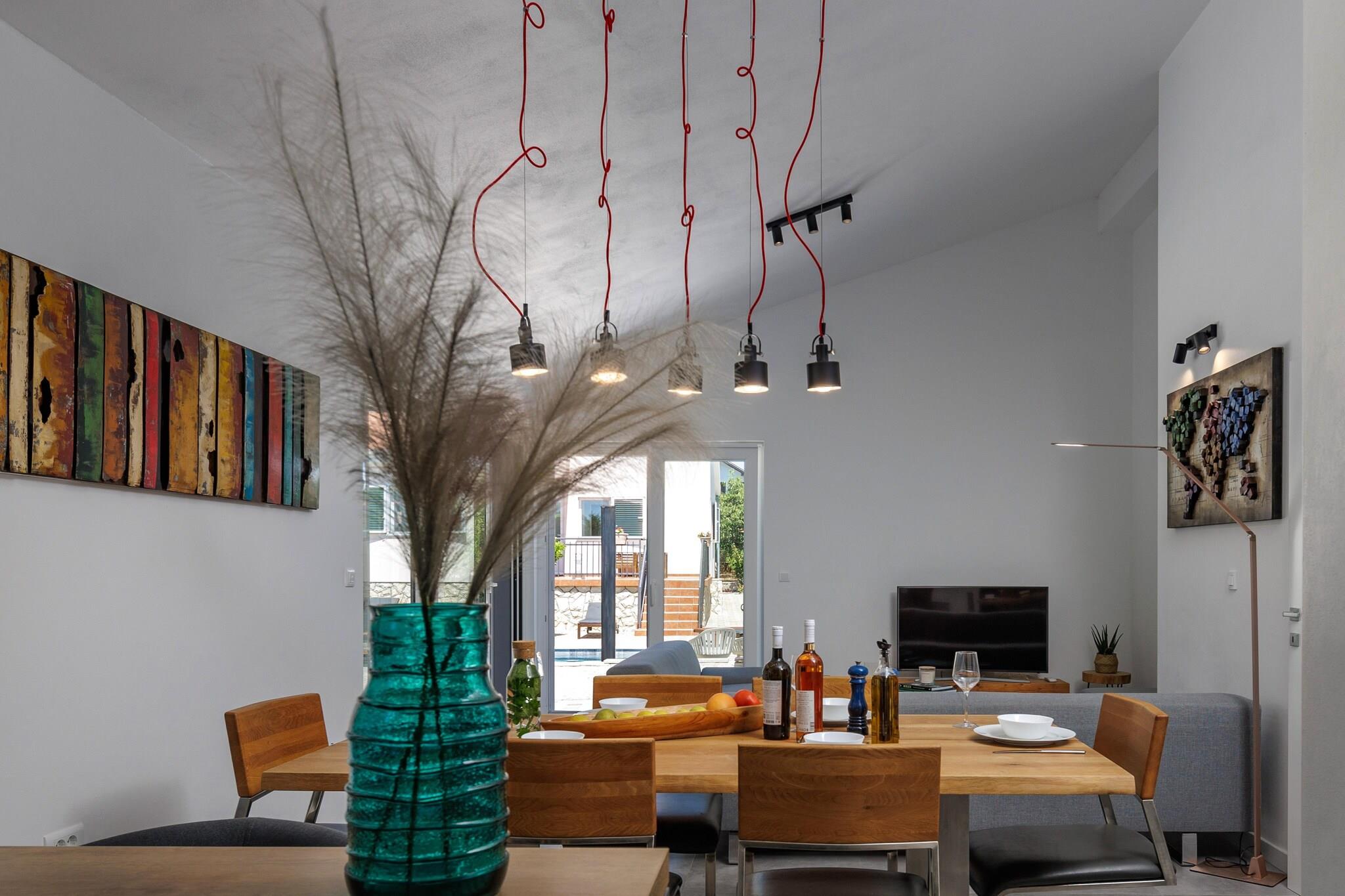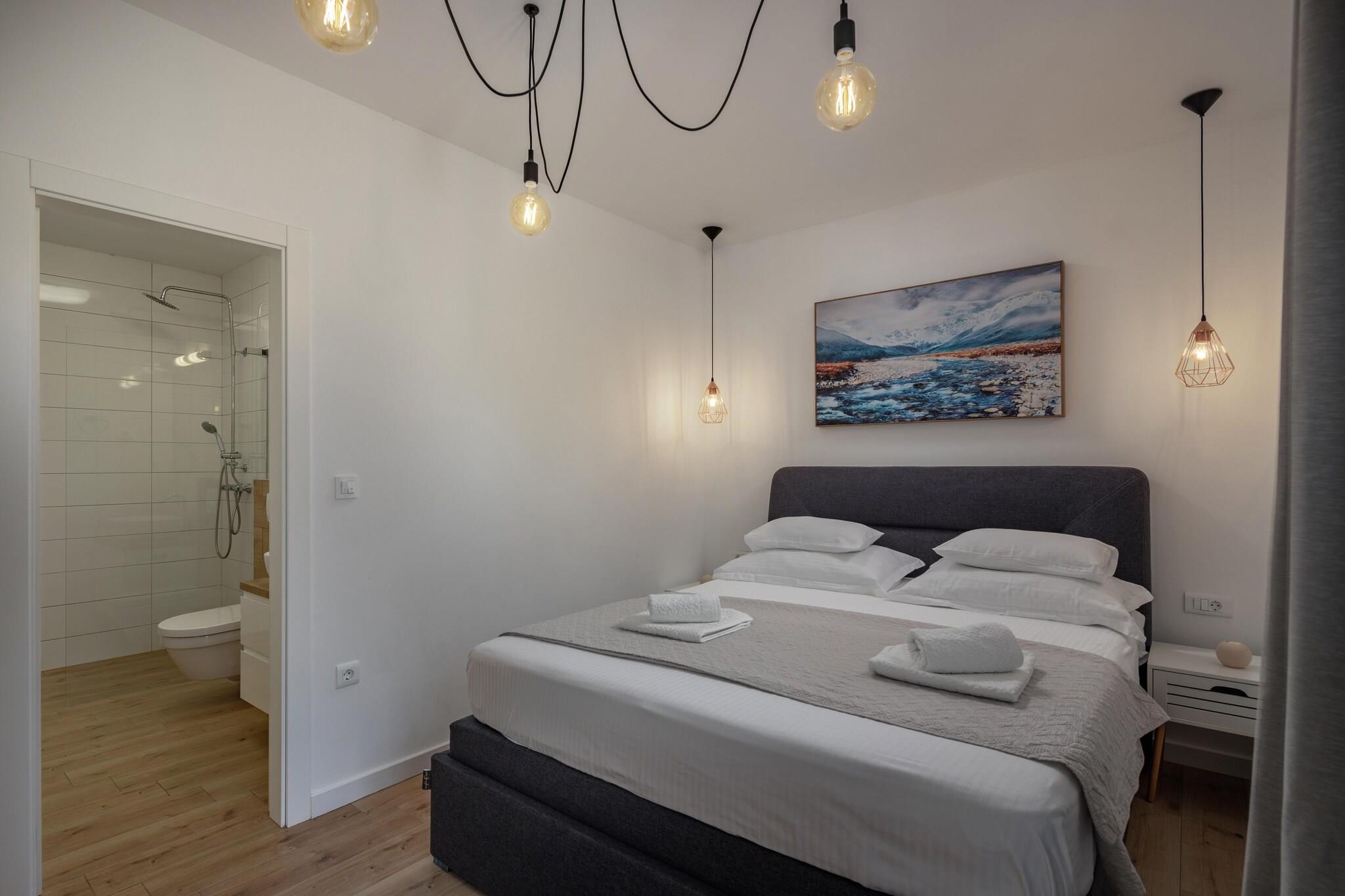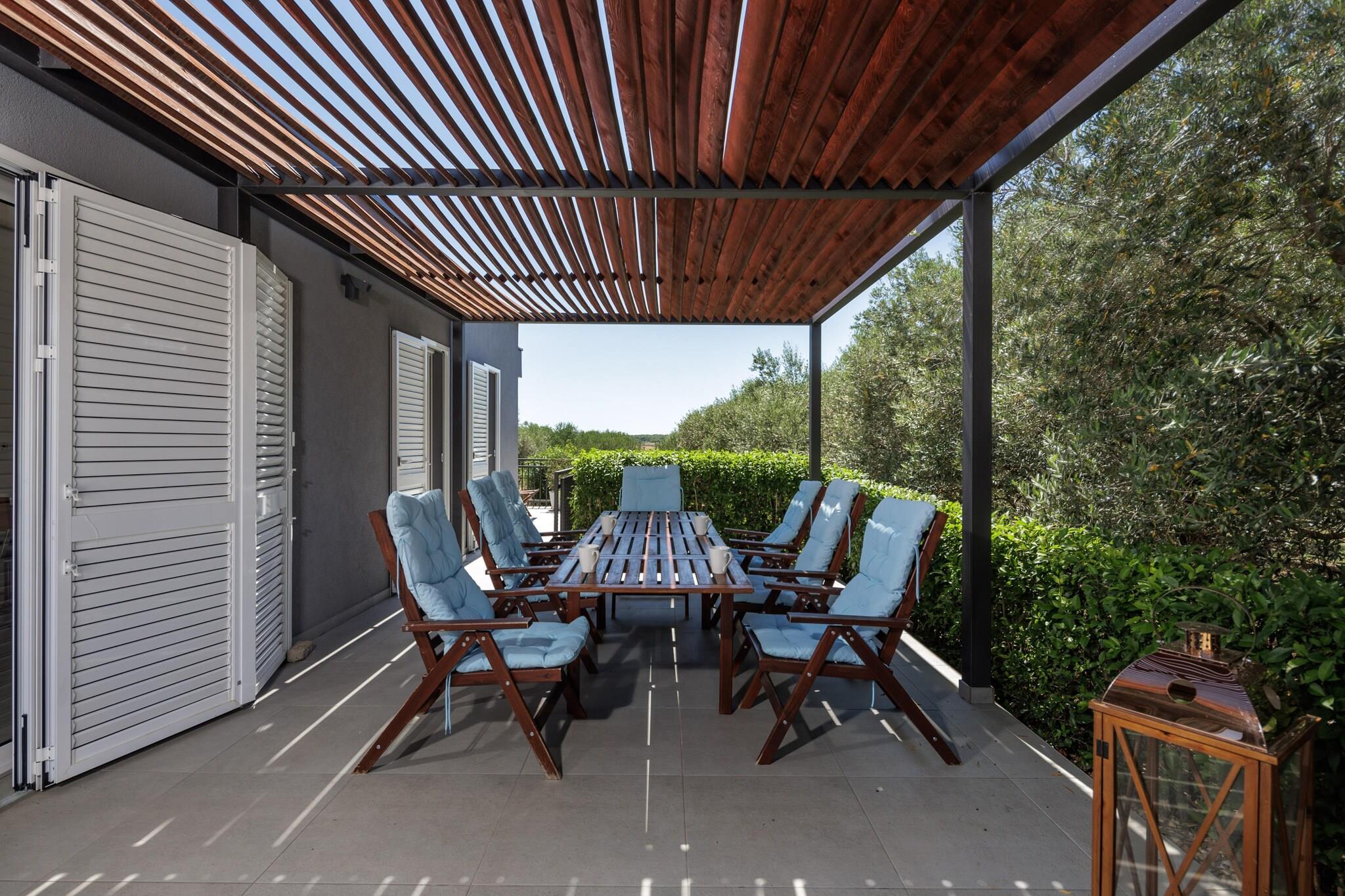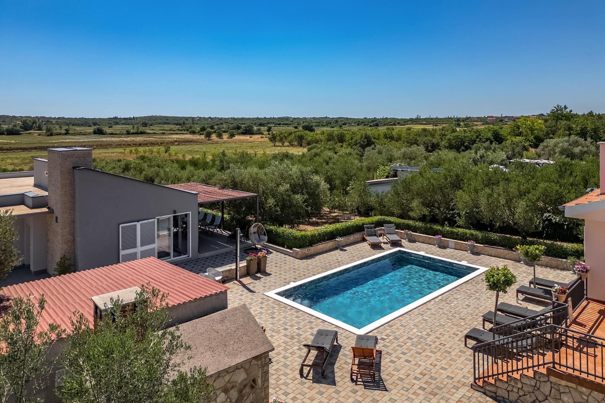 Dit feriehus har en rolig landlig beliggenhed i landsbyen Polaca. Et perfekt sted at nyde en afslappet ferie med masser af privatliv. Spredt over 2 enheder, tilbyder dette moderne feriehus en komfortabel indkvartering til op til 12 personer. Hovedhuset består af en elegant indrettet stue / spisestue, et fuldt udstyret åbent køkken og 3 soveværelser med eget badeværelse, der hver har aircondition og et fjernsyn. Pensionatet har et andet køkken, stue / spisestue, soveværelse og badeværelse. Der er en rummelig have udenfor med din private pool, grillfaciliteter og en overdækket terrasse. Der er tilstrækkelig parkeringsplads til gæsterne samt gratis WiFi. Du kan nå Adriaterhavet (Biograd) på mindre end 10 minutter i bil; her kan du vælge mellem sand-, sten- eller stenstrande. Her går der daglige bådudflugter til nationalparken Kornati-øerne. På en afstand af 8 km finder du et andet naturreservat, søen Vrana, et ideelt sted for lystfiskere og fuglekikkere. På mindre end en times kørsel kan du også besøge nationalparken paklenica og krka vandfald np, samt den gamle by zadar.