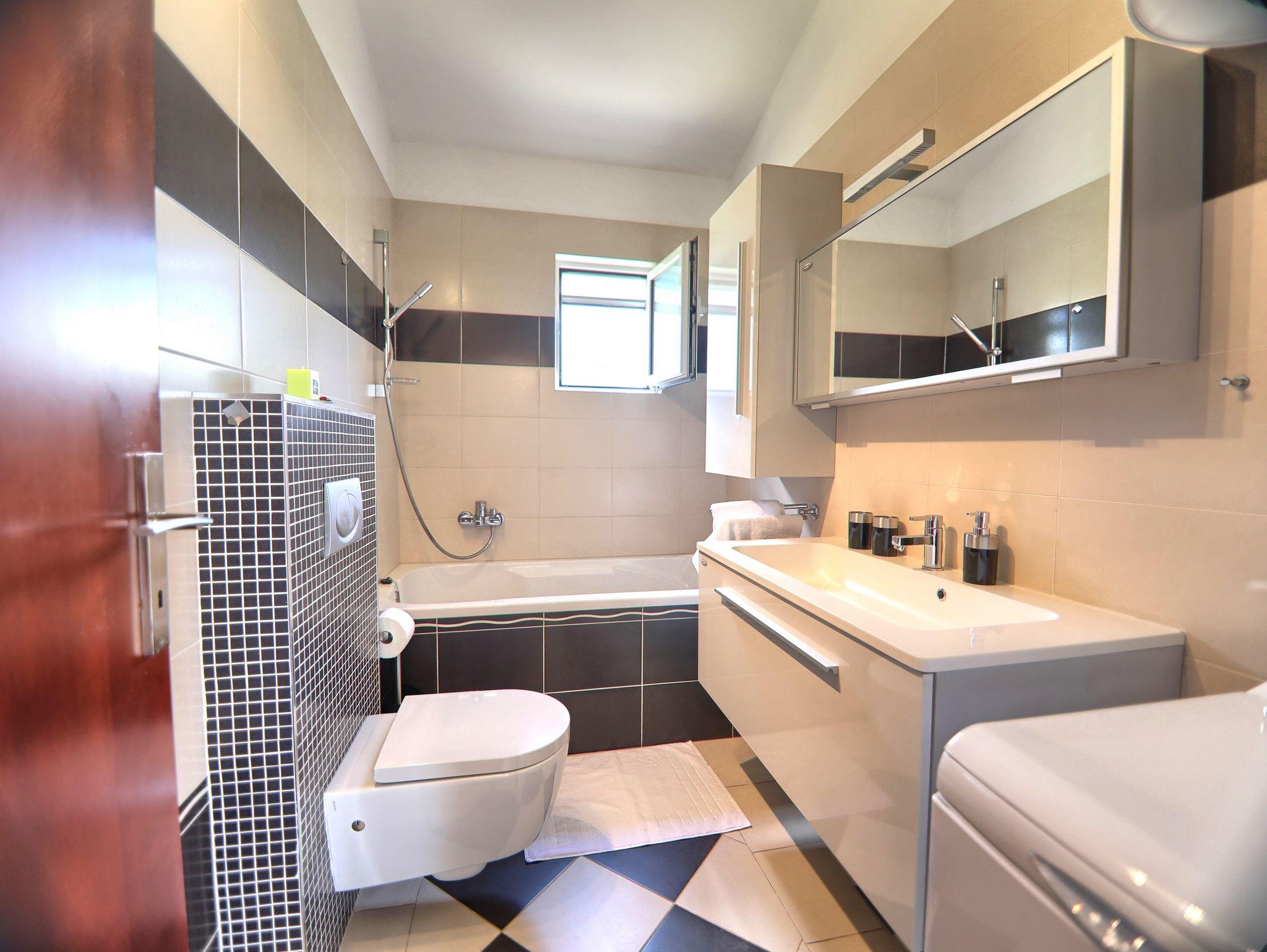 Haus bietet Platz für 6 Gäste. Die Betten sind in Schlafzimmern, die es 3 gibt, innerhalb einer Gesamtfläche von 132m2, angeordnet. Die Gäste haben eine eigene Terrasse zur Verfügung, auf der sie in warmen Sommernächten genießen können. Für vollen Genuss und Entspannung gibt es einen privaten Grill für Gäste dieser Unterkunft. Während ihres Aufenthalts können sich Gäste im privaten Schwimmbad entspannen. IM PREIS INBEGRIFFEN: Kurtaxe, Endreinigung, Klimatisierung, Pool, Parkplatz, Internet, Kinderbett, Bügeleisen, Bügelbrett, Föhn. Die Verfügbarkeit zusätzlicher Dienstleistungen in Ihrem reservierten Termin und die Preise derselben (falls nicht aufgeführt) müssen im Voraus überprüft werden. Zusätzliche Dienstleistungen die in der Zahlungsaufforderung nicht aufgeführt sind werden direkt beim Vermieter bezahlt, angenommen der Gast nutzt auch diese.