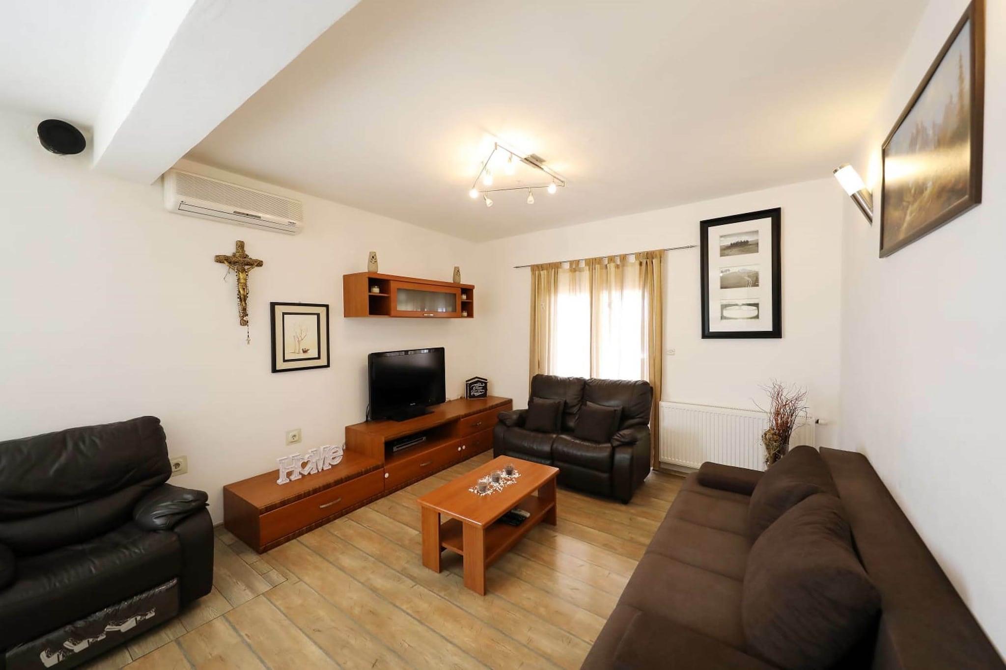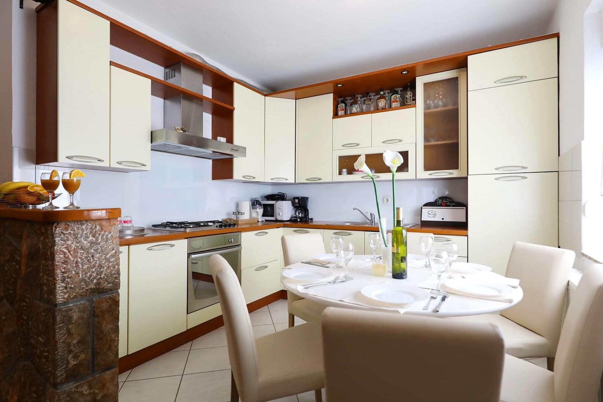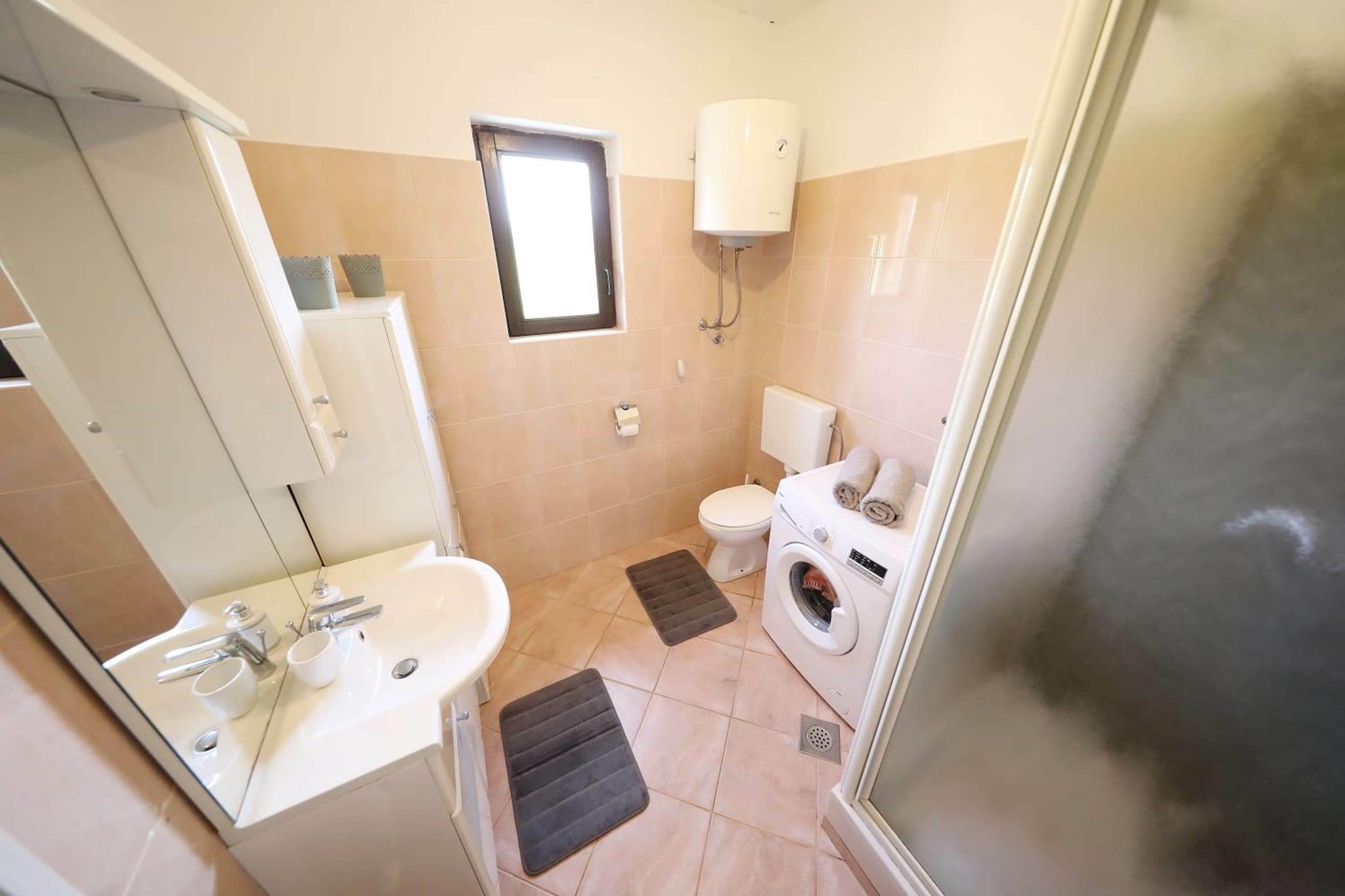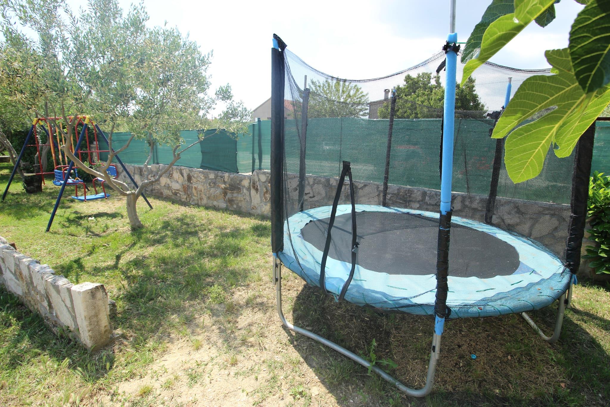Afslappende ophold nær Zadar Beliggende i den fredelige by Policnik tilbyder denne villa til seks gæster en rolig oase med gratis WiFi og moderne faciliteter. Kun 8 km fra havet og 15 km fra Zadar kan gæsterne nyde både ro og nem adgang til pulserende kystattraktioner. Med restauranter kun 700 meter væk og almindelige forsyninger inden for 100 meter er bekvemmeligheden altid lige ved hånden. Elegant interiør og udendørs fritid Indenfor har villaen en rummelig opholds- og spisestue med fladskærms-tv, et fuldt udstyret åbent køkken og to hyggelige soveværelser med kingsize-senge. Gæsterne kan slappe af på den private overdækkede terrasse, nyde udendørs spisning med grillen eller tage en forfriskende dukkert i den private swimmingpool. Yderligere faciliteter inkluderer en vaskemaskine, liggestole, en trampolin, dart og en gynge, hvilket sikrer et behageligt og underholdende ophold. Nærliggende attraktioner og spisesteder Udforsk Stenbroen og den gamle port, et historisk vartegn med en fantastisk udsigt, eller besøg Degarra Winery, kendt for sine udsøgte lokale vine. Til spisning serverer Restaurant Fortuna autentiske kroatiske retter, mens Orkula Mediterranean Grill & More tilbyder en blanding af middelhavs- og europæisk køkken. Uanset om du søger eventyr eller afslapning, er denne villa det perfekte tilflugtssted.