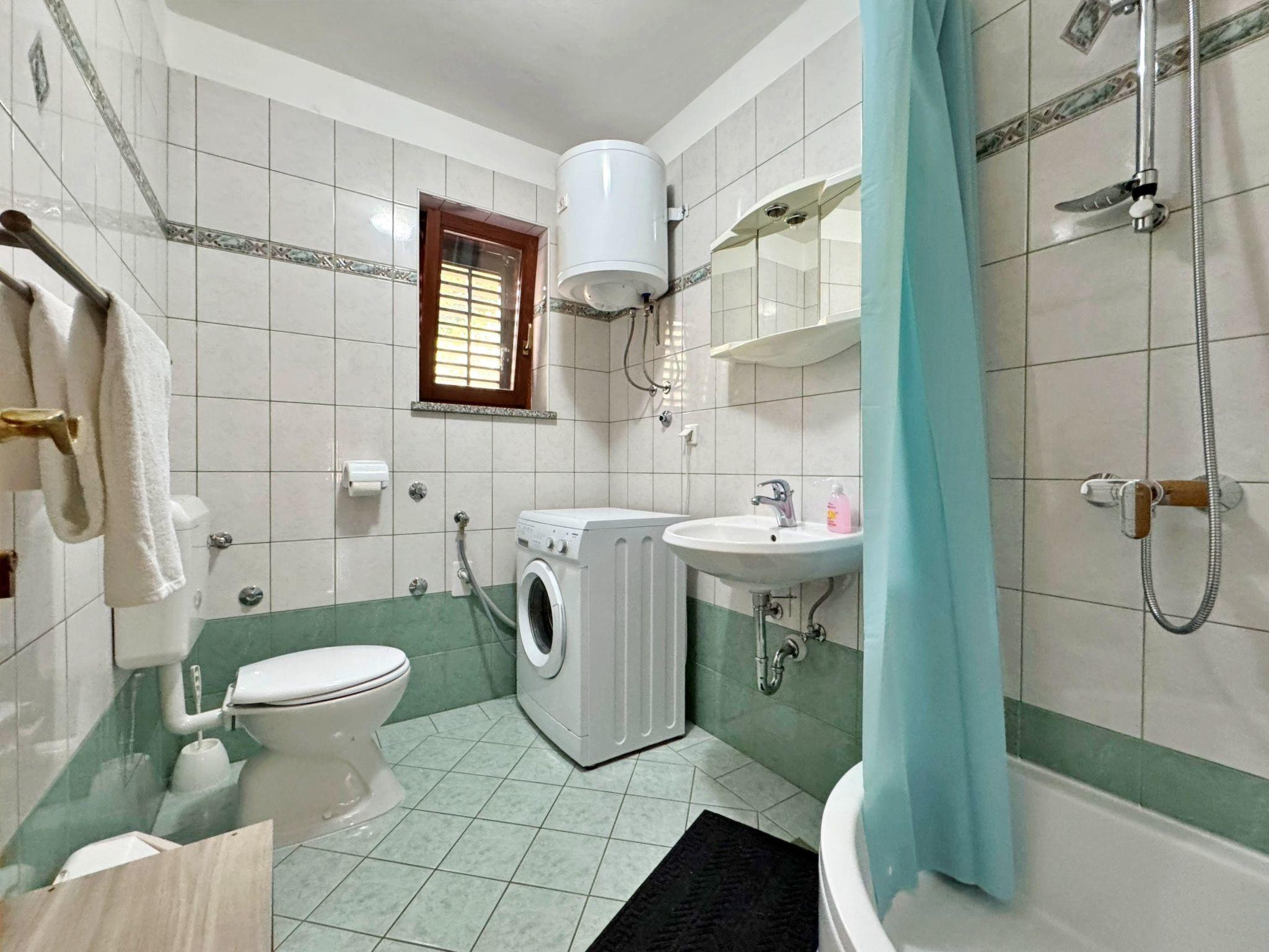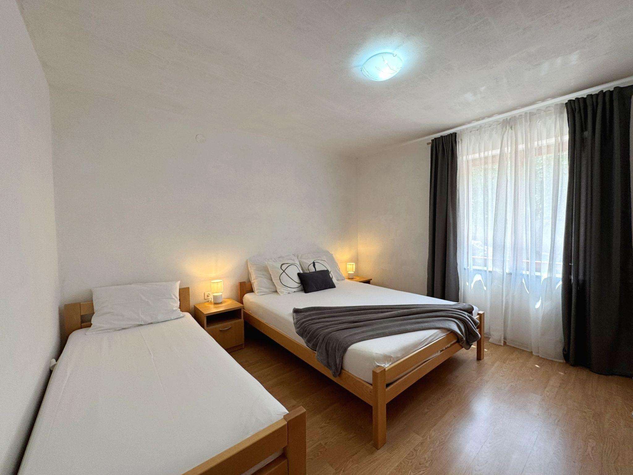 Enjoy a relaxing holiday just 320 m from the beach! This inviting two-bedroom flat has a 12 m2 terrace overlooking a green backyard, which is ideal for relaxing. One bedroom has a double bed, while the second has a double bed and a single bed. The living room has air conditioning and satellite/cable TV. The fully equipped kitchen includes a 4-burner electric/gas hob, an oven, a fridge with freezer compartment, a coffee machine, a kettle, a microwave and a dishwasher. You will also find two bathrooms - one with a shower, toilet and washing machine and the other with a shower and toilet. There is also the possibility to barbecue in the courtyard. Free WiFi is available throughout the house and a private car park awaits you directly in front of the house. This flat offers everything you need for a comfortable and convenient stay by the sea!