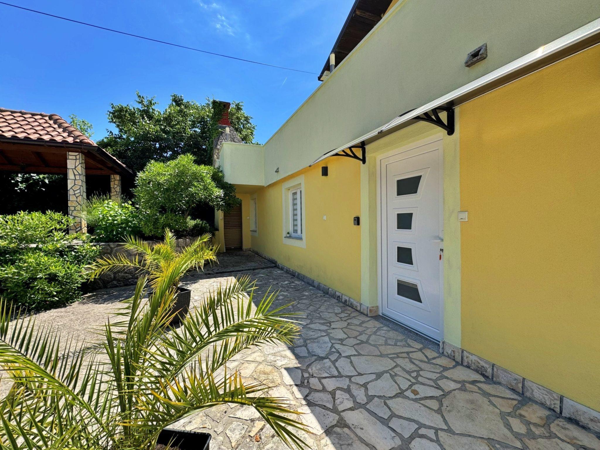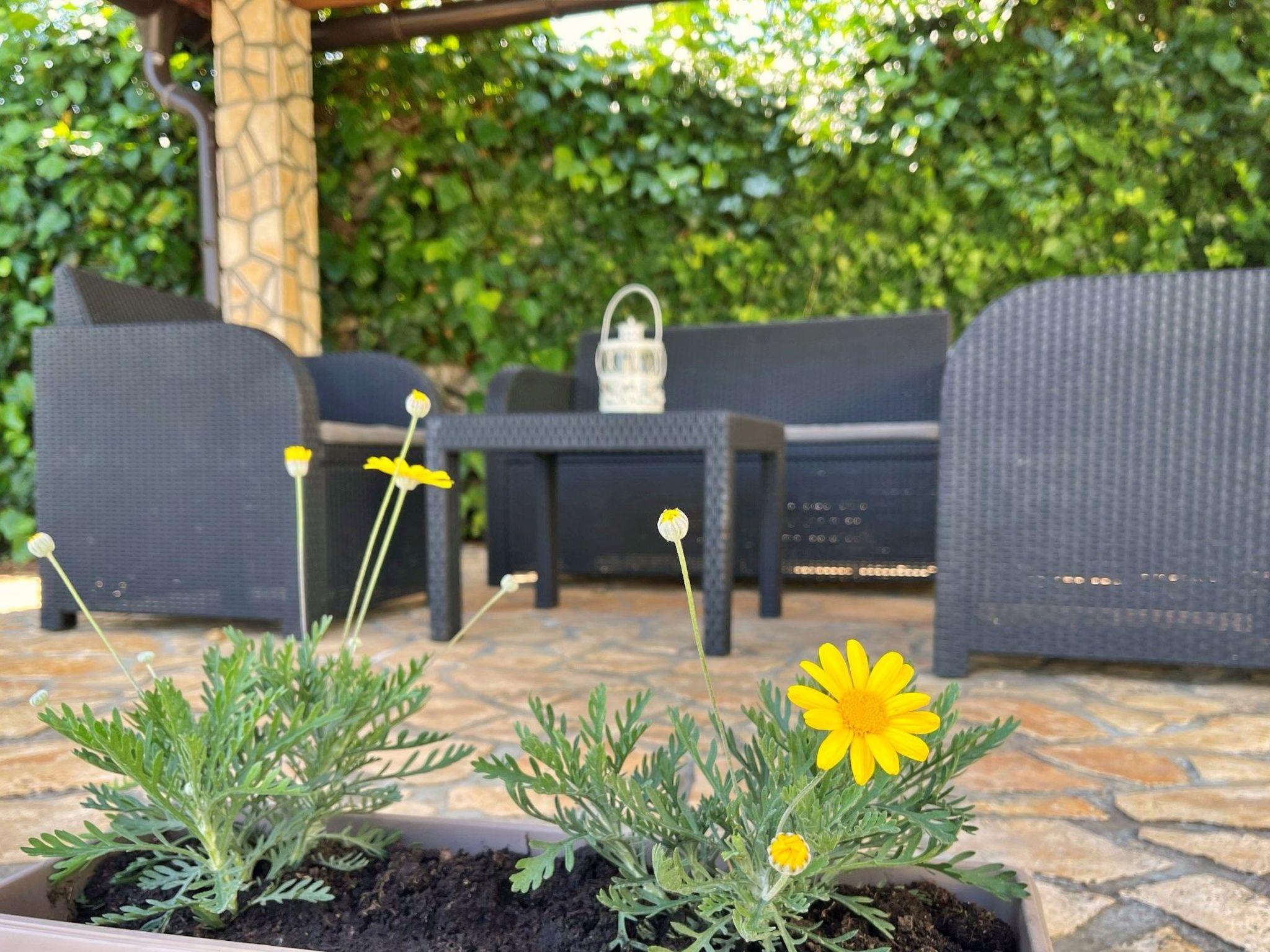 This modern ground floor flat is designed for comfort and convenience and is located 1.65 km from the sea. It has a fully equipped kitchen with ceramic hob, oven, fridge with freezer compartment, coffee machine, kettle and dining table. The living room has a sofa (which can be used as a sofa bed), satellite TV, WiFi and air conditioning. The cosy bedroom has a double bed and the bathroom is equipped with a shower, WC and bidet. Outside, you can relax on the 15 m2 covered terrace with garden view or use the communal barbecue. Bed linen and towels are provided and the owner also offers guests a laundry service. A baby cot is available on request. The entire unit is also wheelchair accessible. Pets are welcome and there is a private car park for you in the courtyard. The owner lives in the same house and is there for you if you need anything!
