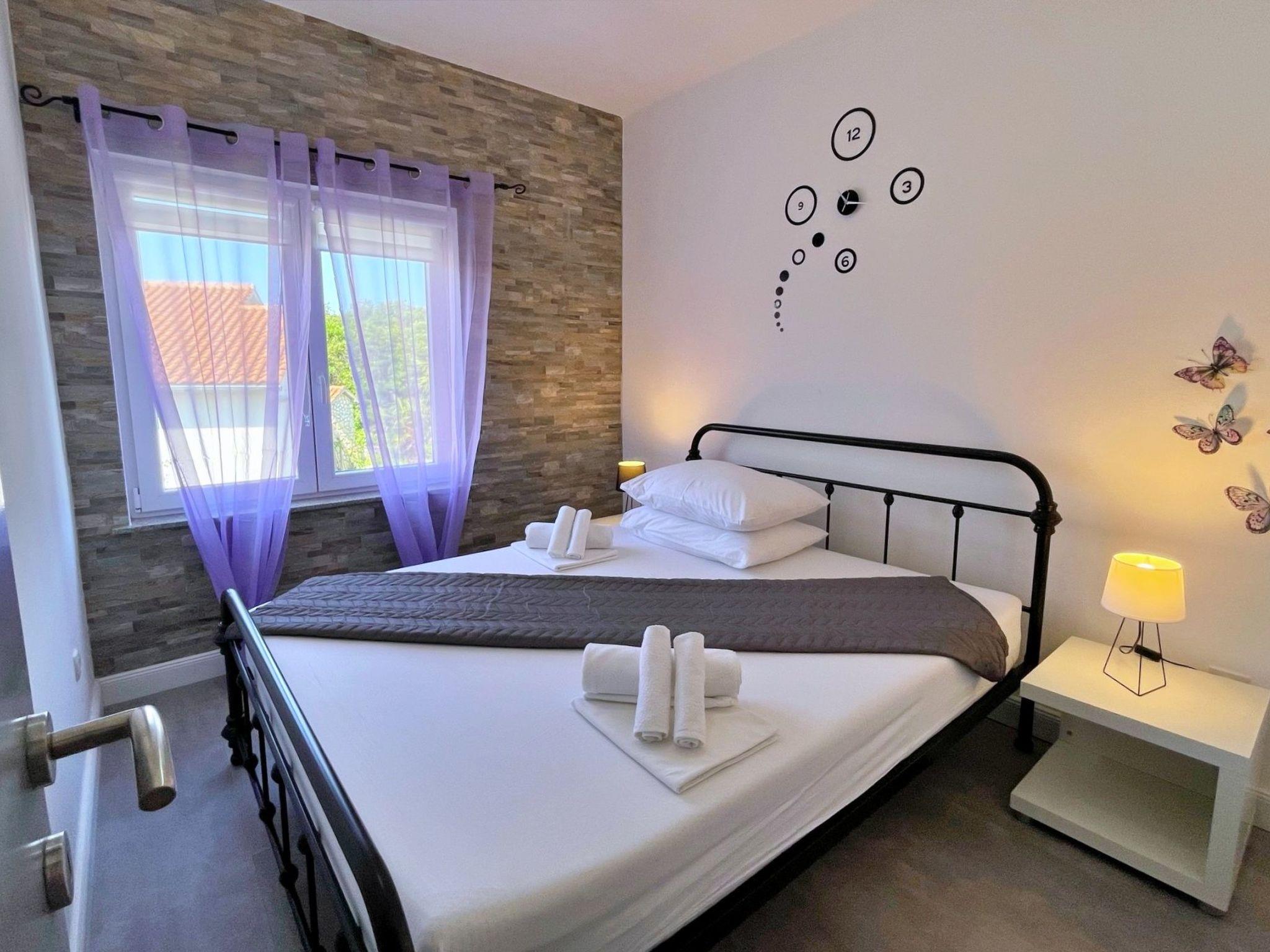 This modern three-bedroom flat is located 1.65 km from the sea. It has a fully equipped kitchen with gas/electric hob, oven, fridge with freezer compartment, coffee machine, kettle and dishwasher. The living room has a sofa, dining table, satellite TV, WiFi and air conditioning. The bedrooms have double beds and one of the bedrooms has a sea view and access to the terrace. The bathroom is equipped with a shower, toilet and bidet. Outside, you can relax on the 24 m2 terrace with sea and garden views. There is also a shared barbecue area on the ground floor in the courtyard. Bed linen and towels are provided and the owner also offers a laundry service for guests. A baby cot is available on request. A private car park is available in the courtyard. One dog is allowed in our flats without additional charge. Please let us know in advance if you are travelling with your pet - we will give you and your four-legged friend a warm welcome. The owner lives in the same house and is there for you if you need anything!
