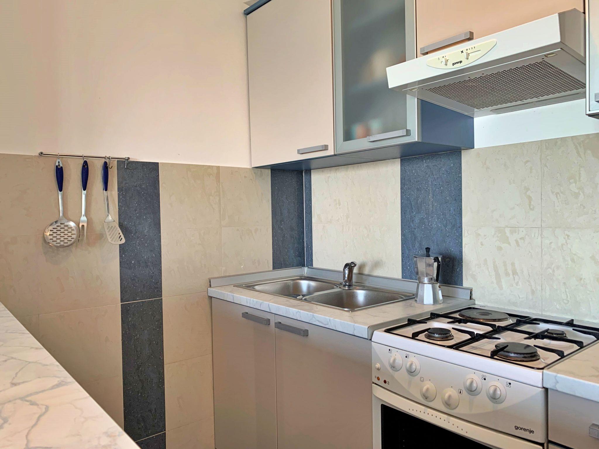 This charming first-floor flat is ideal for a relaxing holiday, just 35 metres from the sea and the sandy beach. Enjoy the breathtaking panoramic sea view from the 6 m2 private balcony - the perfect place for your morning coffee. The flat can comfortably accommodate 2 to 3 people and has a bedroom with a double bed and a sofa bed in the living area for an additional person. The bathroom is equipped with a shower, toilet and hairdryer. The open-plan living, dining and kitchen area creates an inviting and functional space. The fully equipped kitchen with electric/gas hob, oven, fridge with freezer compartment, coffee machine, kettle and toaster makes preparing meals a breeze. For your comfort, the flat offers air conditioning, satellite TV and free WiFi. There is also a restaurant on the ground floor of the building, which serves delicious regional cuisine. Whether you want to relax by the sea or explore the surrounding area, this flat is the perfect base for your holiday.