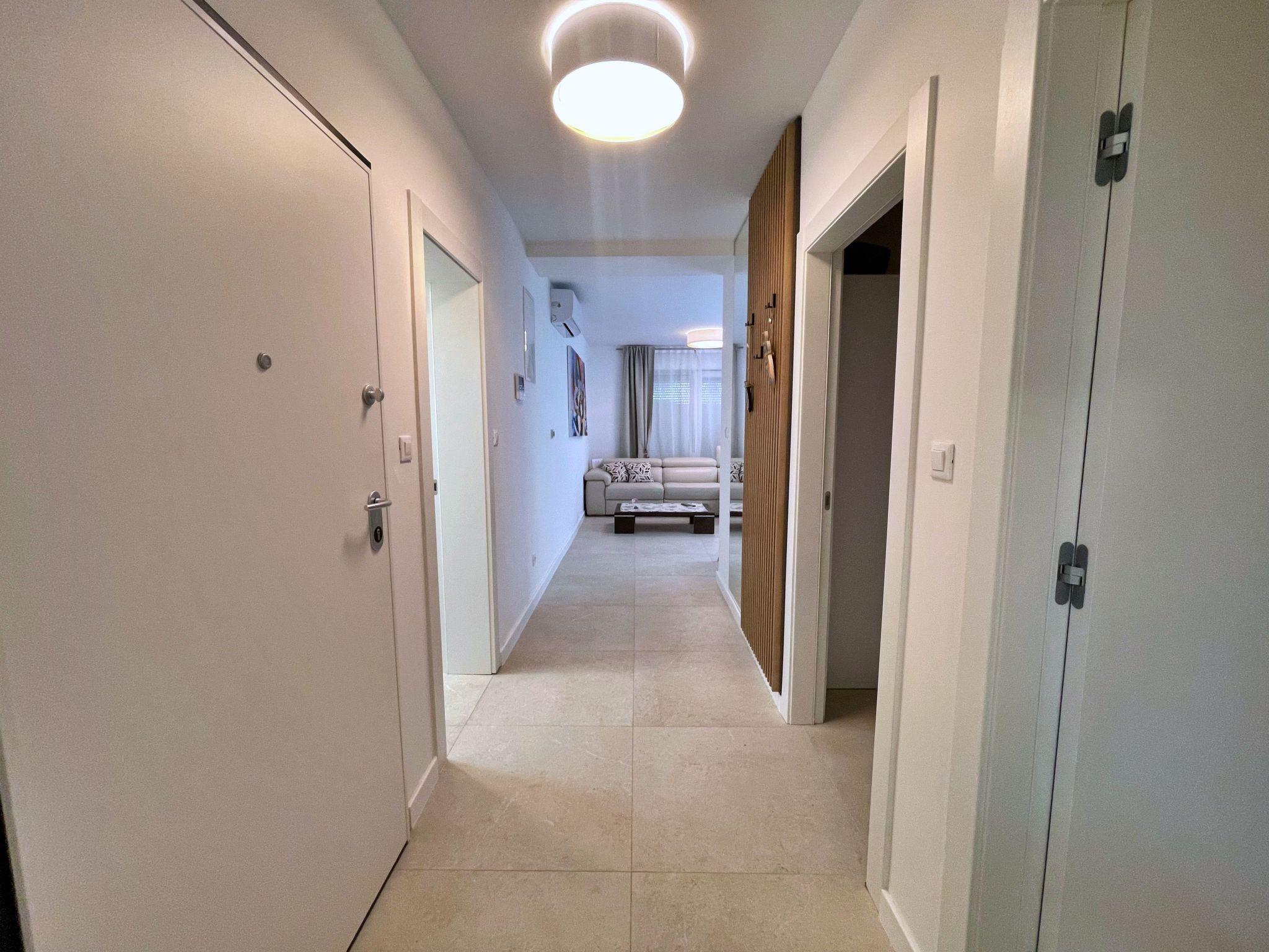Inside, the flat impresses with thoughtful amenities to make your stay as pleasant as possible. In addition to efficient air conditioning throughout the flat, high-quality smart TVs with satellite programmes in all bedrooms and in the living area provide entertainment in every corner. The technical equipment leaves nothing to be desired with an induction hob, filter coffee machine, dishwasher and more. Underfloor heating pervades the entire flat, making it a cosy retreat even in cooler months.