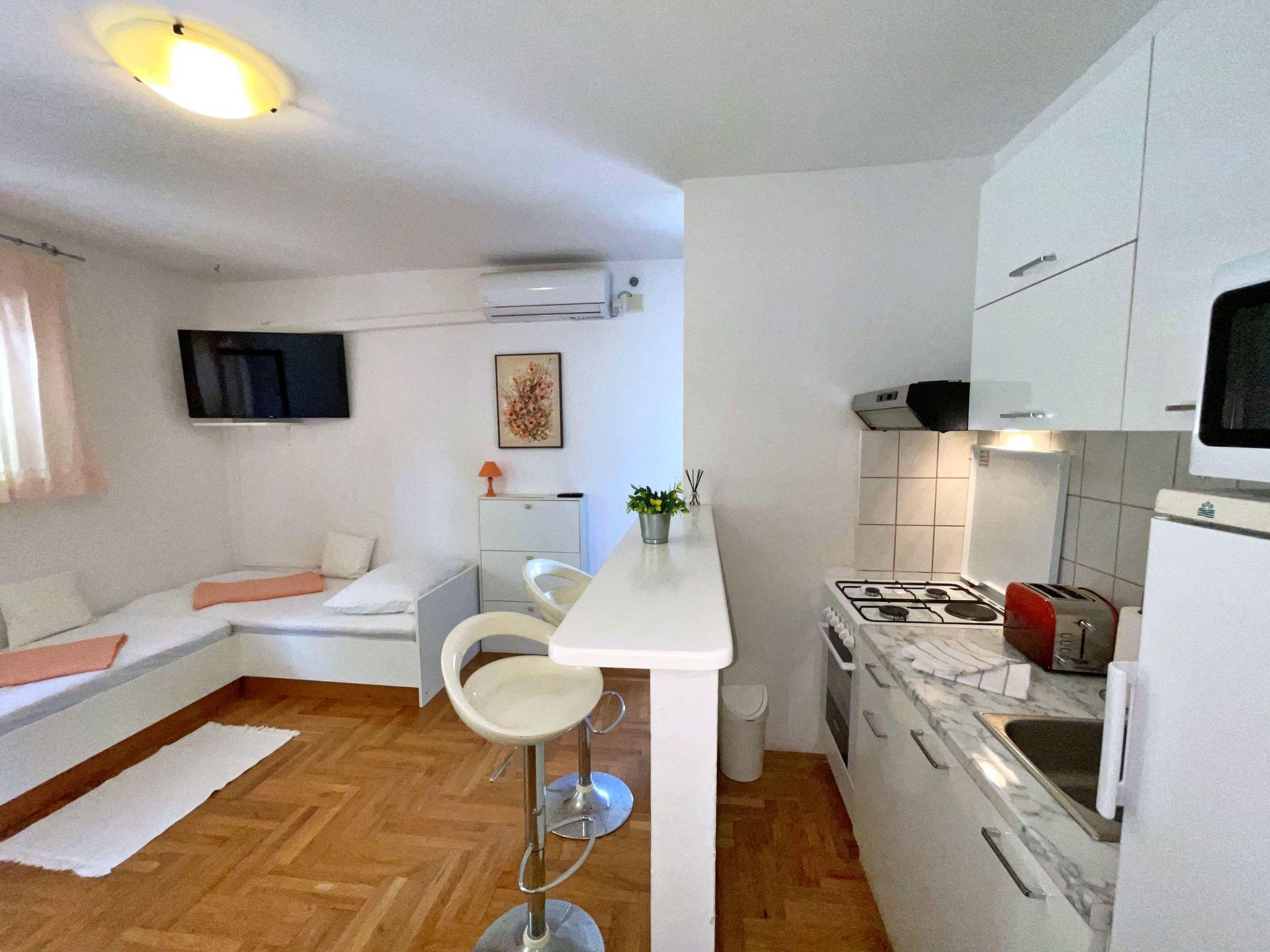 This apartment is located in the small village of Šilo on the Island of Krk. The town is known for its beautiful sandy and pebble beaches, natural coves, as well as beautiful hiking trails in nature and along the coast. The apartment is equipped with 1 double room and can accommodate up to 4 people with 2 additional single beds in the living room. The apartment is located on the ground floor and has a terrace/patio. Satellite TV and free parking on the premises are just a few of the many special features that this accommodation offers.