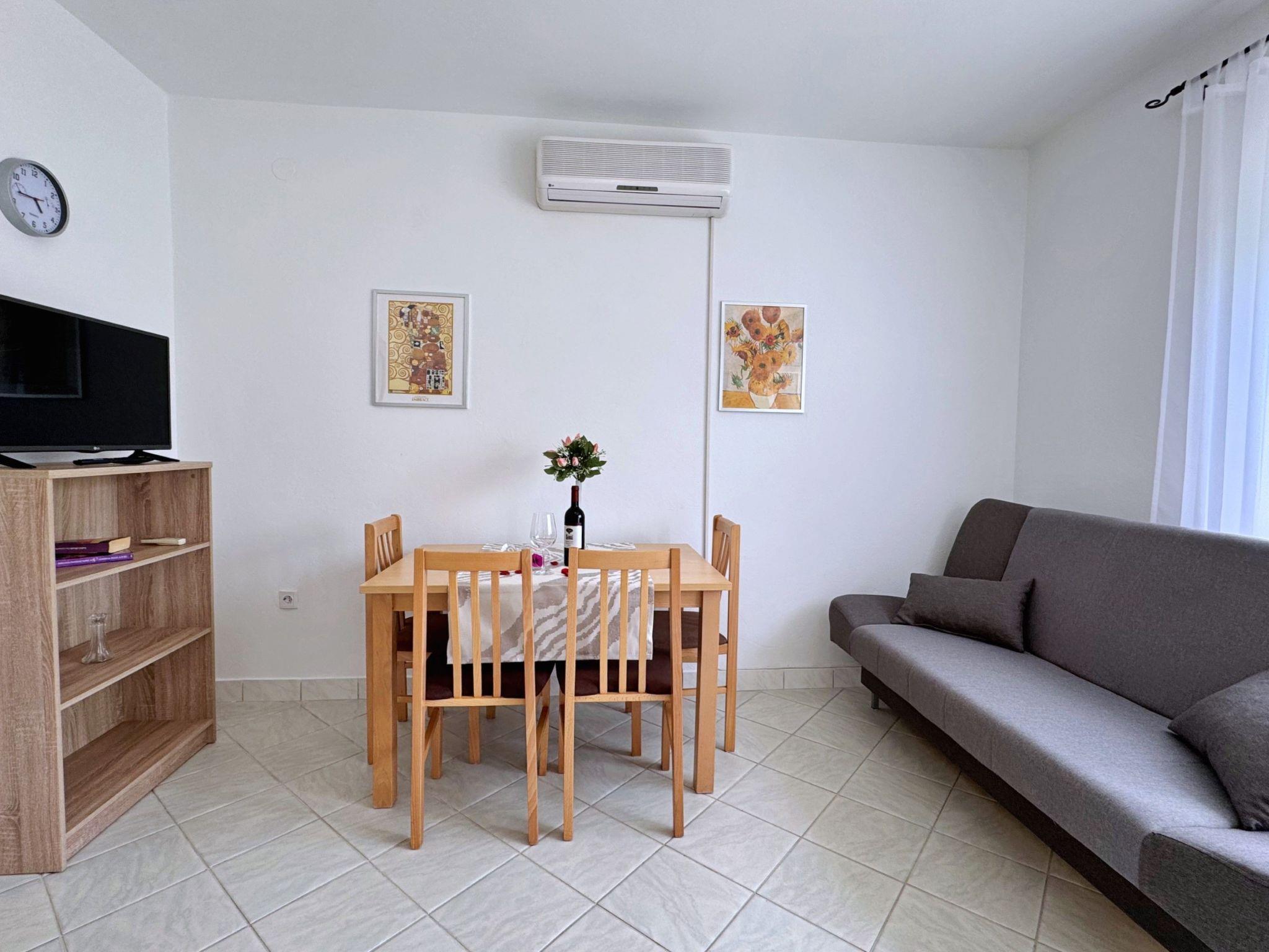 Inside, a warm and welcoming atmosphere awaits you, characterised by a cosy and well-equipped living area. The flat has two bedrooms with comfortable double beds, one of which has direct access to the balcony. The modern open-plan design harmoniously combines the living and kitchen areas and offers an electric hob, oven, fridge, microwave, toaster, kettle and coffee machine. A fully equipped bathroom with shower, toilet, bidet and hairdryer is also at your disposal.