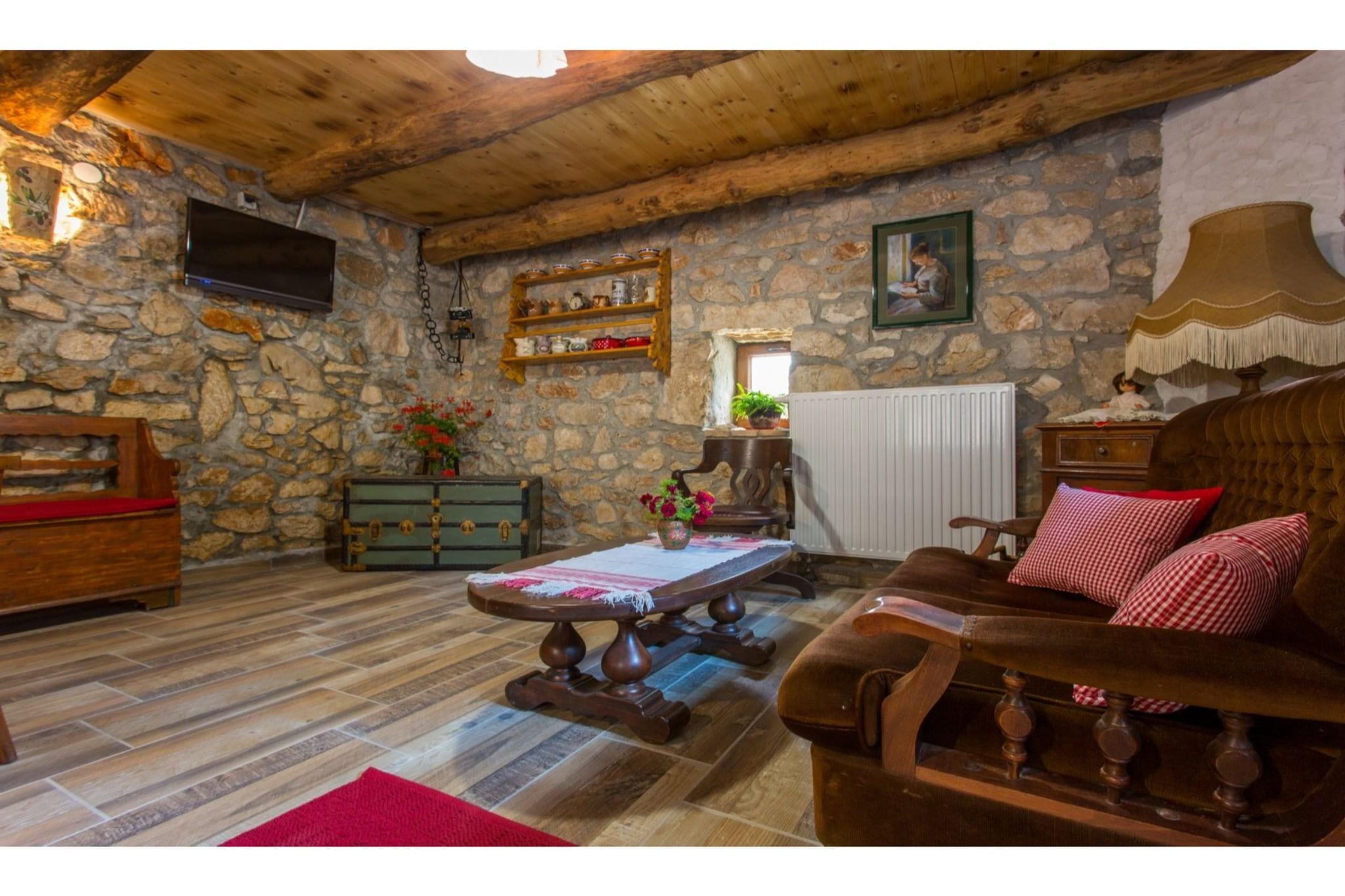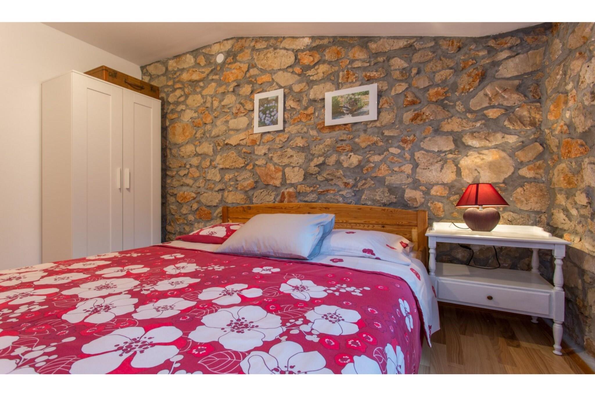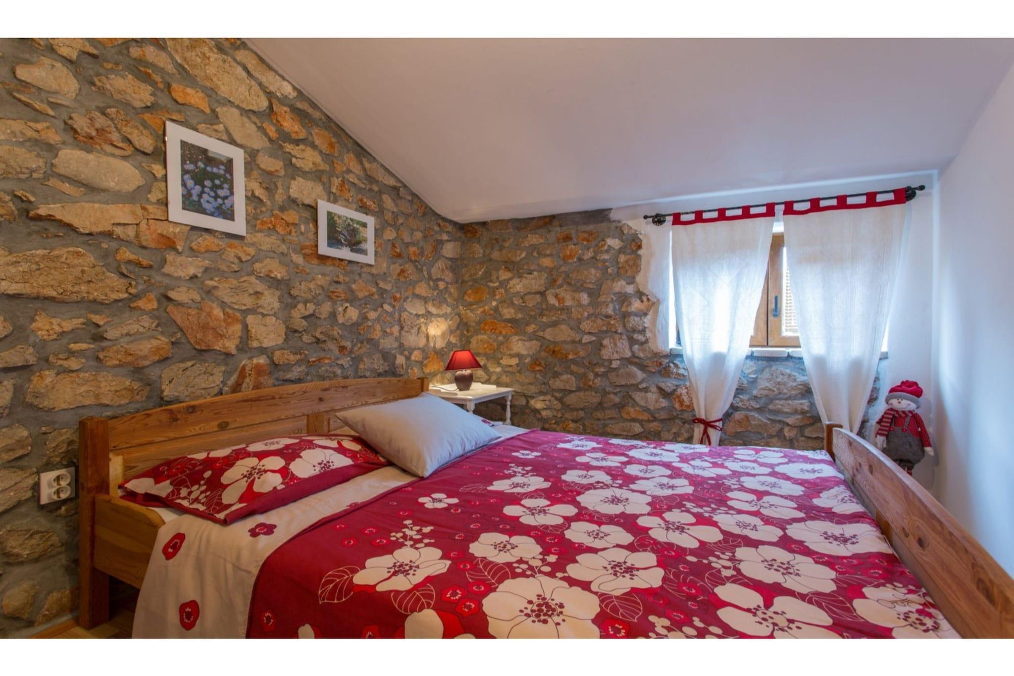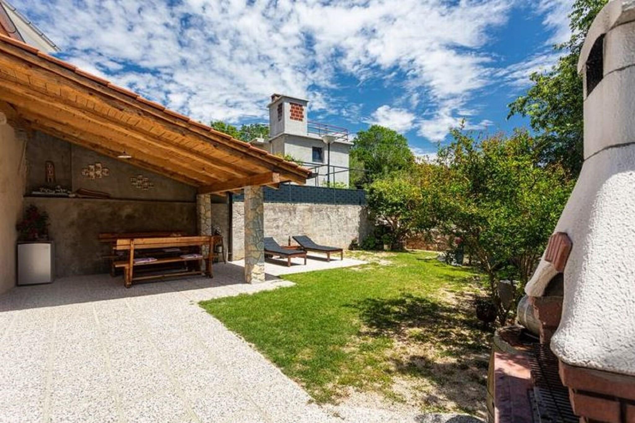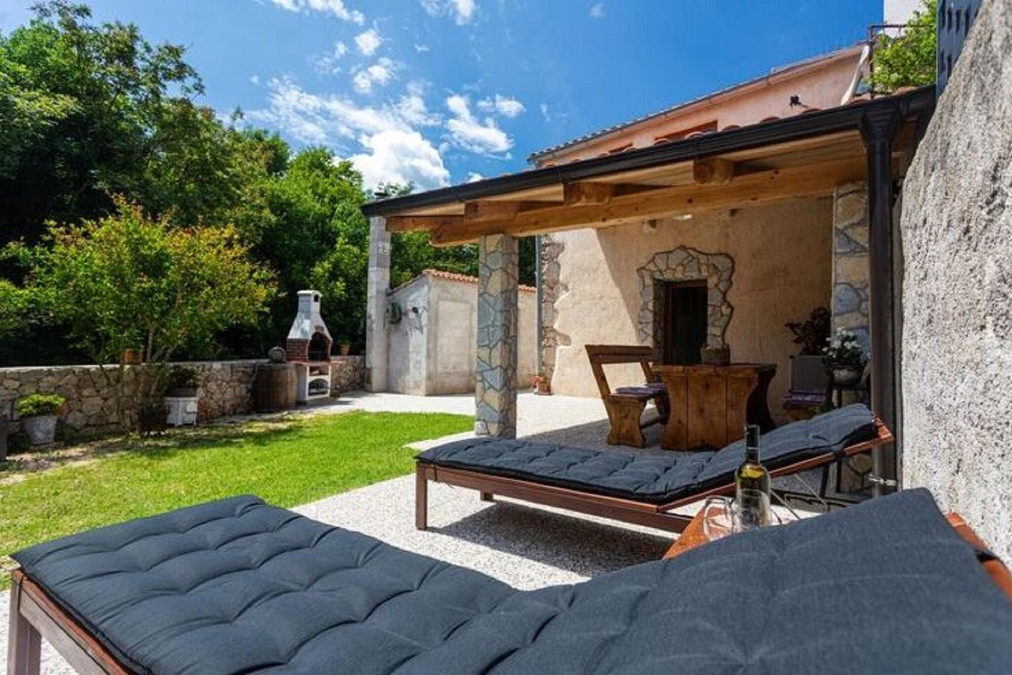 Dette dejlige feriehus ligger gemt i den fredelige landsby Polje, kun 2,5 km fra kystbyen Šilo, og tilbyder en ægte smagsprøve på ø-livet. Det er den slags sted, hvor morgenen begynder med sollys, der filtreres gennem havens træer, og slutter med stille aftener under en stjernehimmel. Det er designet til op til fire gæster og er et hyggeligt tilflugtssted for familier eller par, der søger ro, natur og enkelhed. Indvendigt føles huset straks indbydende. Stueetagen har en lys, åben stue, der kombinerer komfort og charme, komplet med spiseplads og et veludstyret køkken, hvor du kan tilberede lokale retter eller nyde lange, afslappede morgenmader. Ovenpå venter to rolige soveværelser – et masterværelse med en queensize-seng og et andet med to enkeltsenge – samt et moderne badeværelse. Hvert hjørne afspejler en rustik, men elegant stil, mens moderne bekvemmeligheder som aircondition, Wi-Fi og satellit-tv sikrer et problemfrit og ubekymret ophold. Træd udenfor, og husets sande ånd afslører sig – en stor, privat have fyldt med grønne planter, perfekt til afslappede eftermiddage og måltider i det fri. Tænd grillen, slap af i en liggestol eller saml jer omkring træbordet til en rolig aftensmad omgivet af naturen. Med privat parkering og en kæledyrvenlig politik byder dette hjem alle velkommen. Uanset om du tilbringer dine dage med at udforske Krks strande, opdage Šilos caféer ved havet eller blot nyde roen i Polje, giver dette charmerende fristed dig mulighed for at opleve øen i dit eget tempo – en perfekt blanding af komfort, varme og fredelig enkelhed.