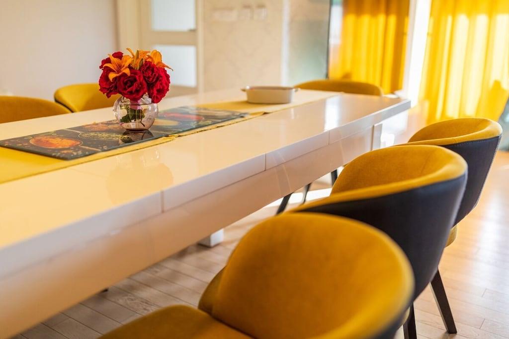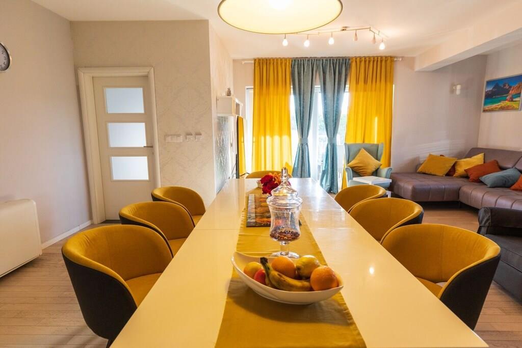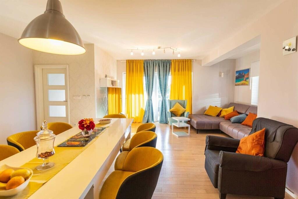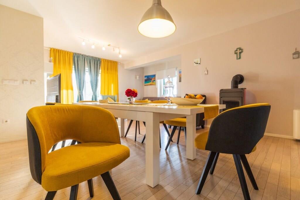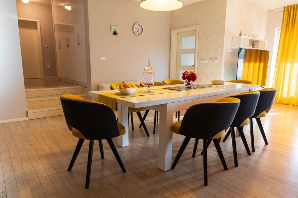 Villa Field Hills 4*, ist eine schön eingerichtete, neu erbaute 140 m² große Villa und verfügt über vier Schlafzimmer, wobei jedes Zimmer klimatisiert ist. Das Masterzimmer verfügt über eine Garderobe, ein eigenes Bad und einen Balkon. Die Küche ist modern und mit hochwertigen Geräten ausgestattet. Das geräumige und schöne Esszimmer, sowie das Wohnzimmer mit Zugang zu einer 15 m² großen Terrasse, mit dem Blick auf Garten und Pool, erfüllen alle Ihre Bedürfnisse für einen luxuriösen Urlaub. Der Garten umfasst mehr als 1200 m², hat einen 32m² großen Pool, ausgestattet mit Gartenmöbeln und Liegestühlen, sowie einem großen Grill. Den Gästen stehen zwei Garagen zur Verfügung.