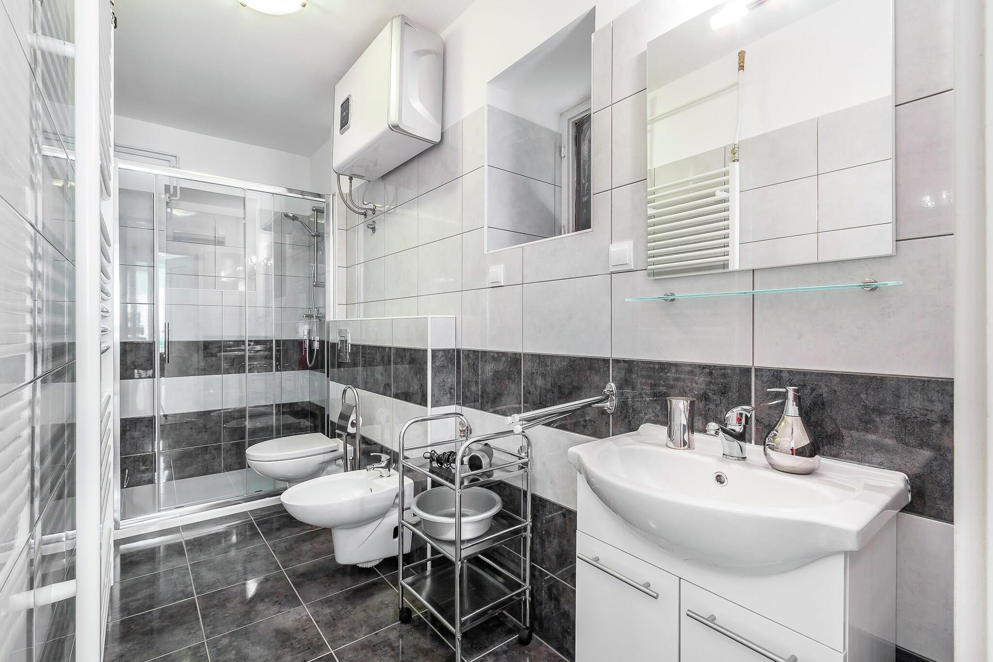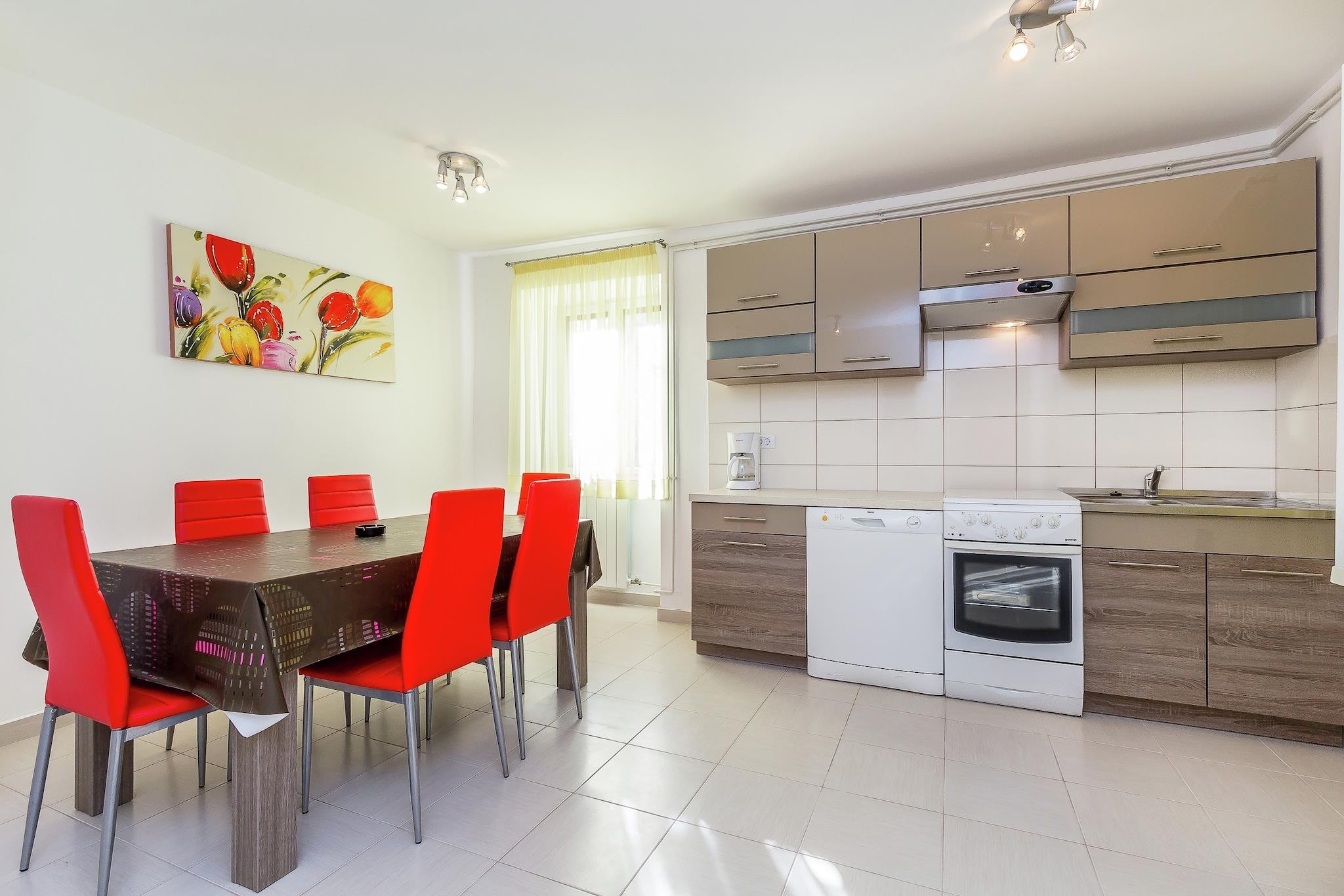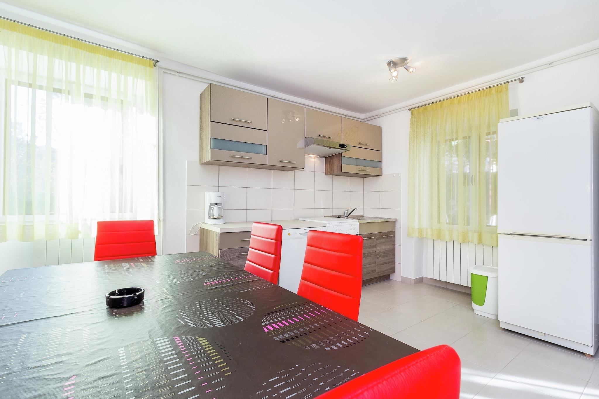 Denne lejlighed er beliggende i stueetagen af et familiehus i den rolige landsby Pomer, i det sydlige Istrien. Stranden, et lille supermarked og en restaurant ligger inden for gåafstand. Interiøret er pænt. Du vil have en stue med sovesofa, et køkken med spisebord, to soveværelser, et badeværelse og en privat terrasse med havemøbler til din rådighed. Der er også en fælles have med grill. Offentlig parkering på gaden.