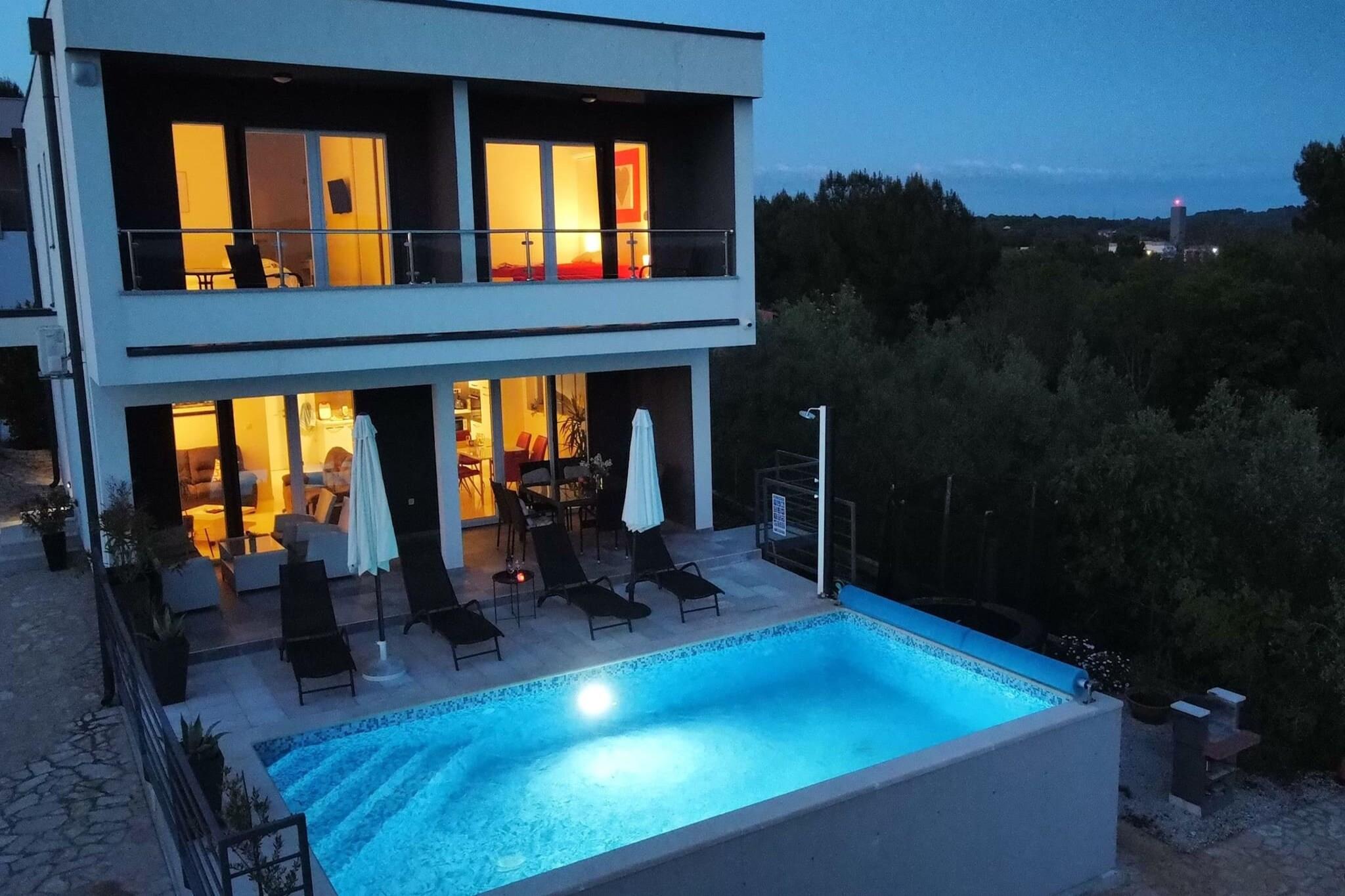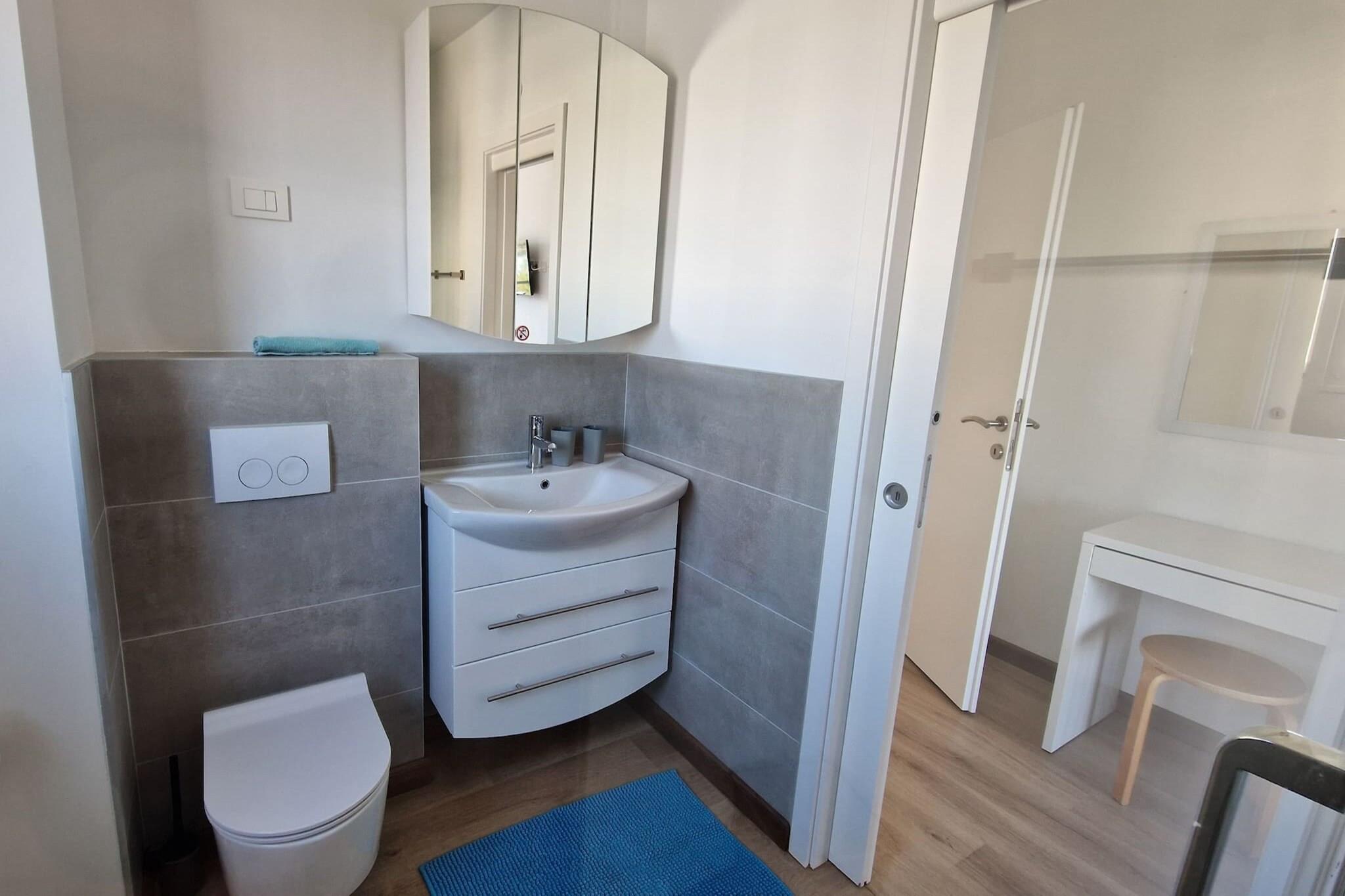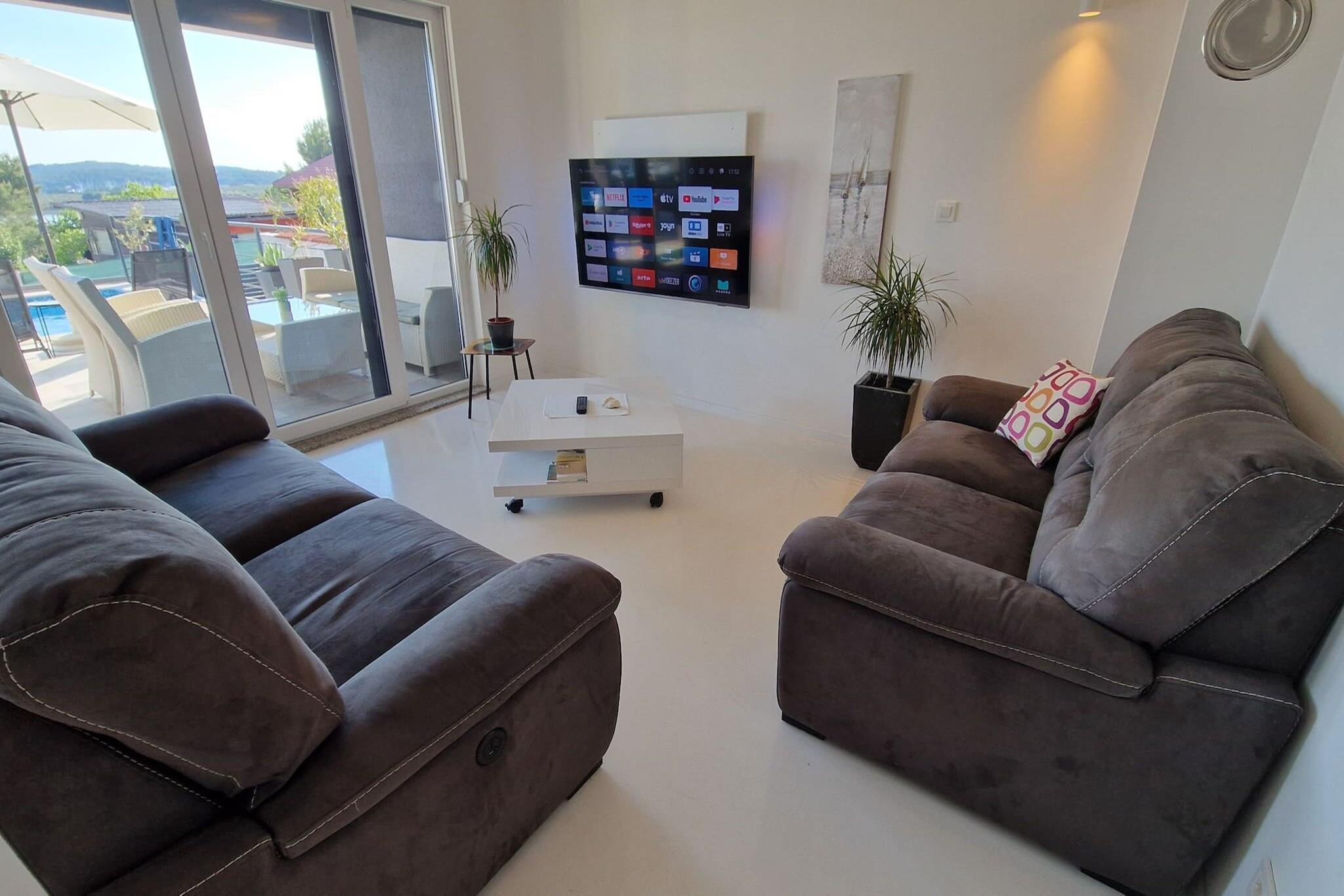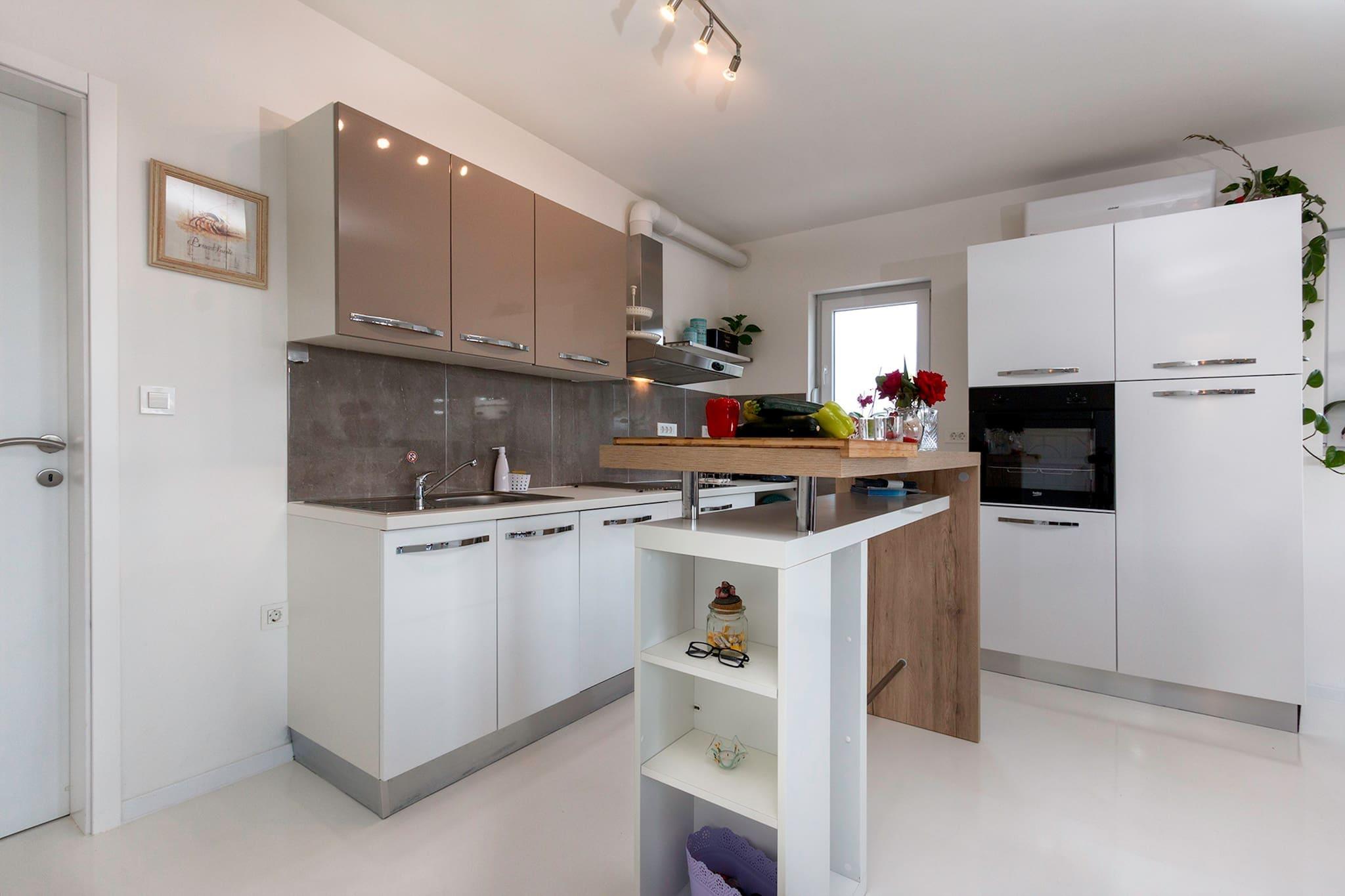 Oplev et idyllisk tilflugtssted med en førsteklasses beliggenhed i Pomer, hvor hvert værelse har en fantastisk havudsigt. Denne private indkvartering har tre rummelige soveværelser, der kan rumme op til seks gæster, hvor hvert soveværelse tilbyder eget badeværelse, et tv og aircondition til din komfort. Det fuldt udstyrede køkken og den indbydende stue skaber de perfekte rammer for at slappe af og nyde kvalitetstid sammen. Udenfor kan gæsterne sole sig ved swimmingpoolen, som kan opvarmes mod et tillægsgebyr, hvilket sikrer en luksuriøs oplevelse under dit ophold. Børn vil elske at have det sjovt på trampolinen, hvilket gør det til et fantastisk sted for familier at slappe af. Der kræves et skadesdepositum ved ankomsten, som refunderes fuldt ud ved kassen, så længe alt er i orden. Pomer ligger på Medulin-rivieraen og kan prale af en rig historie som en fiskerby, der er forvandlet til et knudepunkt for marina og nautisk turisme. Området byder på en fredelig atmosfære, samtidig med at det byder på væsentlige faciliteter såsom supermarkeder, bagerier, restauranter, barer og endda et apotek, alt sammen inden for 10 minutters gang. Den nærmeste strand ligger kun 400 meter væk, mens større supermarkeder er omkring 800 meter væk, og den nærmeste restaurant er 1,5 kilometer væk, hvilket sikrer, at du har alt hvad du behøver til en afslappende ferie.