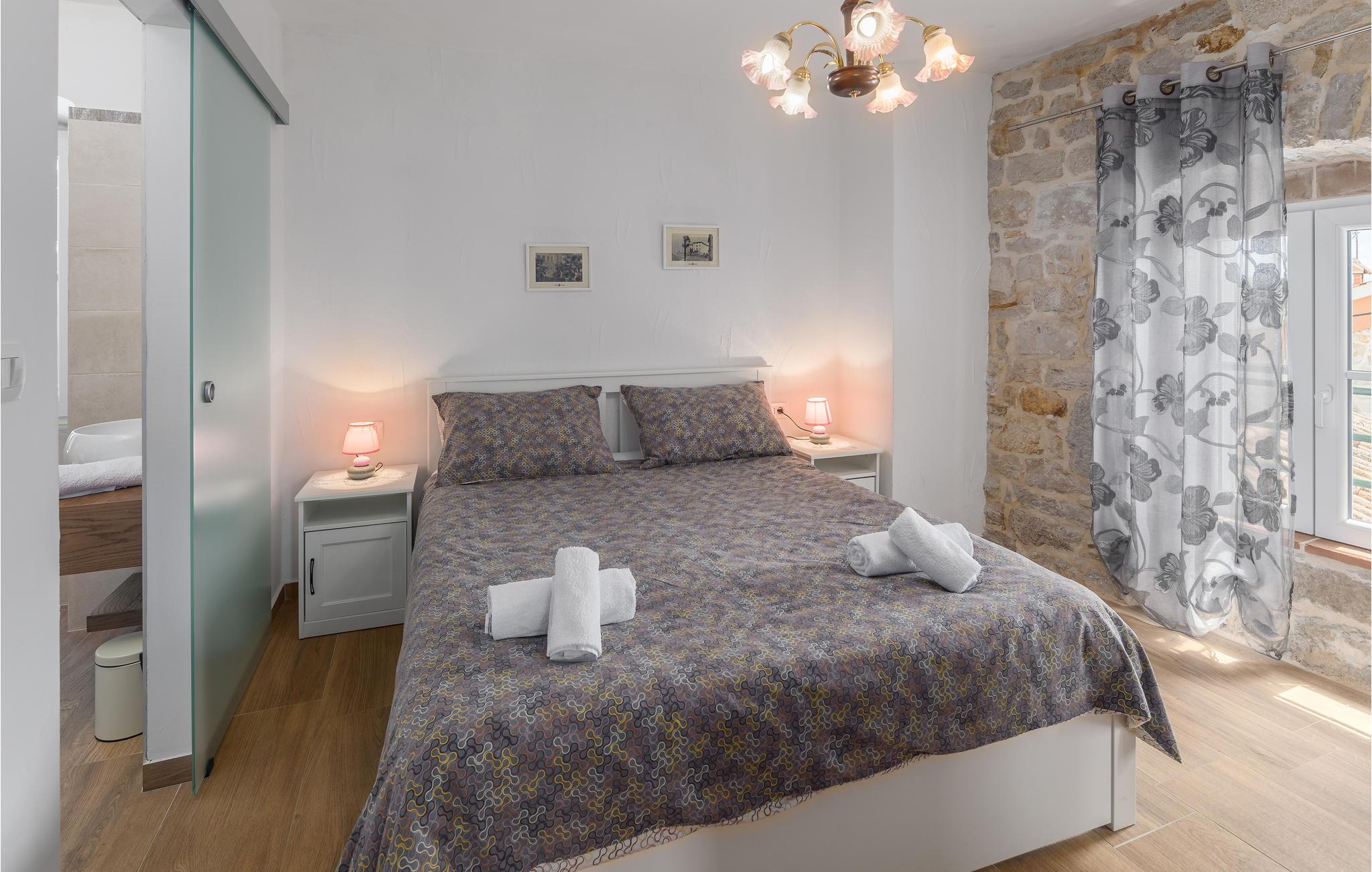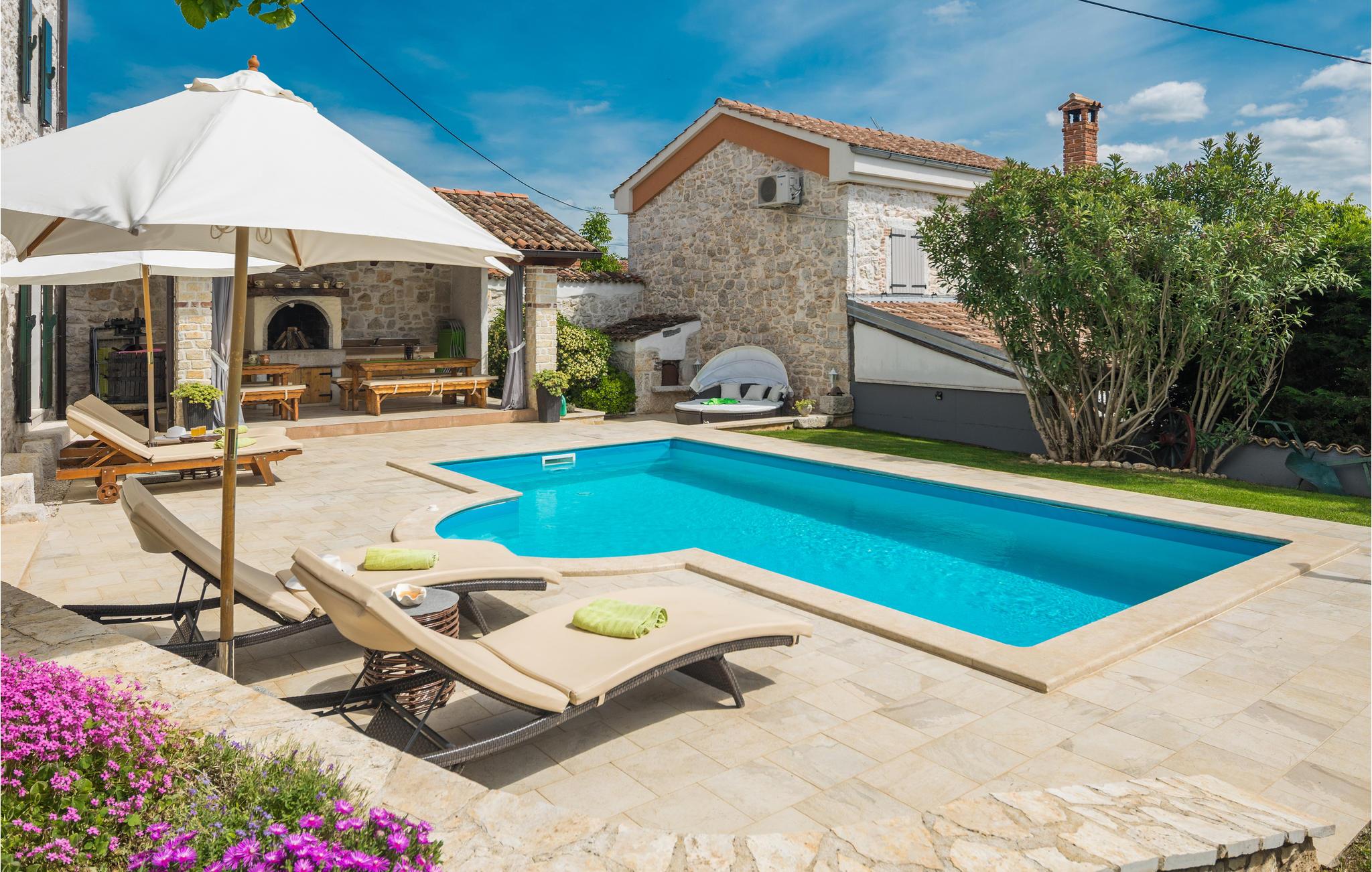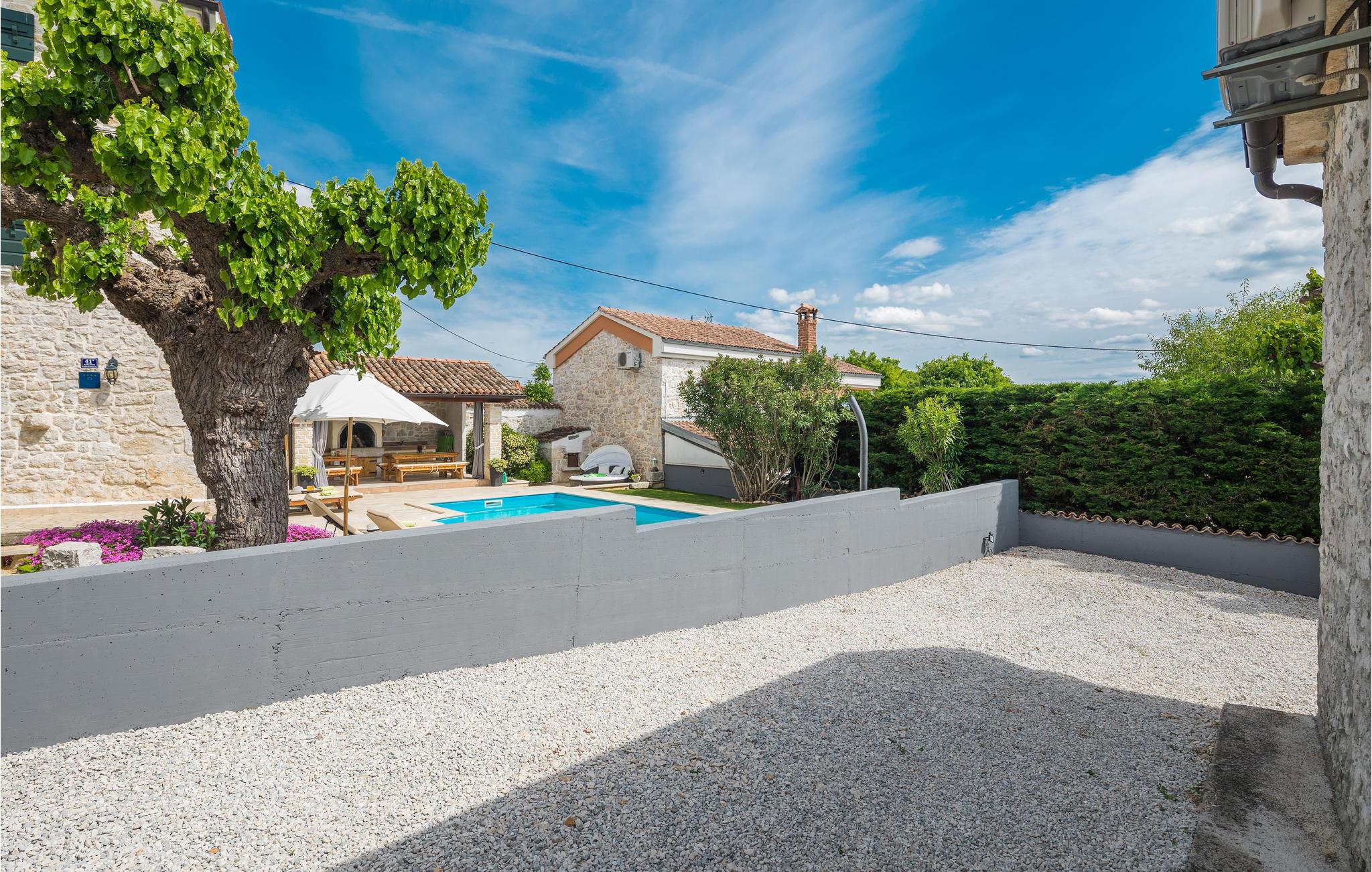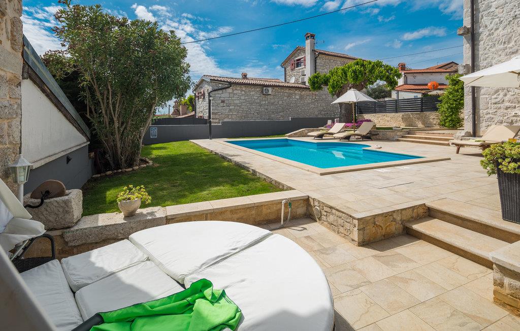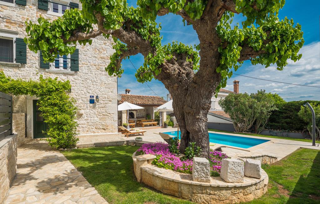 Glæd dig til en uforglemmelig ferie i dette attraktive feriehus med pool. Føl dig godt tilpas i det rummelige, historiske hus, som byder dig velkommen på en idyllisk beliggenhed og med sine tiltalende værelser med rustik charme tilbyder de ideelle rammer for en afslappende ferie. Upudset murværk og synlige loftsbjælker giver huset dens rustikke karakter, indretningen er moderne og smagfuld. Her kan I nyde dagene sammen i fulde drag. Efter en skøn dag kan du slå dig ned i sofaen, hvor I kan sidde behageligt sammen i lang tid. Ferieafslapningen sætter ind senest, mens du nyder solen ved poolen og lader hverdagens stress og jag lægge bag dig. Afslut dagen med et lækkert måltid al fresco på en lun sommeraften. En kort køretur tager dig til havet, hvis du har lyst til en dag på stranden. I Porec kan du slentre langs brostenene i Decumanus, hovedgaden, der førte fra Frihedspladsen til den gamle bydel allerede i romertiden. Beundre Eufrasiusbasilikaen med de berømte gulvmosaikker og besøg det lokalhistoriske museum eller et af de mange kunstgallerier. Alle familiemedlemmer får for pengene på ferie i dette skønne feriehus.