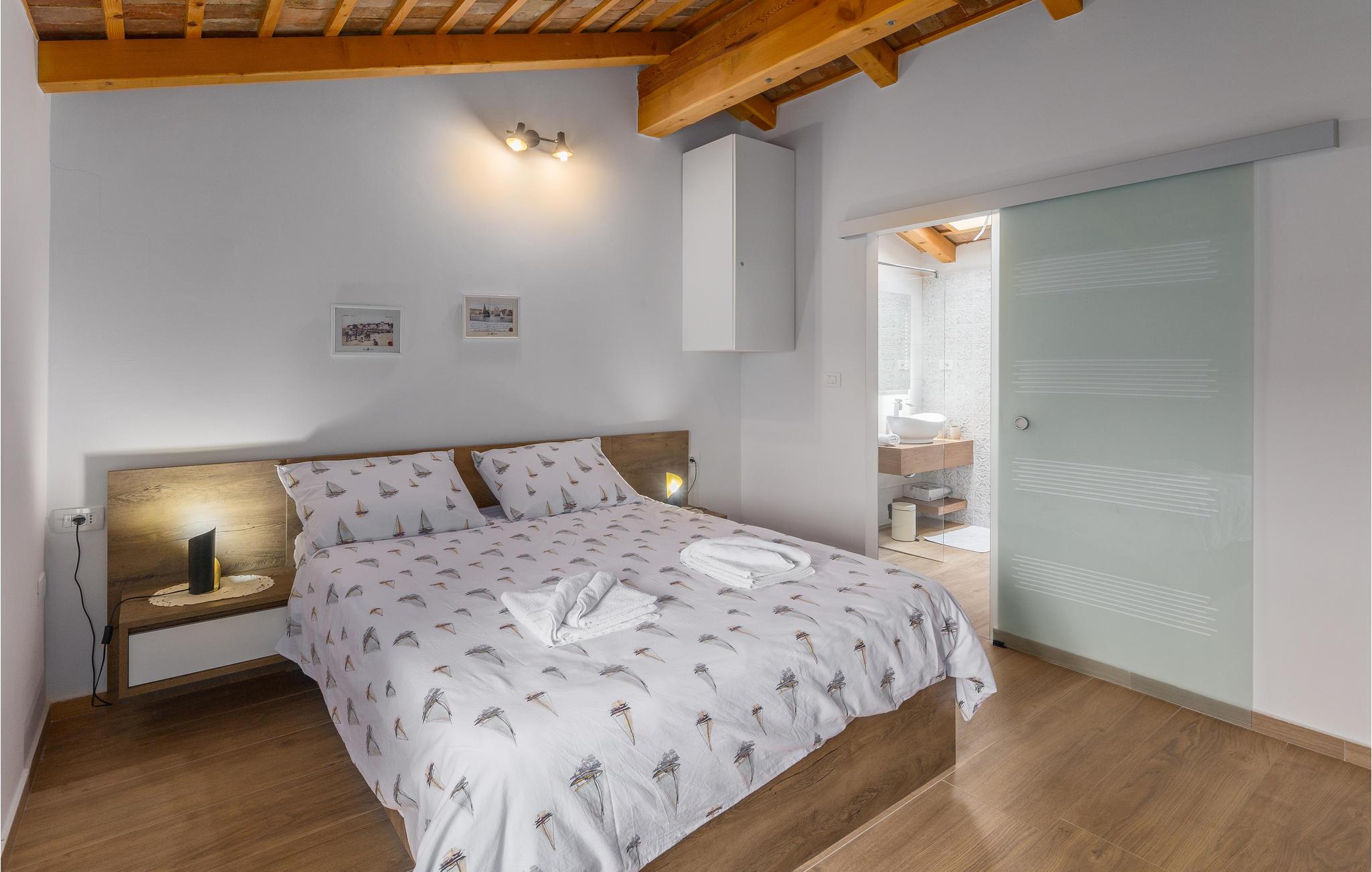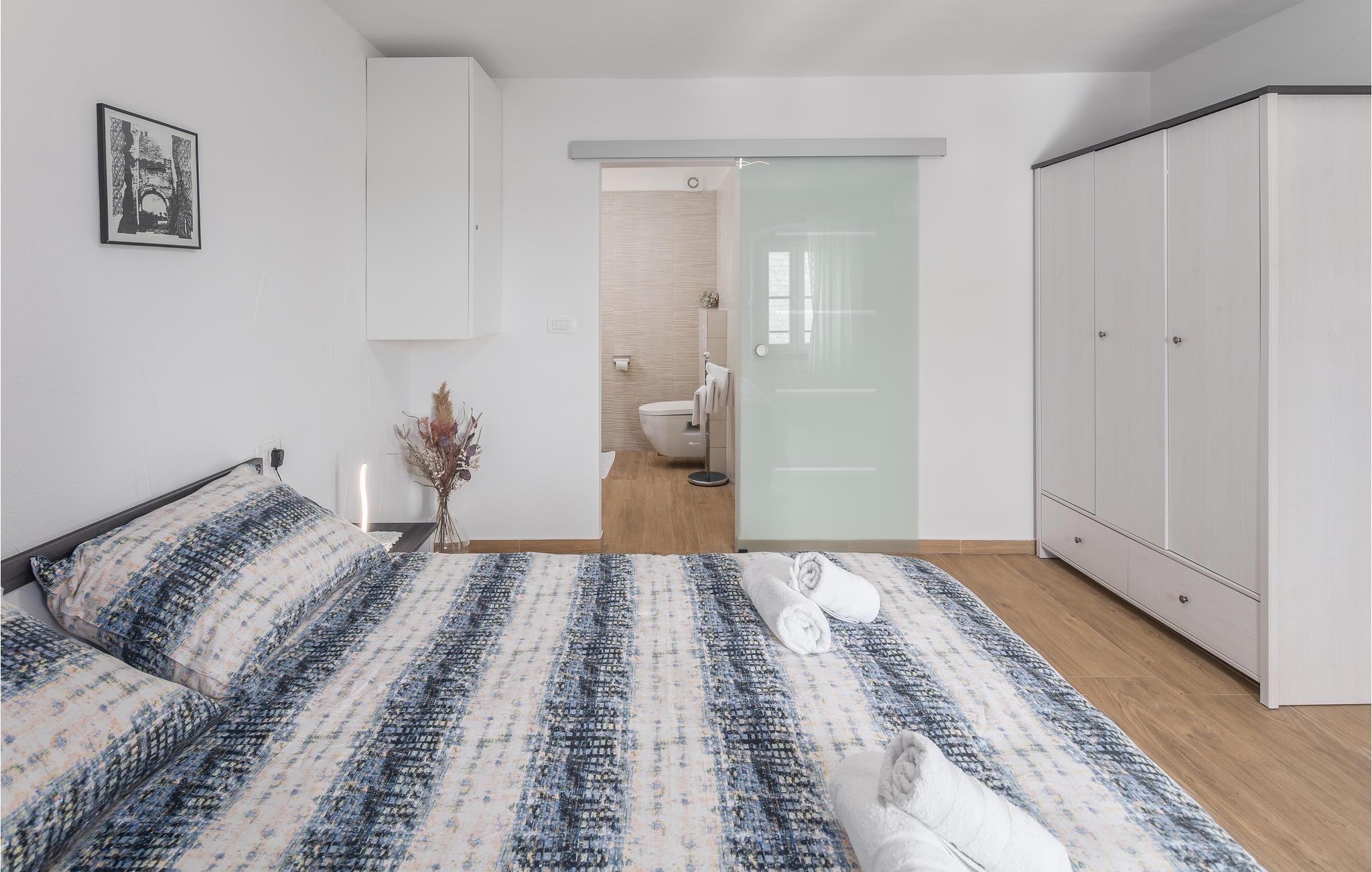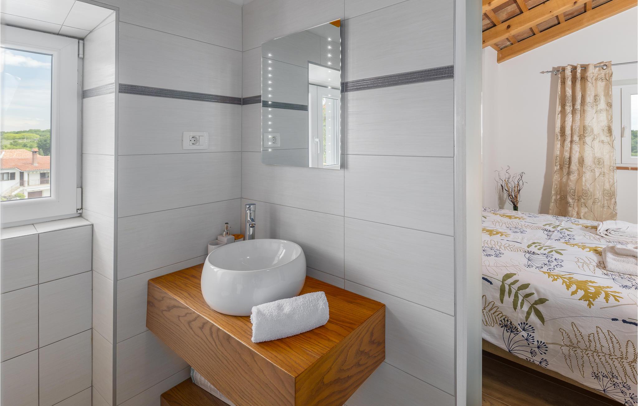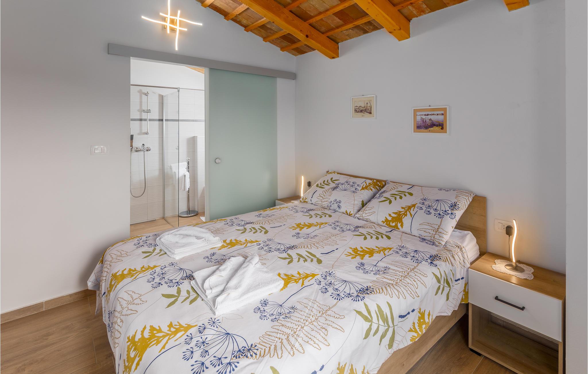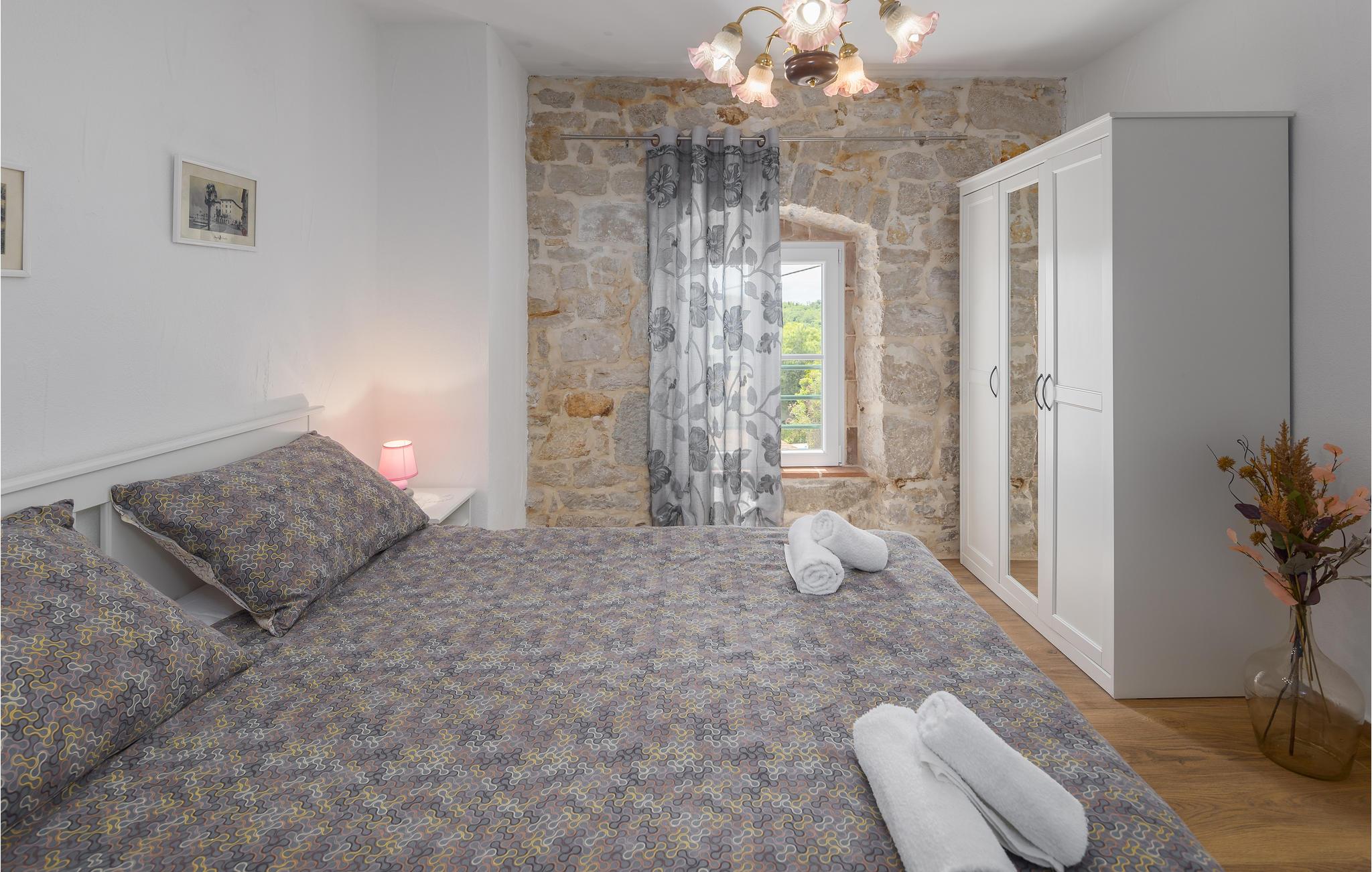 Glæd dig til en uforglemmelig ferie i dette attraktive feriehus med pool. Føl dig godt tilpas i det rummelige, historiske hus, som byder dig velkommen på en idyllisk beliggenhed og med sine tiltalende værelser med rustik charme tilbyder de ideelle rammer for en afslappende ferie. Upudset murværk og synlige loftsbjælker giver huset dens rustikke karakter, indretningen er moderne og smagfuld. Her kan I nyde dagene sammen i fulde drag. Efter en skøn dag kan du slå dig ned i sofaen, hvor I kan sidde behageligt sammen i lang tid. Ferieafslapningen sætter ind senest, mens du nyder solen ved poolen og lader hverdagens stress og jag lægge bag dig. Afslut dagen med et lækkert måltid al fresco på en lun sommeraften. En kort køretur tager dig til havet, hvis du har lyst til en dag på stranden. I Porec kan du slentre langs brostenene i Decumanus, hovedgaden, der førte fra Frihedspladsen til den gamle bydel allerede i romertiden. Beundre Eufrasiusbasilikaen med de berømte gulvmosaikker og besøg det lokalhistoriske museum eller et af de mange kunstgallerier. Alle familiemedlemmer får for pengene på ferie i dette skønne feriehus.