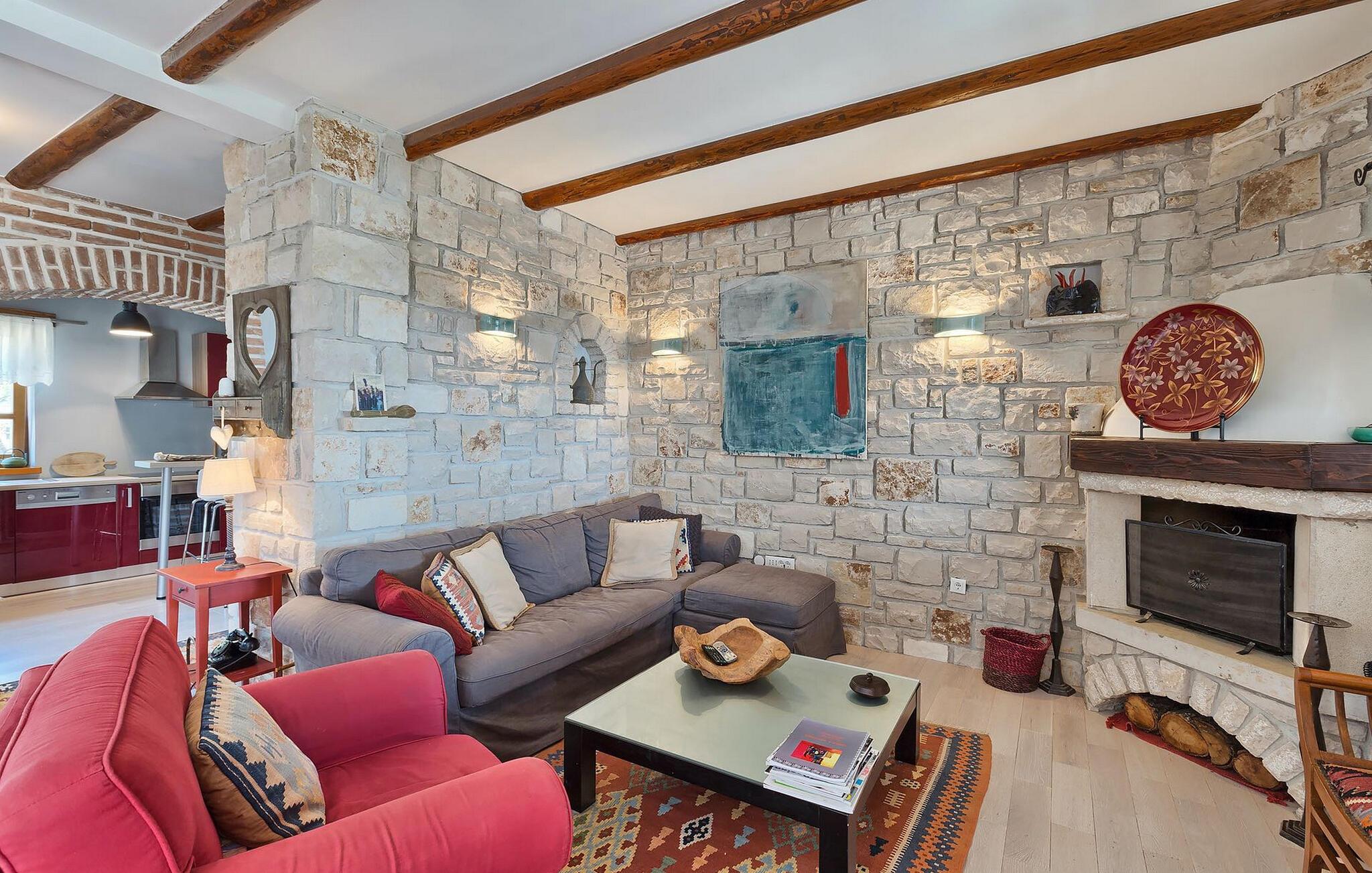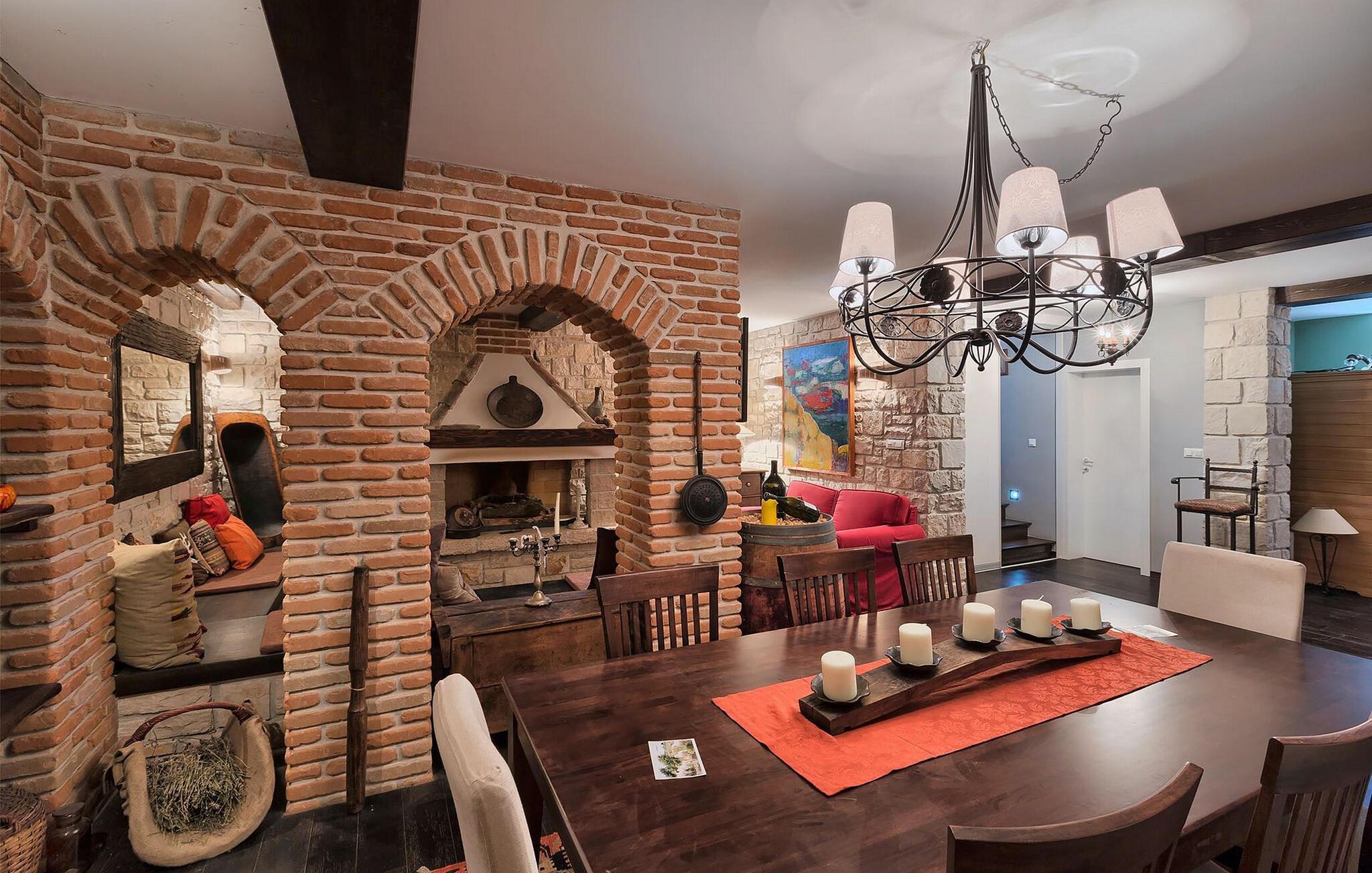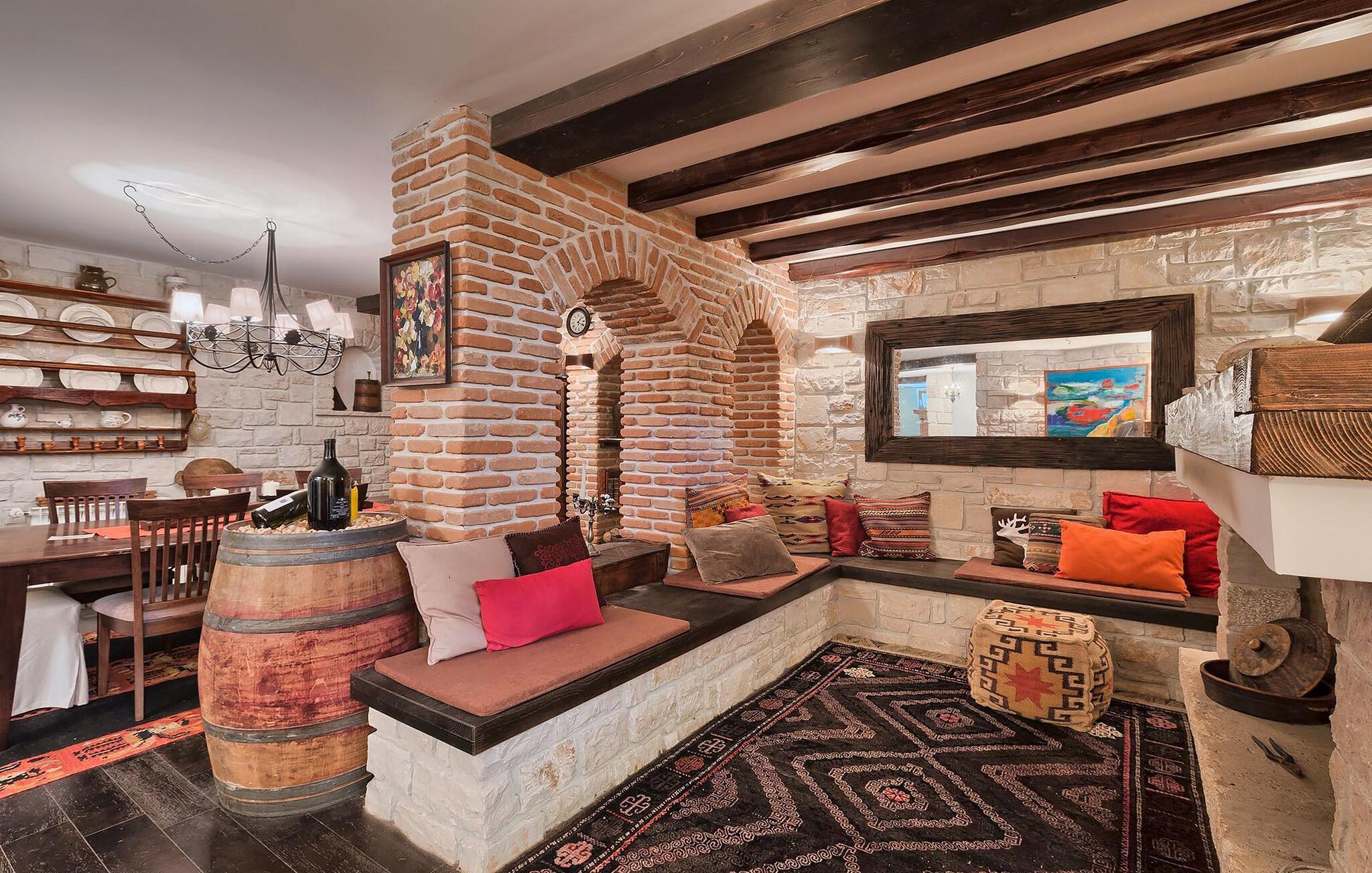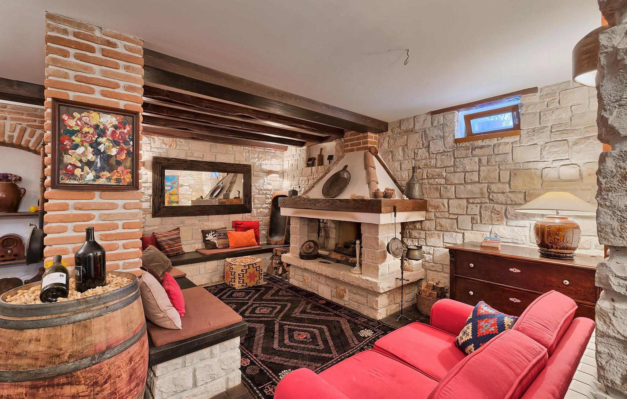 Dette karakterfulde hus kombinerer rustik charme med hyggelige detaljer: naturstensvægge, træbjælker og møbler i landlig stil skaber en varm atmosfære. Tilbring afslappende timer ved pejsen i stuen eller afslut aftenen med et glas vin. Det fuldt udstyrede køkken lægger op til at lave mad sammen, og spisestuens imponerende pejs er det perfekte sted at nyde et vidunderligt måltid i hyggeligt selskab.