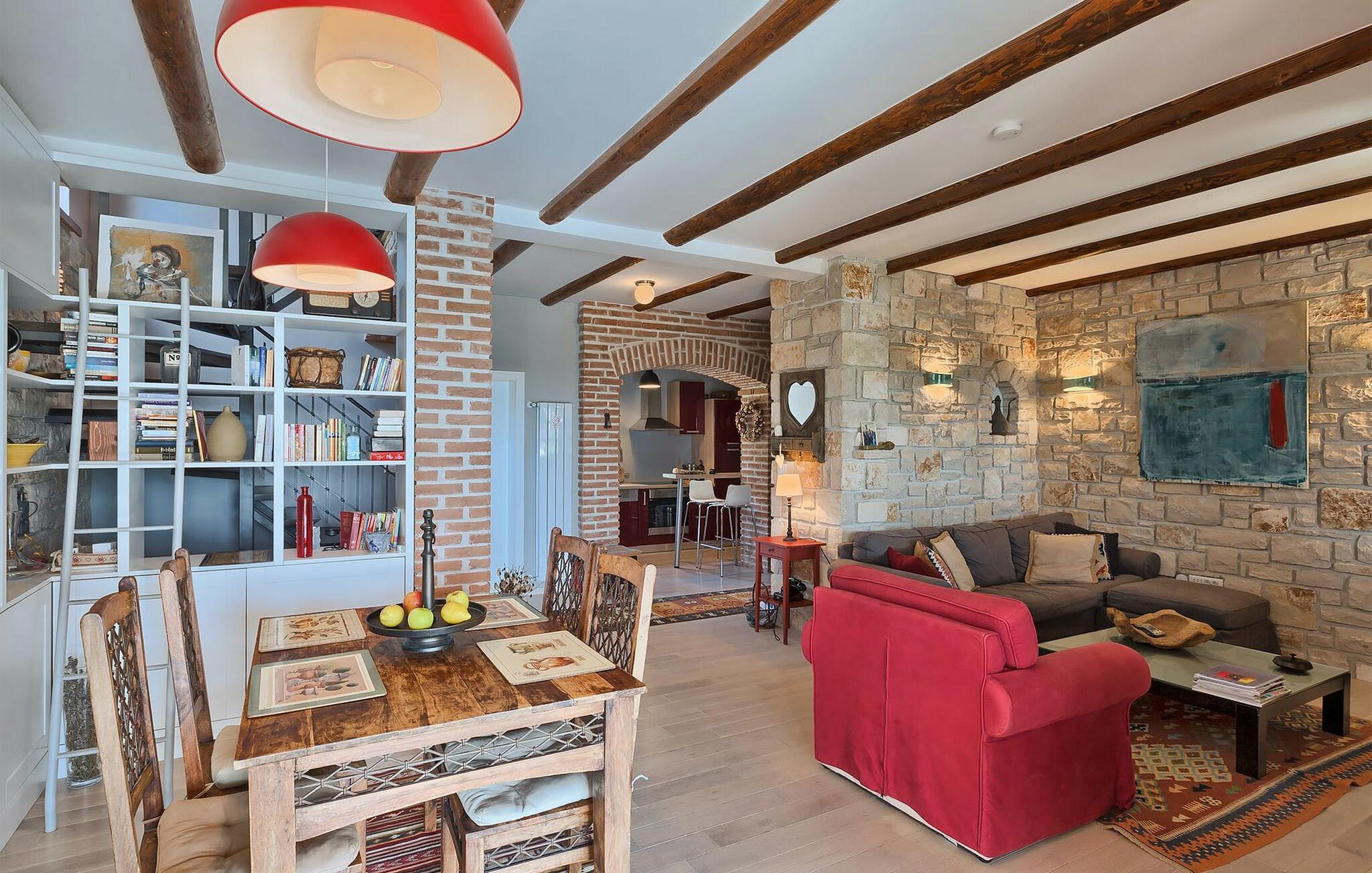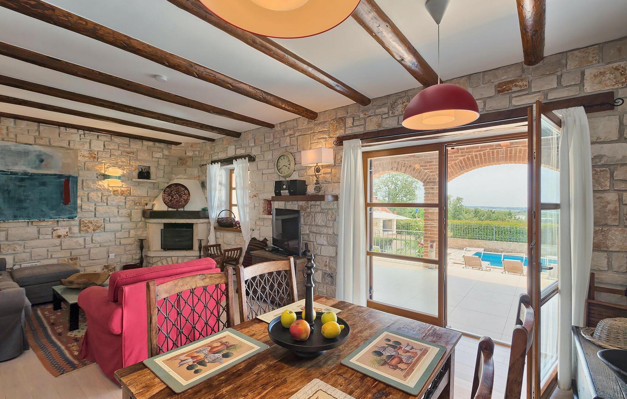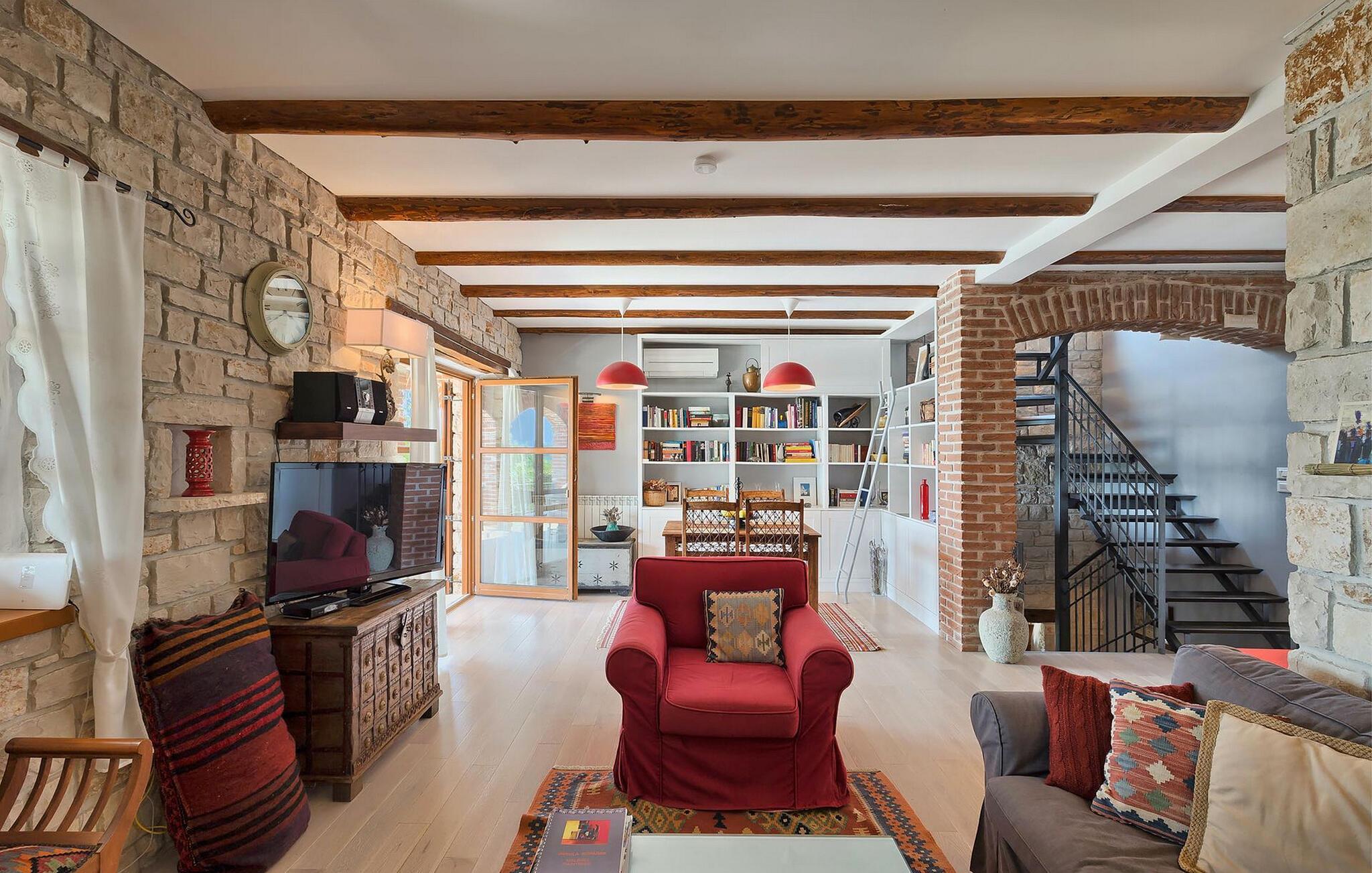 Dette karakterfulde hus kombinerer rustik charme med hyggelige detaljer: naturstensvægge, træbjælker og møbler i landlig stil skaber en varm atmosfære. Tilbring afslappende timer ved pejsen i stuen eller afslut aftenen med et glas vin. Det fuldt udstyrede køkken lægger op til at lave mad sammen, og spisestuens imponerende pejs er det perfekte sted at nyde et vidunderligt måltid i hyggeligt selskab.