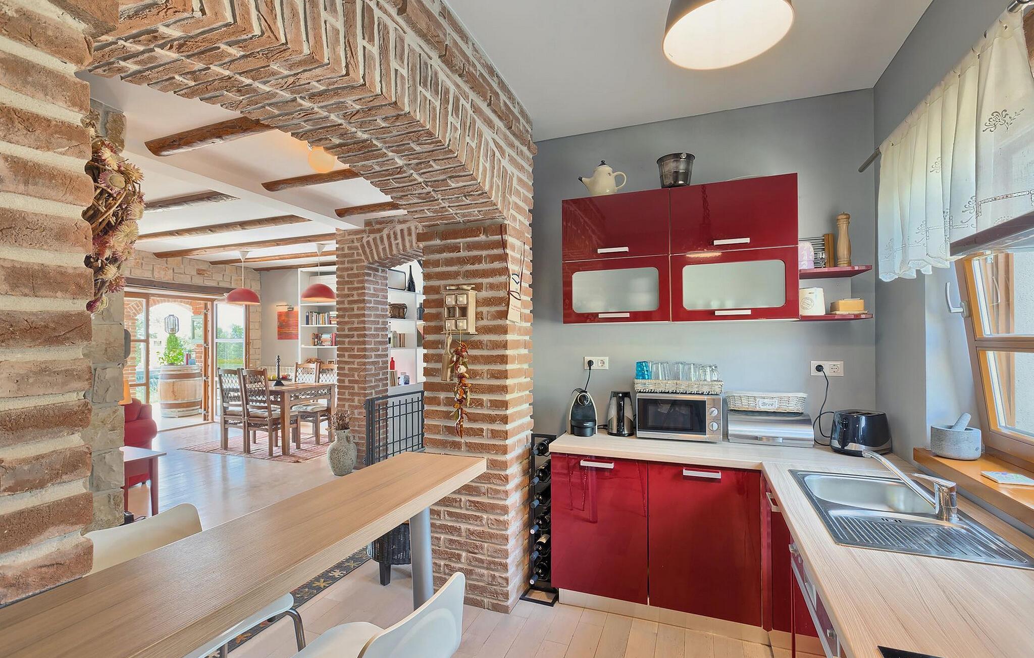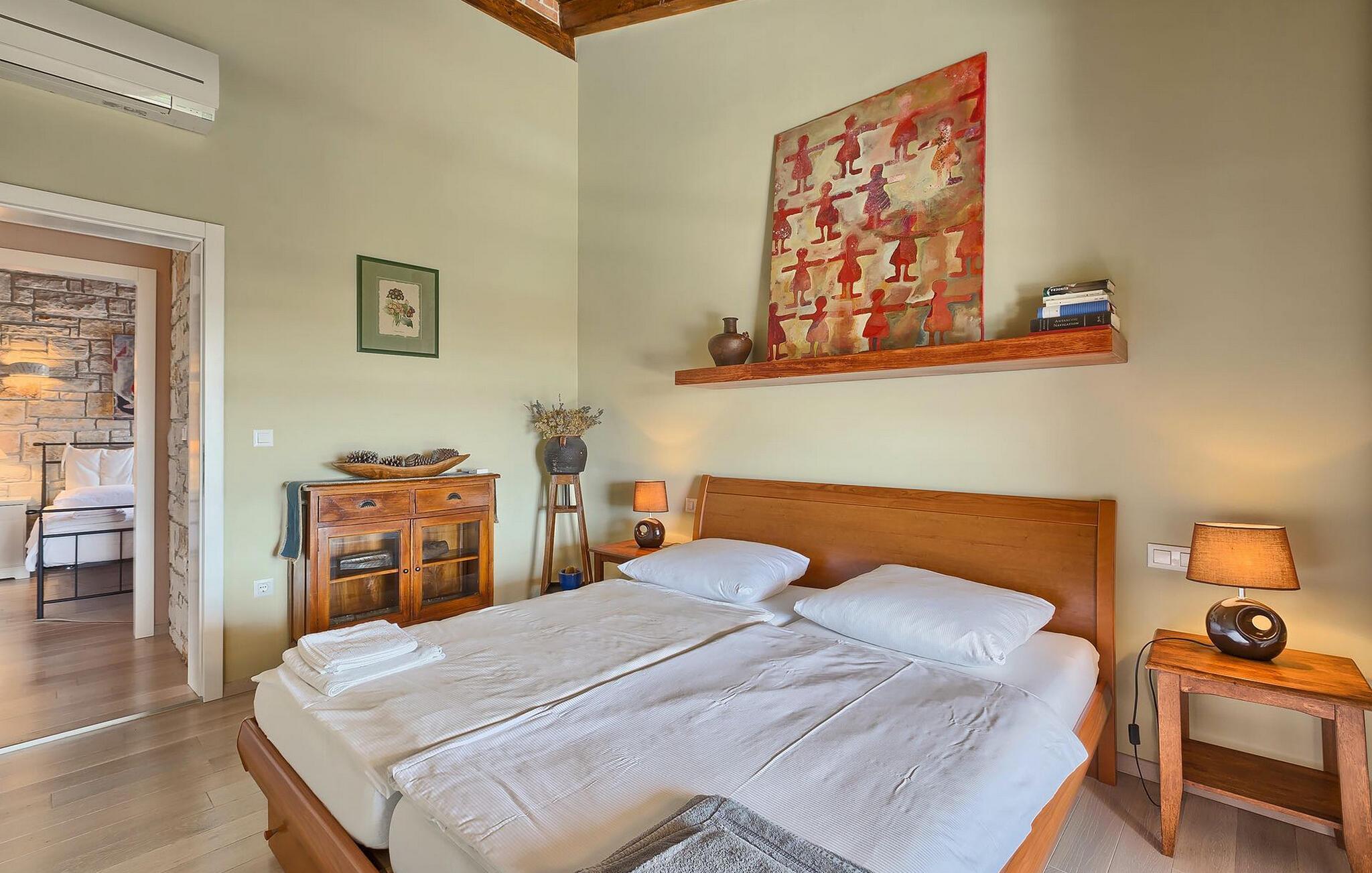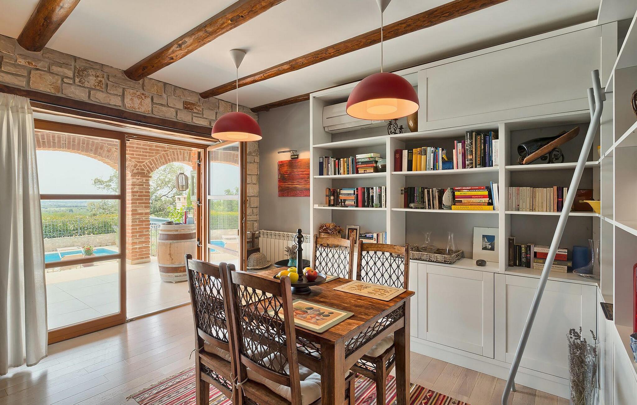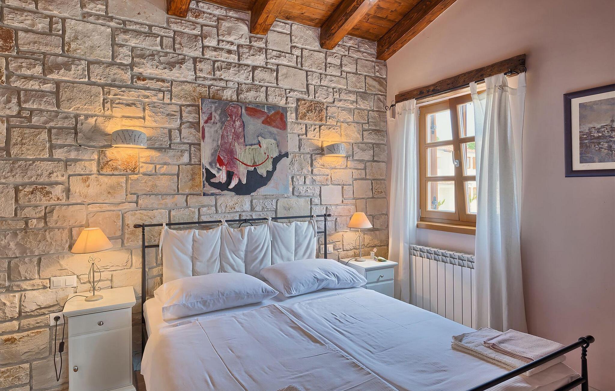Dette karakterfulde hus kombinerer rustik charme med hyggelige detaljer: naturstensvægge, træbjælker og møbler i landlig stil skaber en varm atmosfære. Tilbring afslappende timer ved pejsen i stuen eller afslut aftenen med et glas vin. Det fuldt udstyrede køkken lægger op til at lave mad sammen, og spisestuens imponerende pejs er det perfekte sted at nyde et vidunderligt måltid i hyggeligt selskab.