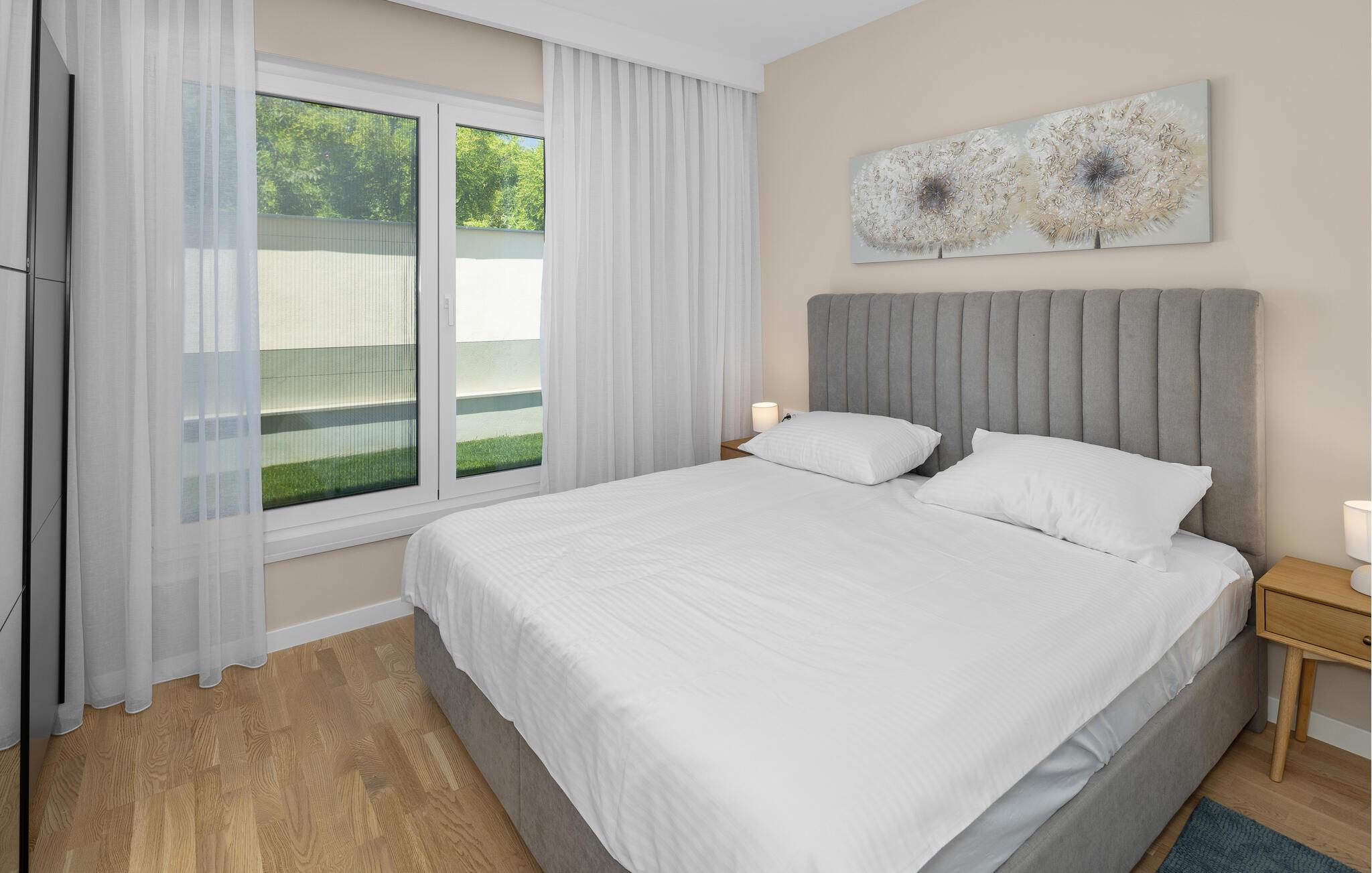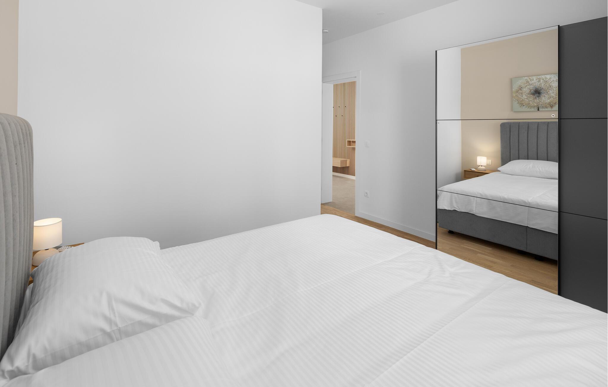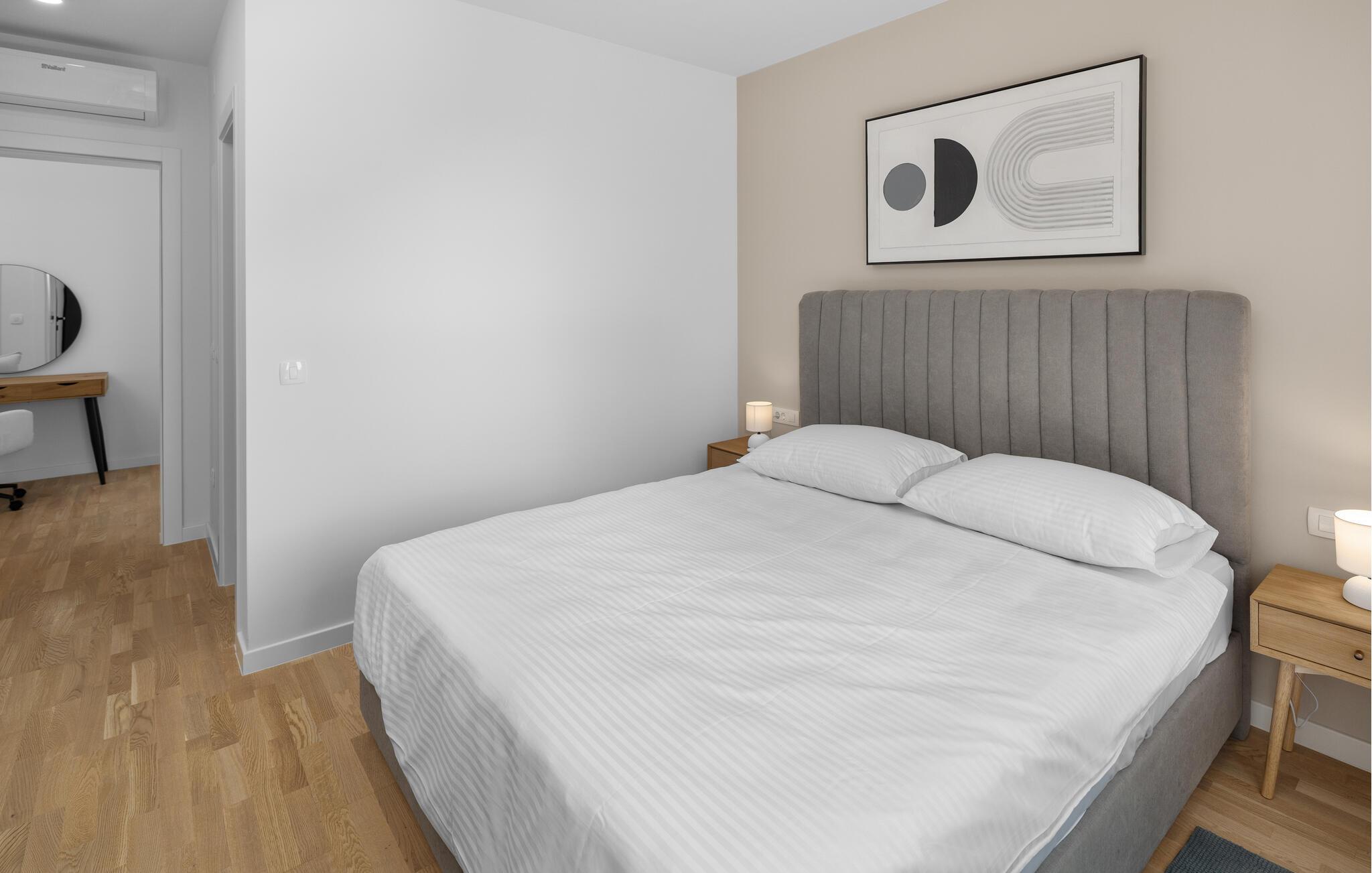 Lad jer betage af den moderne og stilfulde atmosfære i denne rummelige lejlighed, hvor udvalgte designermøbler skaber en behagelig opholdsatmosfære. Alt her er designet til jeres velbefindende – nyd hyggelige madlavningsaftener i det åbne køkken og hyggelige måltider i den hyggelige opholdsstue. Gør det behageligt i den hyggelige sofagruppe, og stream en spændende film.