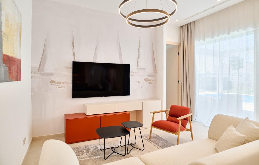 Træd udenfor og nyd luksusen ved den private pool, som er direkte tilgængelig fra terrassen. Læg jer på en af ??liggestolene og læn jer tilbage i solen. Brug det overdækkede område til den første kop kaffe om morgenen eller tilbring aftenen her med et glas vin. Smuk havudsigt venter jer på første sal.