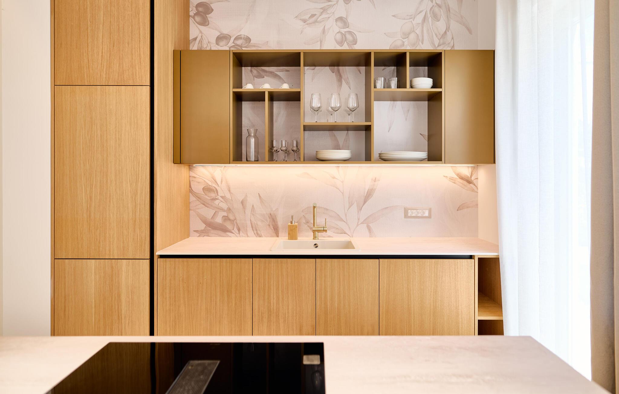 Interiøret lægger vægt på varme og funktionalitet, karakteriseret ved minimalistisk design og materialer af høj kvalitet. Læn jer tilbage i den åbne stue med en behagelig sofa, moderne møbler og store panoramavinduer. Brug den elegante spiseplads til fælles måltider eller tilbered kulinariske lækkerier i det smukke køkken.