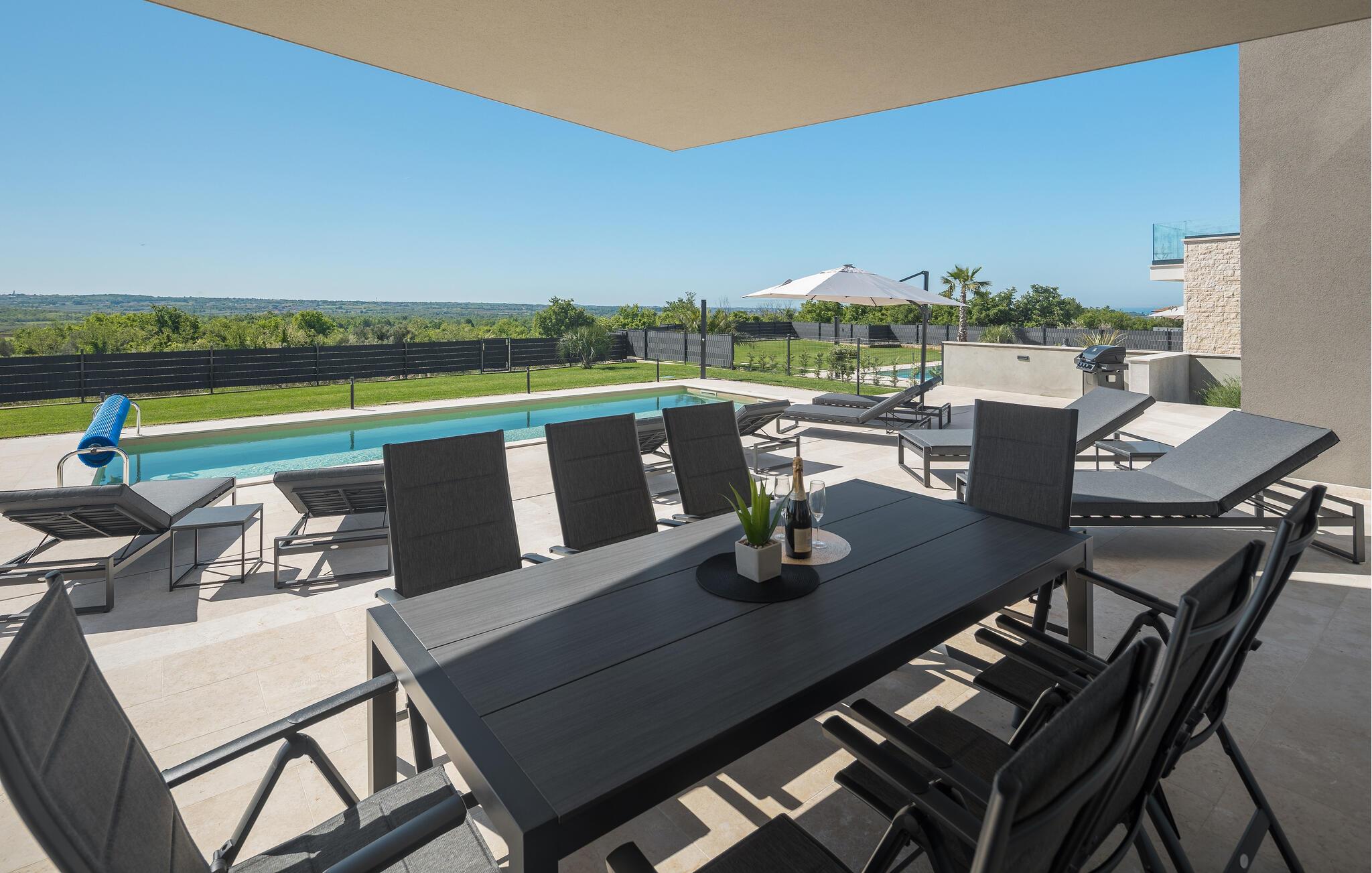 Udeområdet er vidunderligt. Her kan I begynde dagen med en god kop kaffe, suge den friske luft ned i lungerne og lade solen bage jer godt igennem inden dagens første dukkert i poolen. Fra tagterrassen har I en fremragende udsigt mod havet, som I kan nyde, mens I steger nogle lækre bøffer på grillen i den tidlige aftensol.