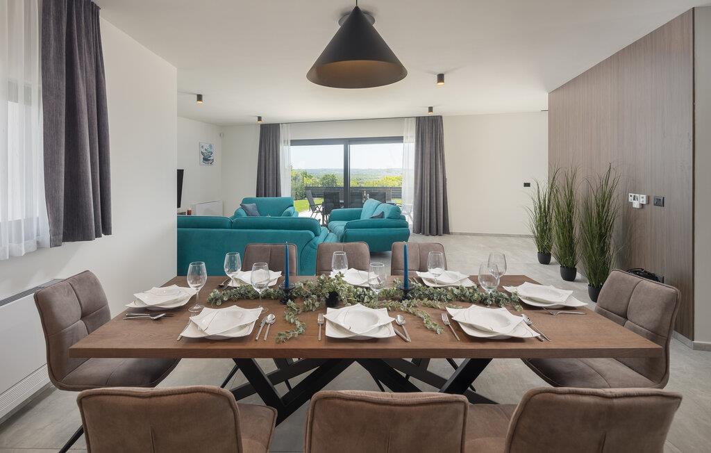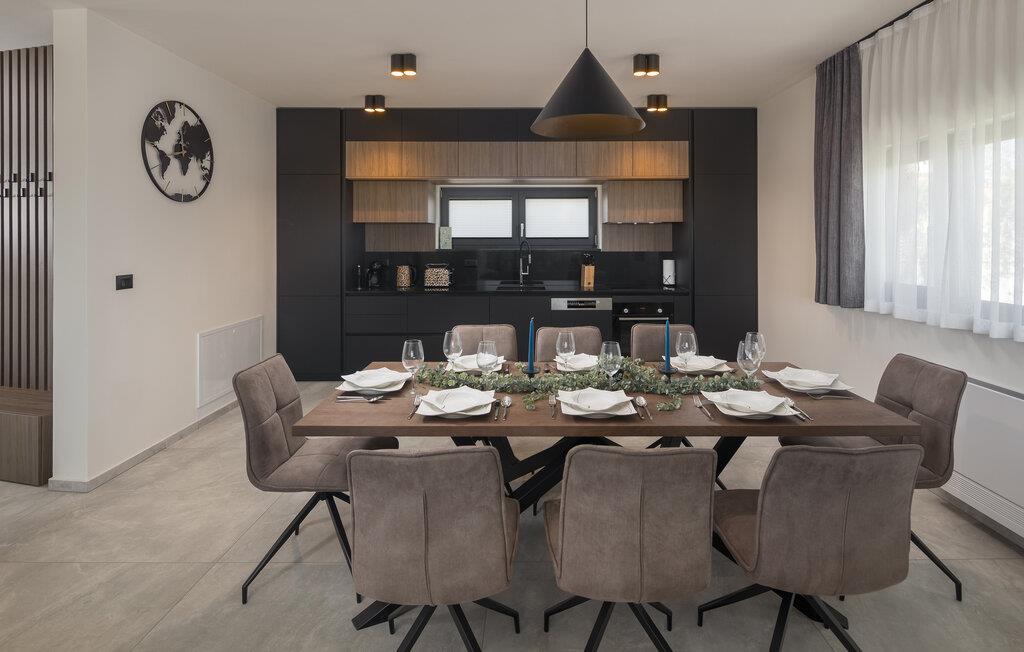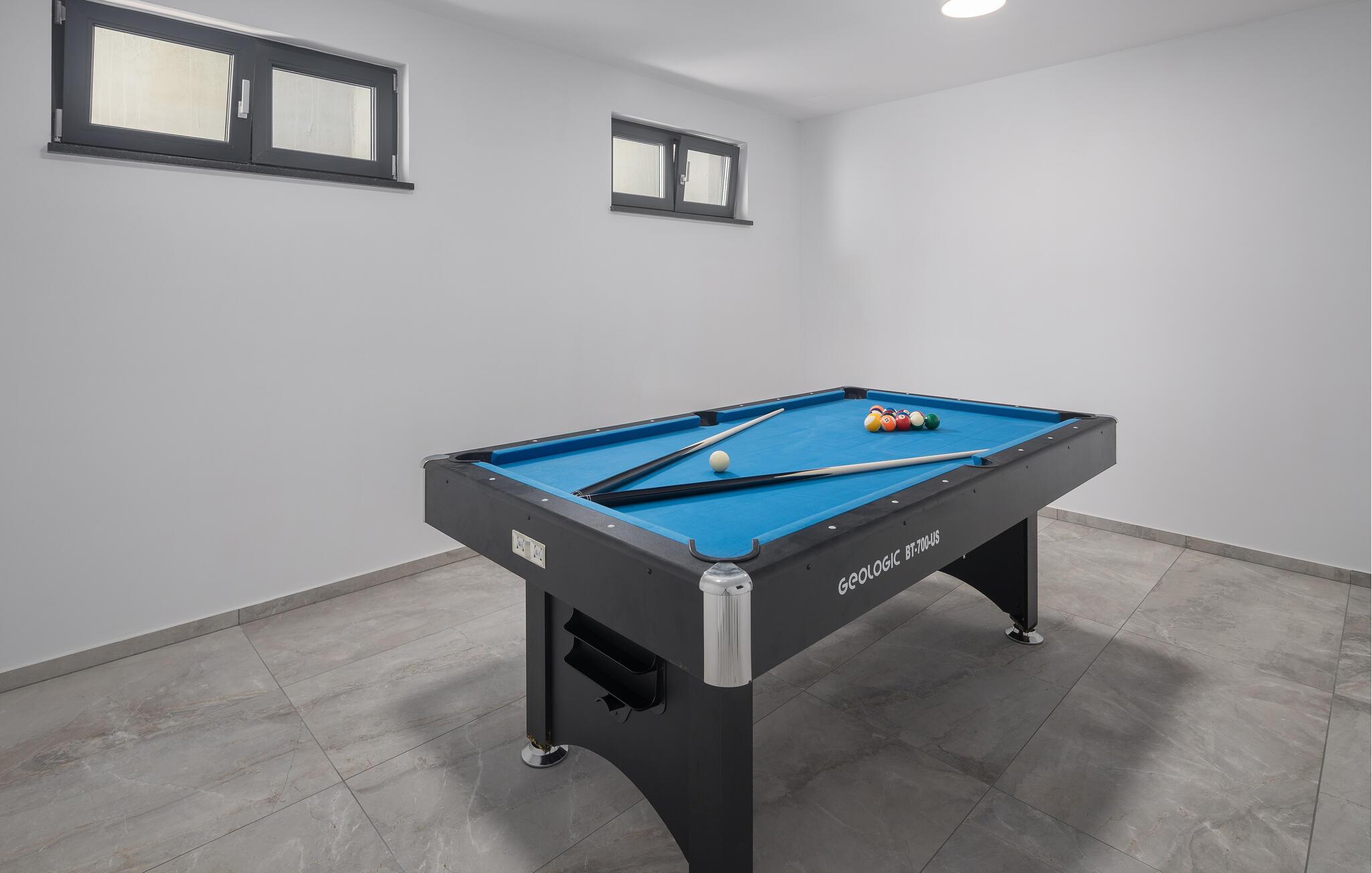 Velkommen til denne smagfulde og komfortable villa, hvor I får godt med plads og fremragende faciliteter til en ferie med den udvidede familie i rolige omgivelser. Indvendigt emmer det af kvalitet over hele linjen over to etager med et interiør, der fremtræder stilsikkert og elegant med sans for detaljen. Lad kokkene tage sig god tid med at tilberede livretterne i det veludstyrede køkken, mens andre daser i sofaen eller får et slag pool i aktivitetsrummet.