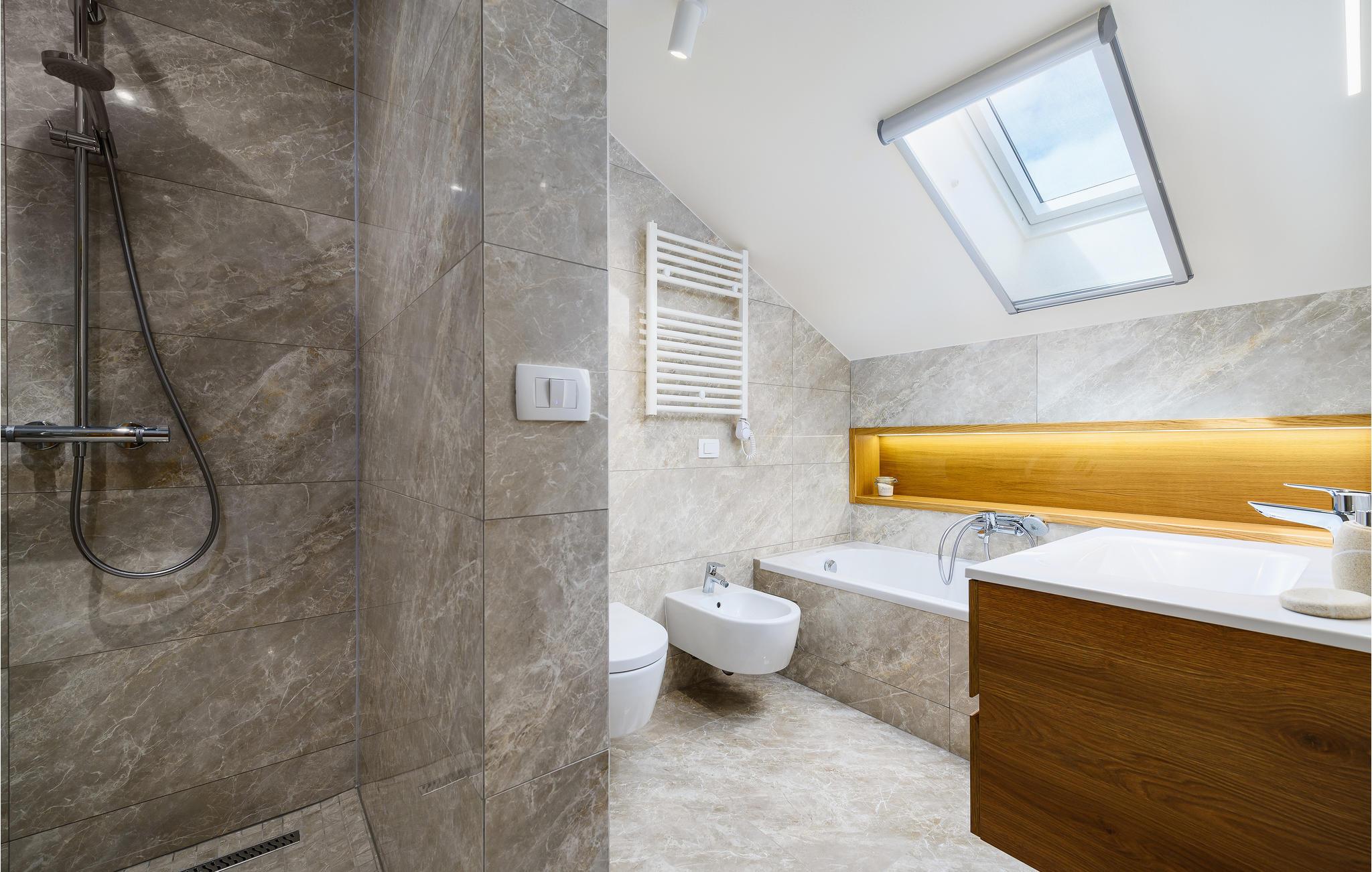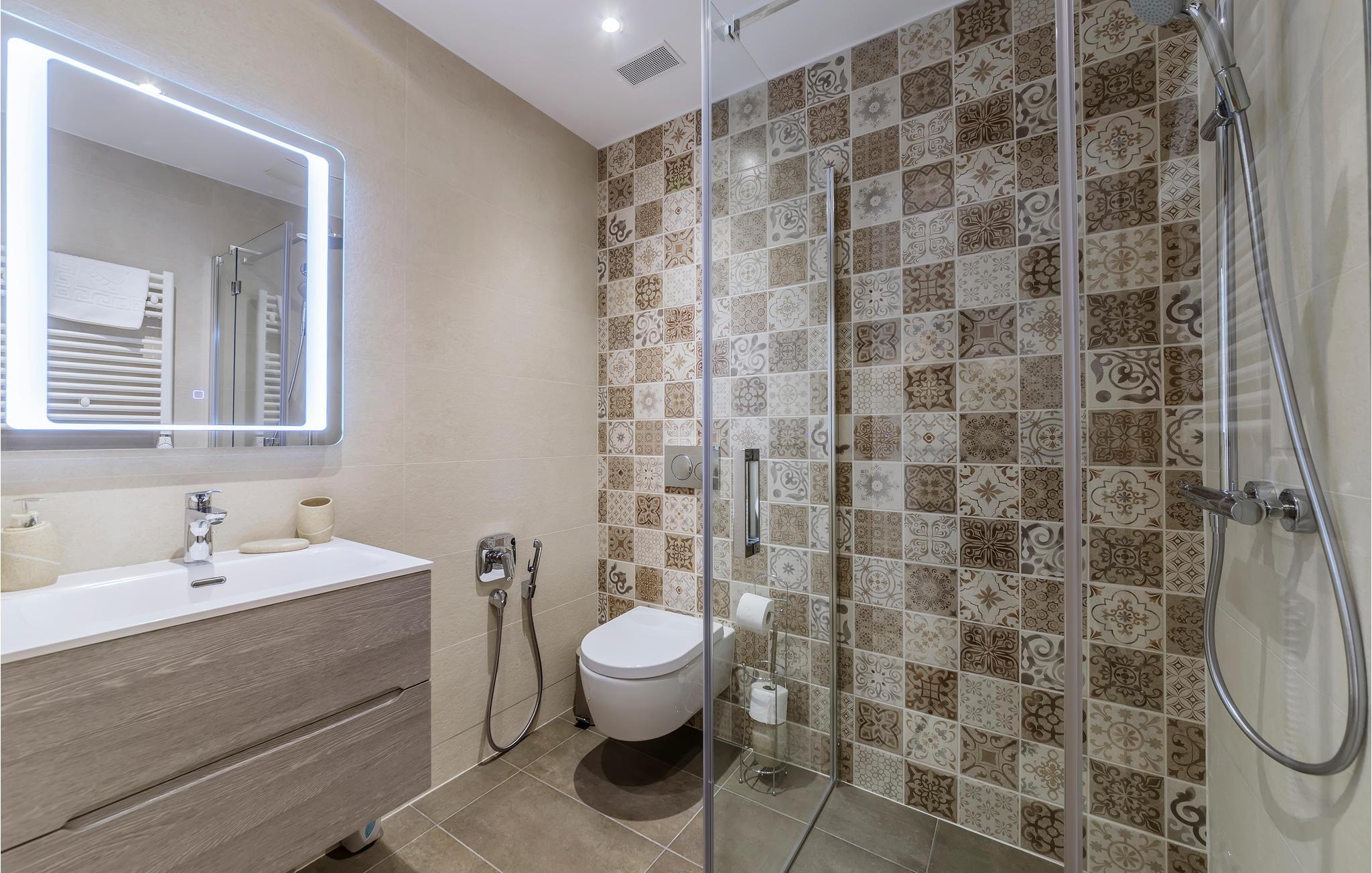 Badeværelse 6m2 (nr. 1) - WC. Varmt og koldt vand. Bruser og badekar