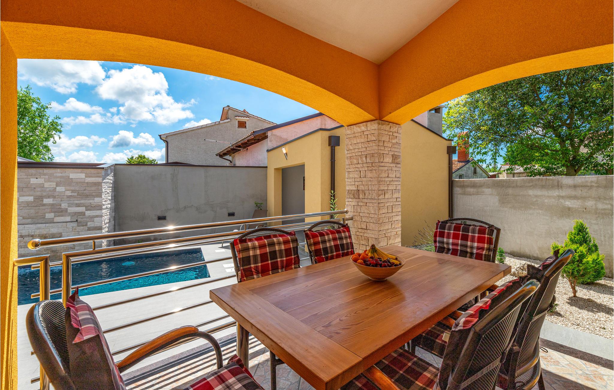 I den lille by Micetici, nær den større turistmetropol Porec, ligger dette skønne feriehus. Det er moderne indrettet til en afslappet og komfortabel ferie. I kan slappe af på naturgrunden og lave nem og lækker mad på husets grill af de gode råvarer som kan købes lige i nærheden. Den specielle pool med vandfald vil begejstre alle vandhund uanset alder. I løbet af sommerferien er det oplagt at tage på udflugt til kystbyerne Porec, Rovinj og Pula hvor der er mange former for sommerunderholdning. Her er også mange skønne spisesteder hvor I kan smage regionens lækre traditionelle retter og drikke landets gode vin til.