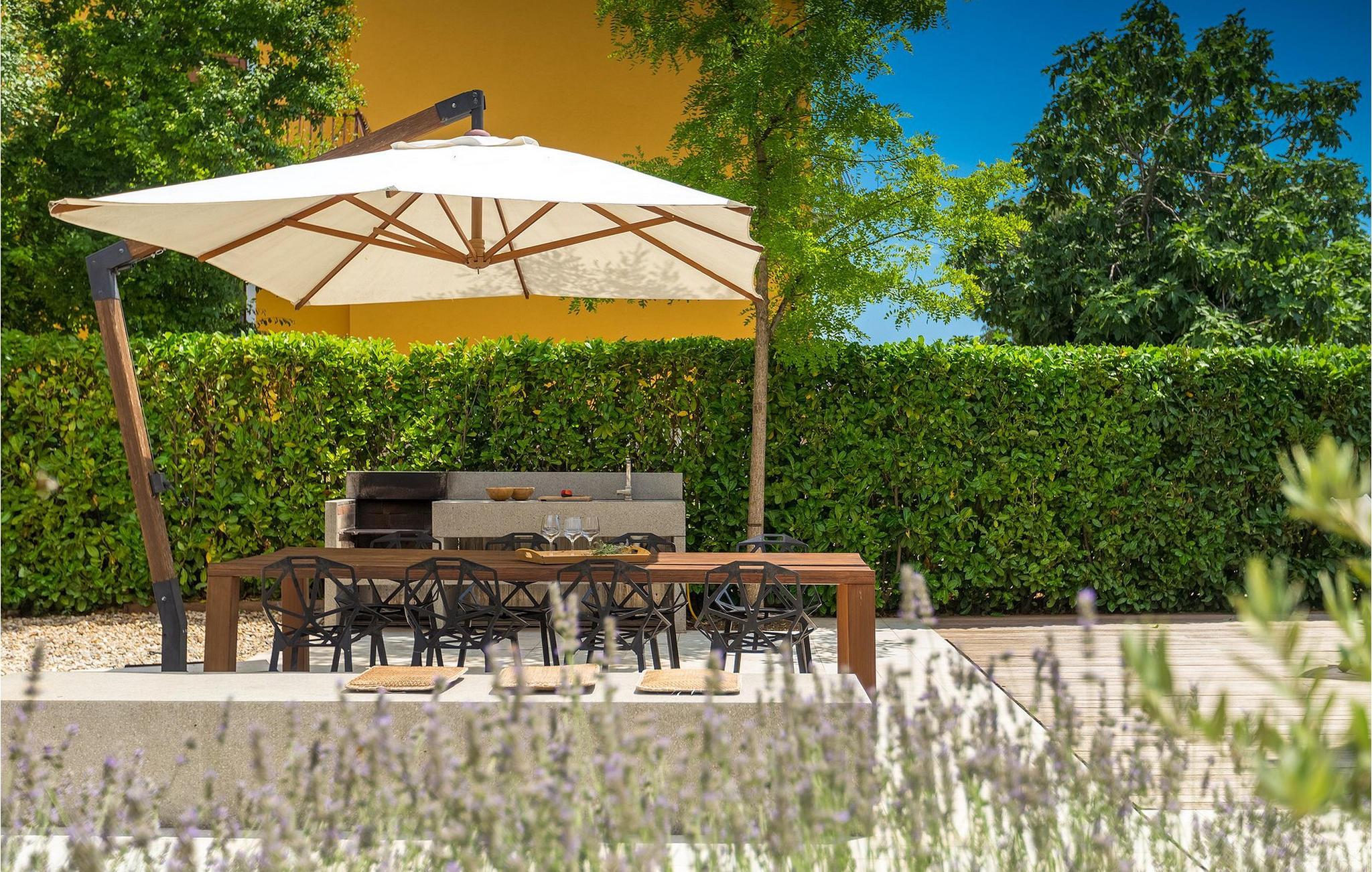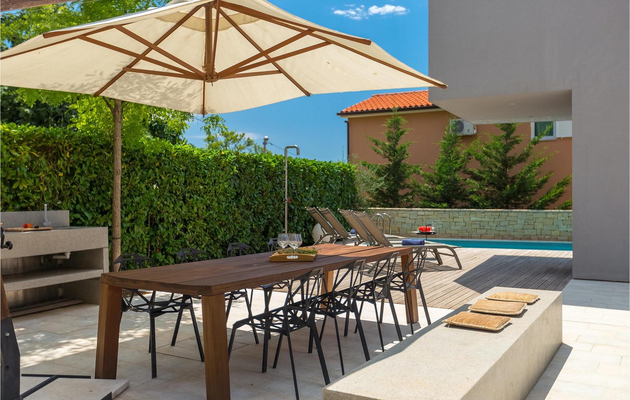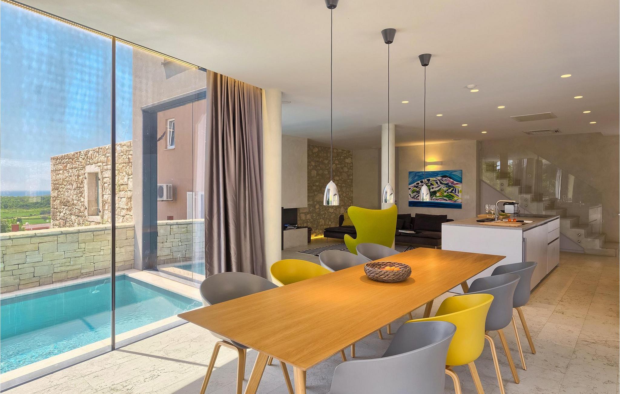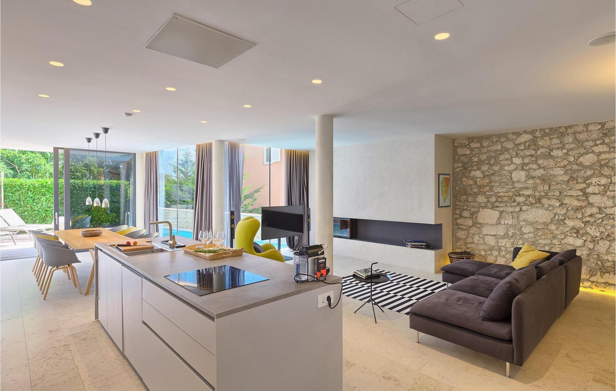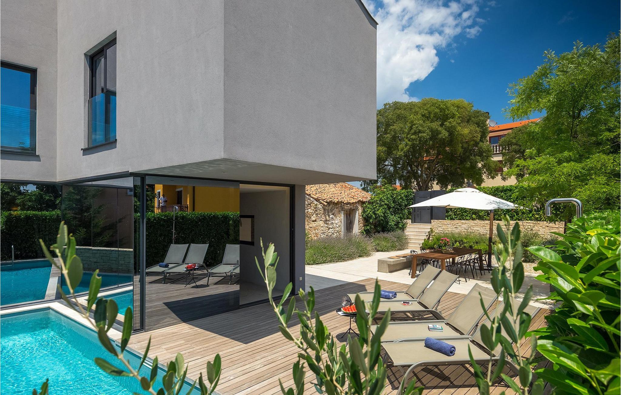 Villa Hello Sunshine er den perfekte villa for alle jer, der er til design og arkitektur. Det er en majestætisk moderne fortolkning af et perfekt feriehus, nedsænket i det traditionelle landskab. Hvis du ønsker at tilbringe en luksuriøs ferie i en stilfuldt indrettet moderne villa, så er dette det rigtige valg for dig. Der er fire soveværelser til din rådighed, samt tre badeværelser. Et særligt sted der er helt klart taget, hvor der er installeret et spabad. Her kan du tilbringe nogle romantiske aftener, nyde den betagende udsigt over Adriaterhavet, mens dufte fra middelhavsurtehaven afslapper dine sanser.