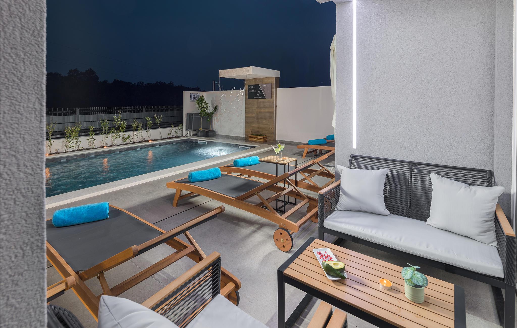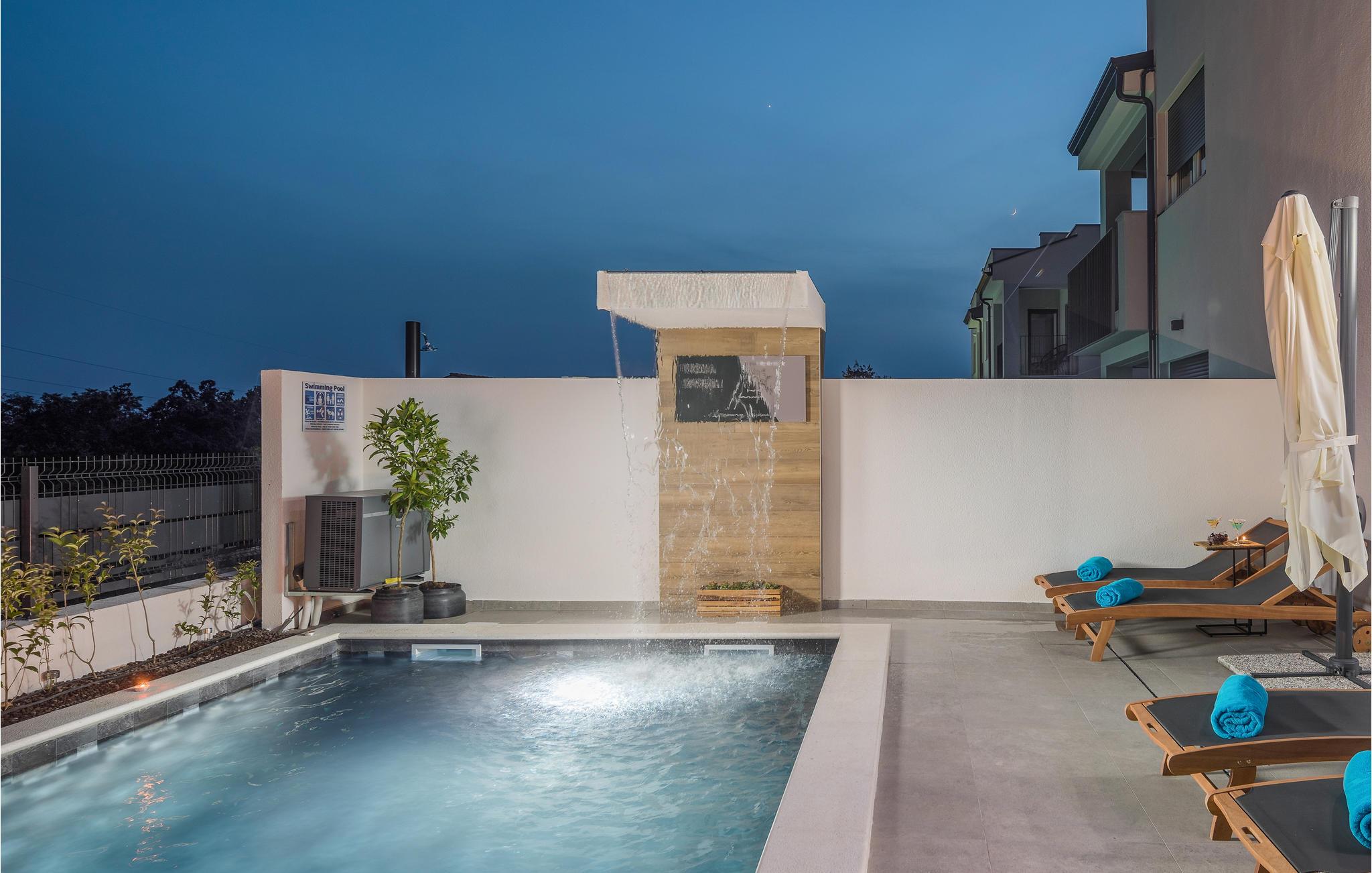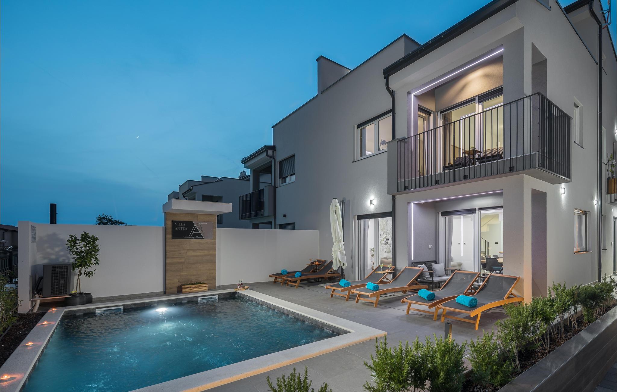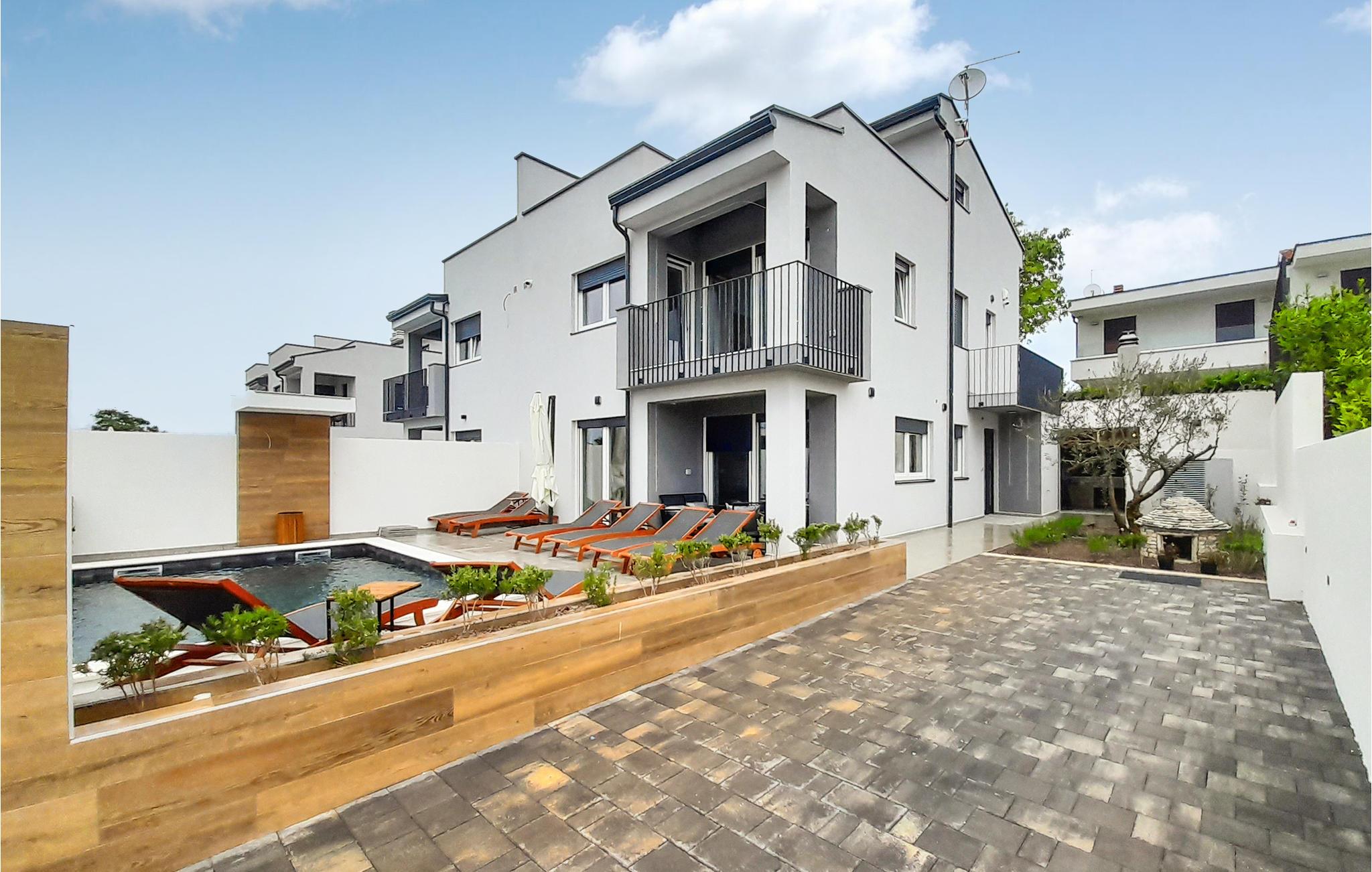 Et par kilometer fra Porec byder dette feriehus i flere etager velkommen i Nova Vas. Dette er et fantastisk hus, der vil opfylde alle jeres ønsker. Nyd de moderne og komfortable møbler og en god nats søvn i de hyggelige soveværelser. Haven med pool og solbadeområder er også et smukt område, hvor I kan tilbringe mange timer om dagen. I kan afslutte aftenen i udekøkkenet med den murede grill, spise lækre retter og planlægge de næste feriedage med sjov og underholdning.