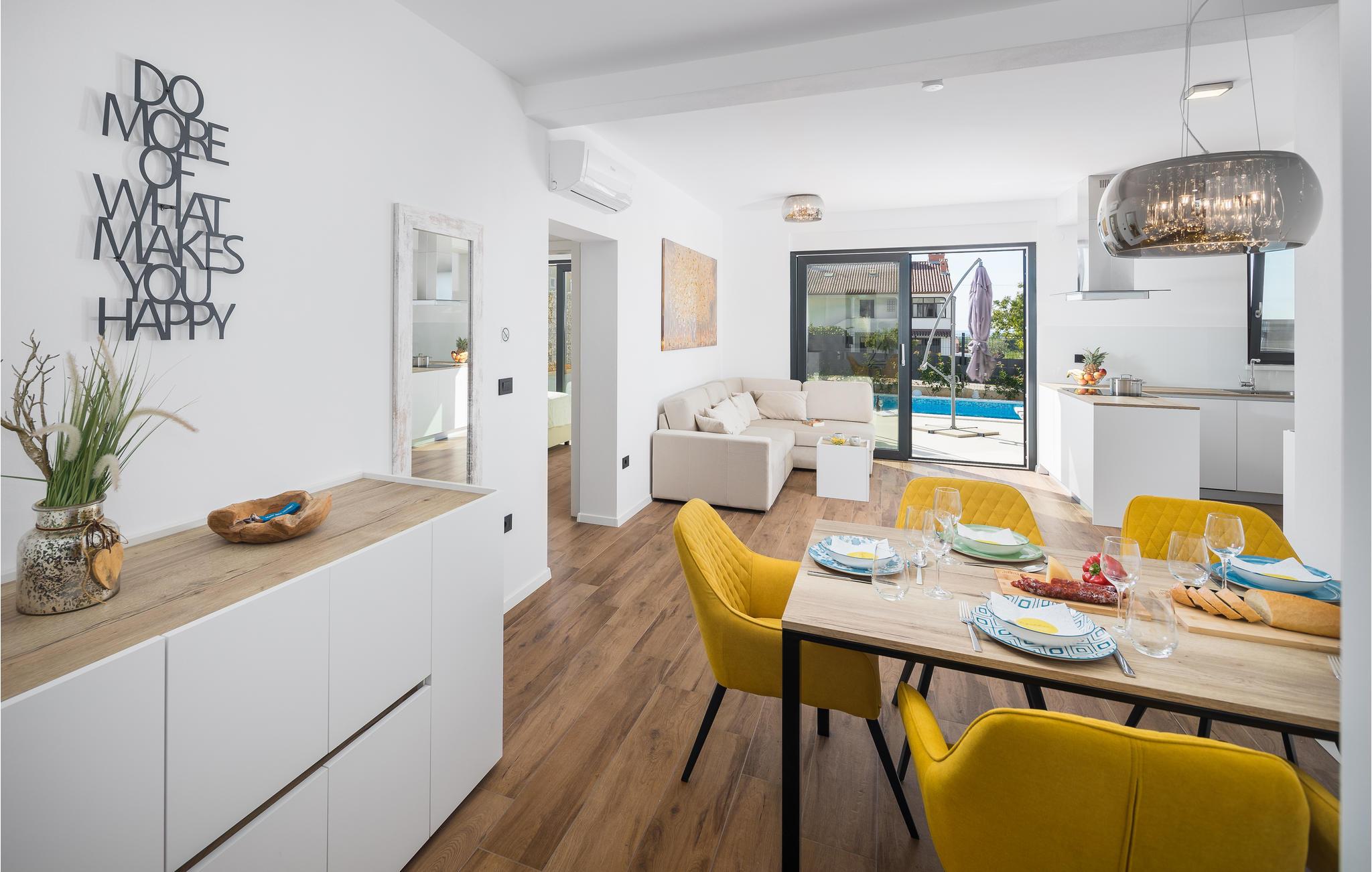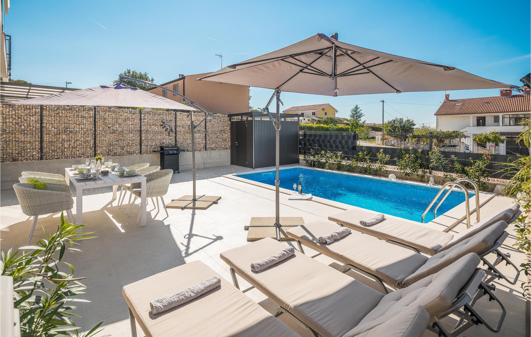 I kan tilbringe en skøn ferie med jeres kære i dette stilfulde og komfortabelt indrettede feriehus. Så snart I ankommer, kan I føle jer godt tilpas i de rummelige værelser og nyde ferien. På terrassen og balkonen finder I både solrige og skyggefulde steder at slappe af på ethvert tidspunkt af dagen, og poolen står til jeres rådighed til en skøn forfriskende dukkert ind imellem. Børnene vil også have det sjovt med at plaske rundt her. Fordi ejendommen er indhegnet, kan I uden bekymring lade de små lege udenfor.
