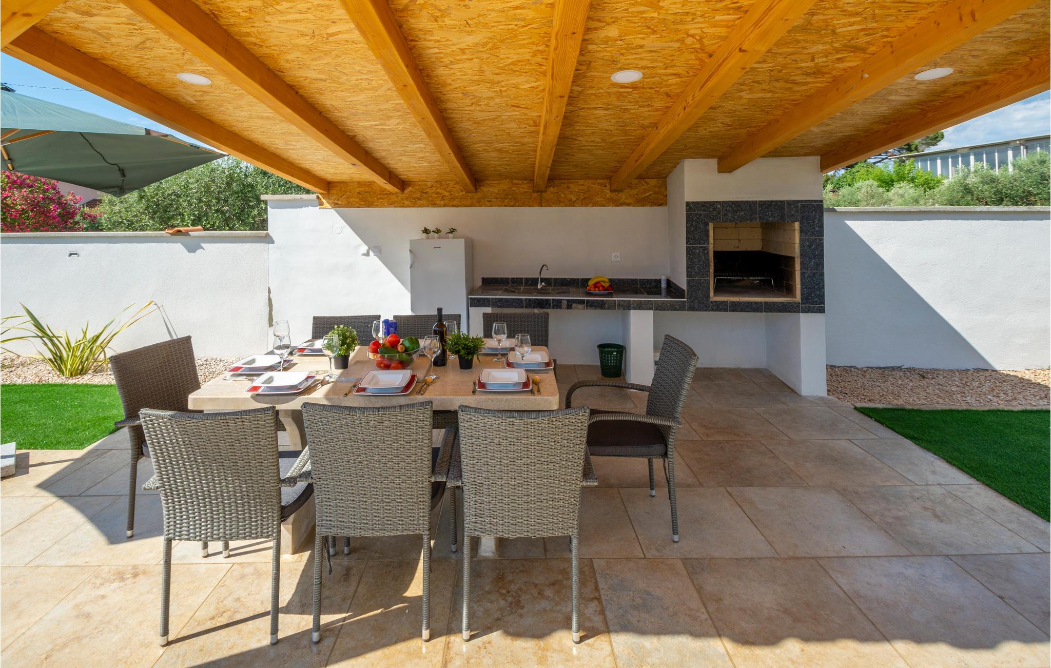 Dette skønne feriehus på landet er ideelt til to familier. De kan opdeles i to boligenheder, der garanterer privatlivets fred for alle gæster. Den praktiske og smukke indretning tilbyder jer alt hvad I behøver til jeres ferie. Den indbydende have tilbyder jer det ideelle loungeområde. Solsenge til solbadning og en pool til afkøling. Den overdækkede terrasse med udendørs pejs lover omgængelige og hyggelige aftener med lækker og lokal mad.