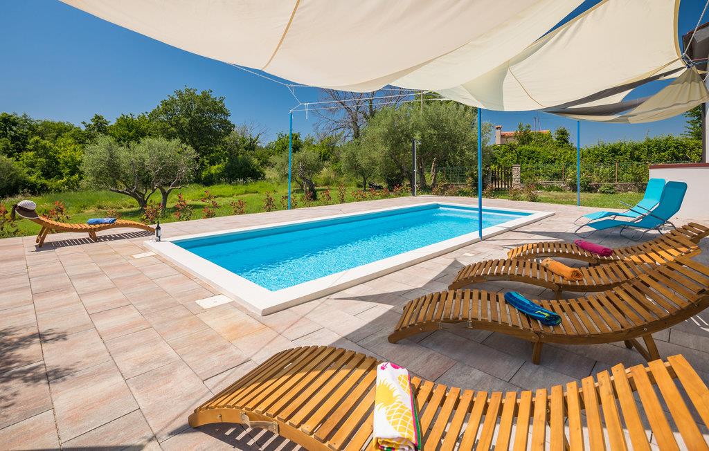 Komplet omgivet af et grønt kulturlandskab ligger dette private hus med to ferielejligheder. I haven kan I nyde udsigten over det grønne landskab og til den vide horisont. Midt i de grønne omgivelser og kun 400 m fra en kiesstrand i Lanterna, på en blødt stigende bakke, ligger dette feriedomicil i Stancija Blek. CIE903 er en etværelses lejlighed i stueplan, mens CIE902 med tre soveværelser ligger på øverste etage. Begge ferielejligheder er lyst, enkelt og moderne indrettet, med klare linjer og et velplejet indre. Til hver lejlighed hører en terrasse og gæsterne fra de to lejligheder deles om en tredje terrasse hvor grillen står. Ejer holder af husdyr. Glæd jer til at besøge kiesstranden Lanterna.