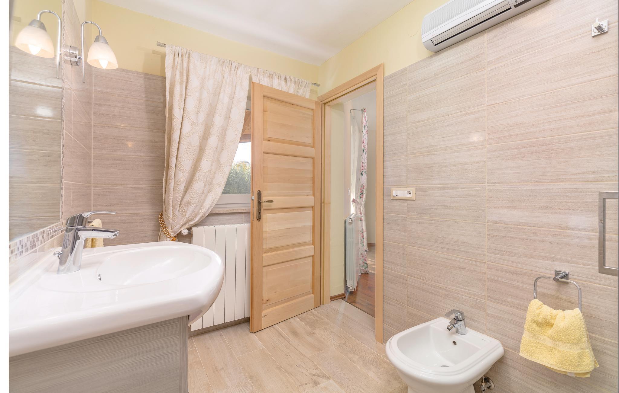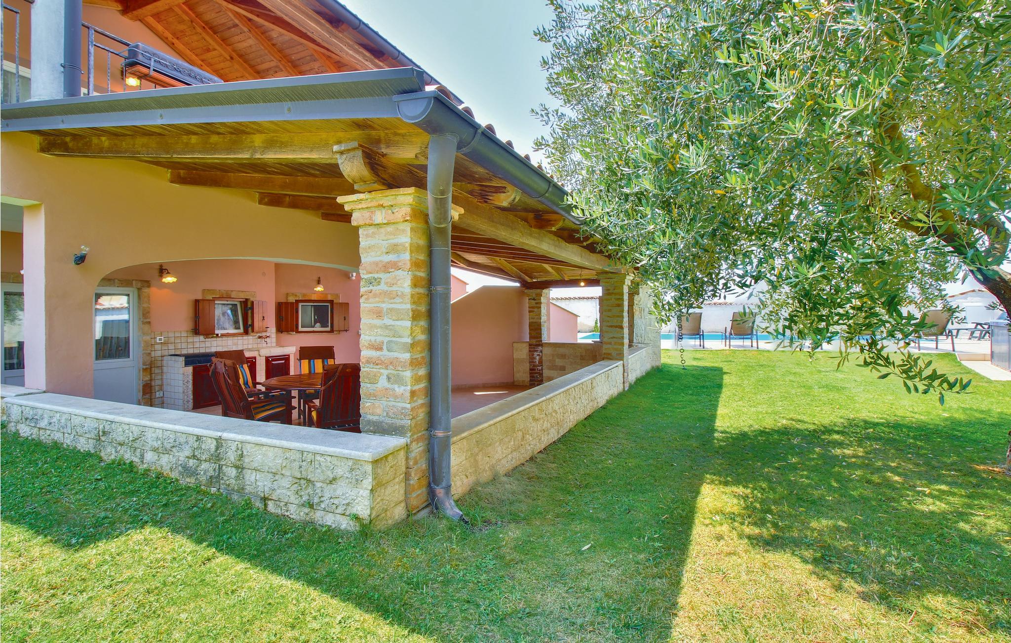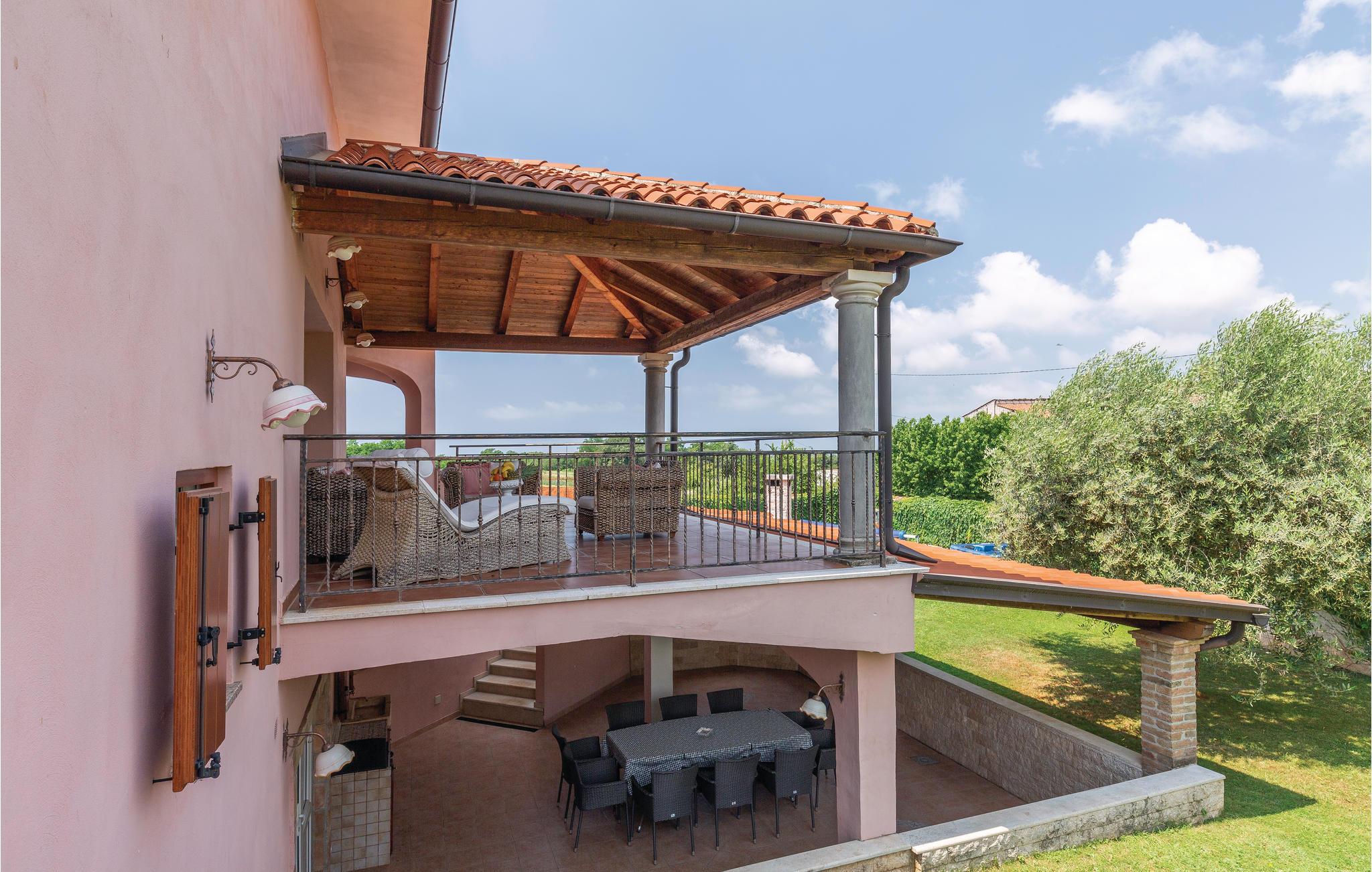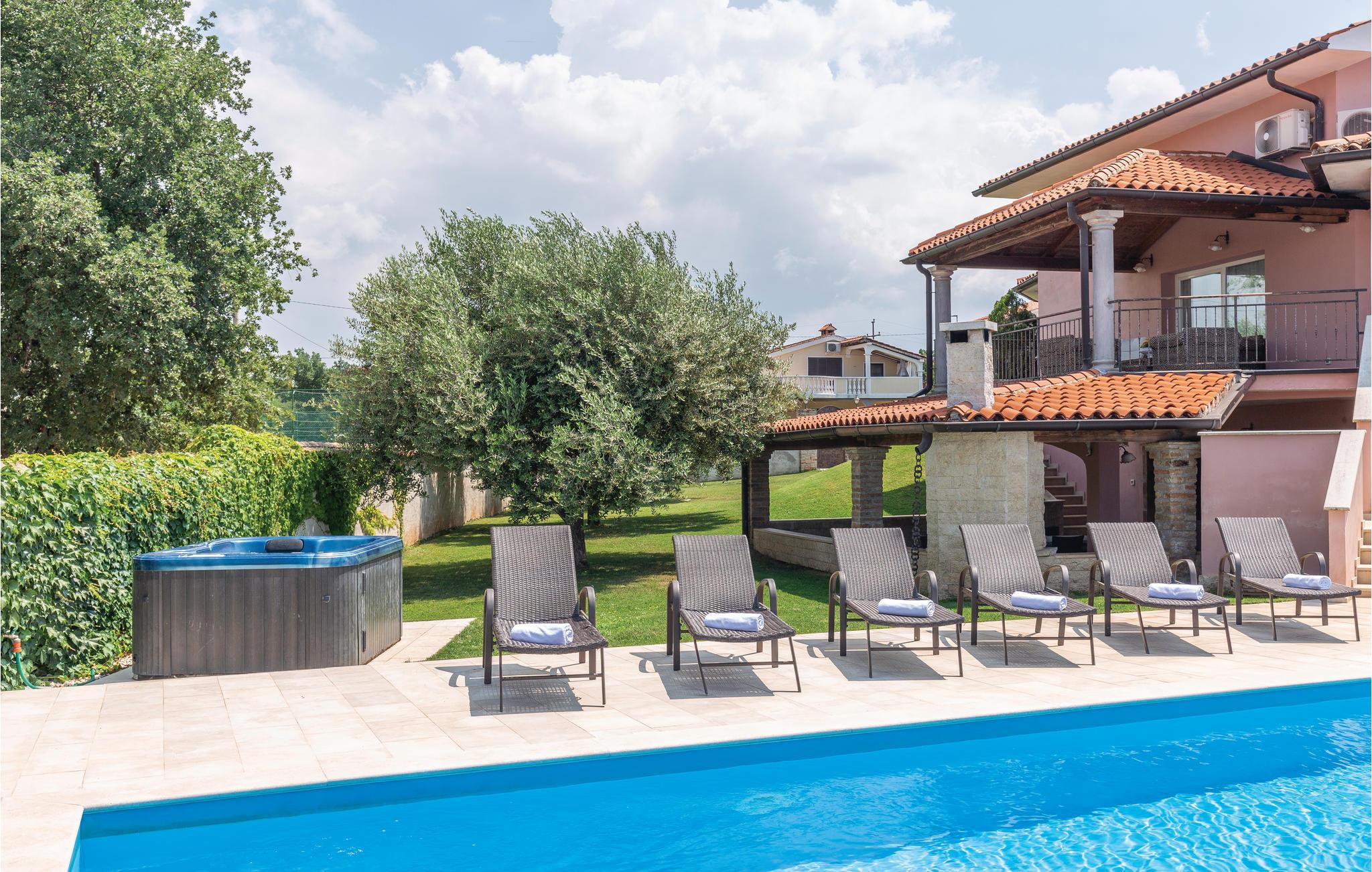 Kun få kilometer fra Porec ligger dette feriehus. Det er komfortabelt indrettet og giver jer mulighed for et meget behageligt ophold. I stueetagen ligger køkkenet og det overdækkede sommerkøkken, der går ud til poolen. På første sal er der et soveværelse/stue med en terrasse til at slappe af på, mens der ligger tre soveværelser og badeværelserne på anden sal. Huset har en stor gård, der er komplet omgivet af en høj mur og garanterer jeres privatliv. Gården er velegnet til børn, der kan lege uforstyrret. På den øverste terrasse er det skønt at ligge i whirlpoolen og slappe af.